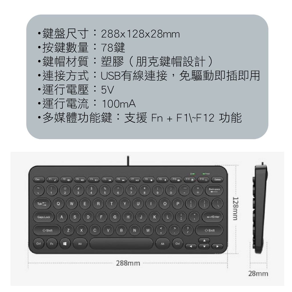 78鍵時尚朋克迷你有線鍵盤|SY-797|圓形鍵帽設計/USB免驅動即插即用|迷你鍵盤、有線鍵盤、USB鍵盤黑|白|藍|粉KeyboardsSUNYES 官方旗艦店