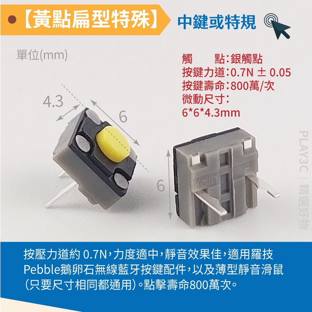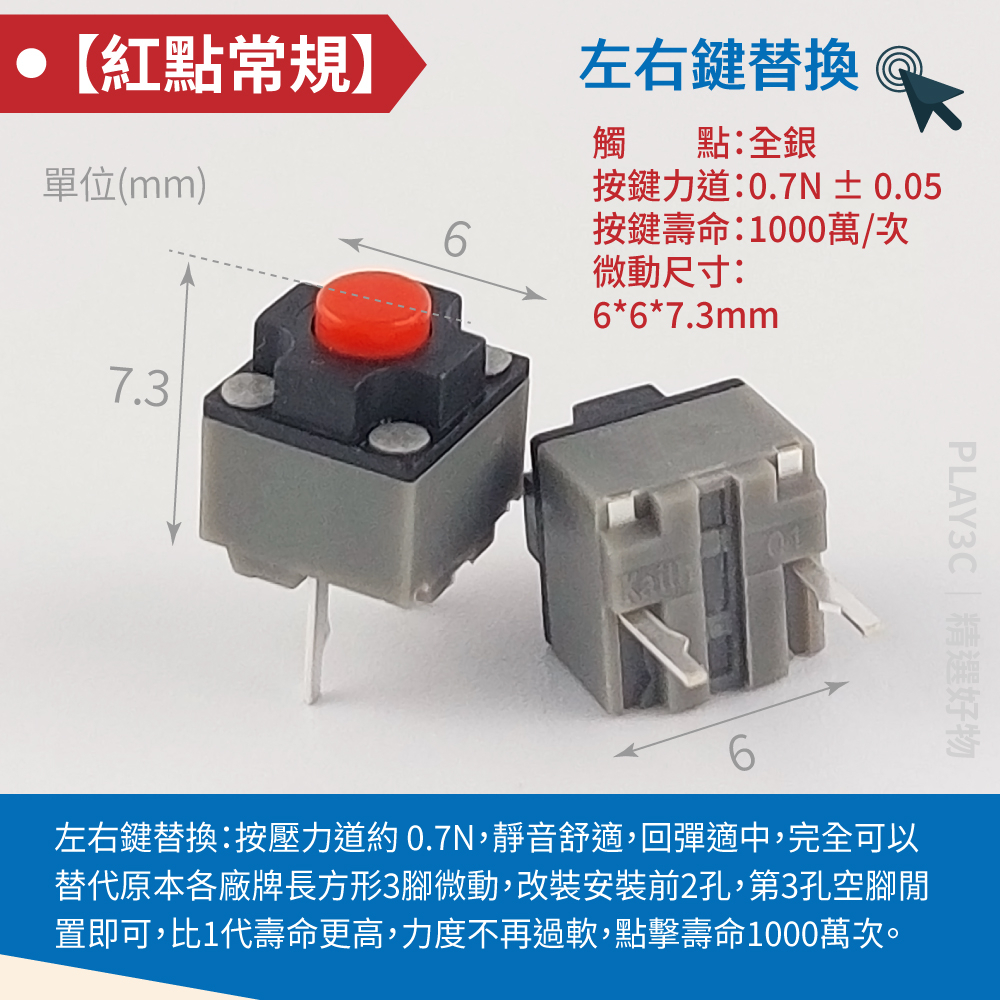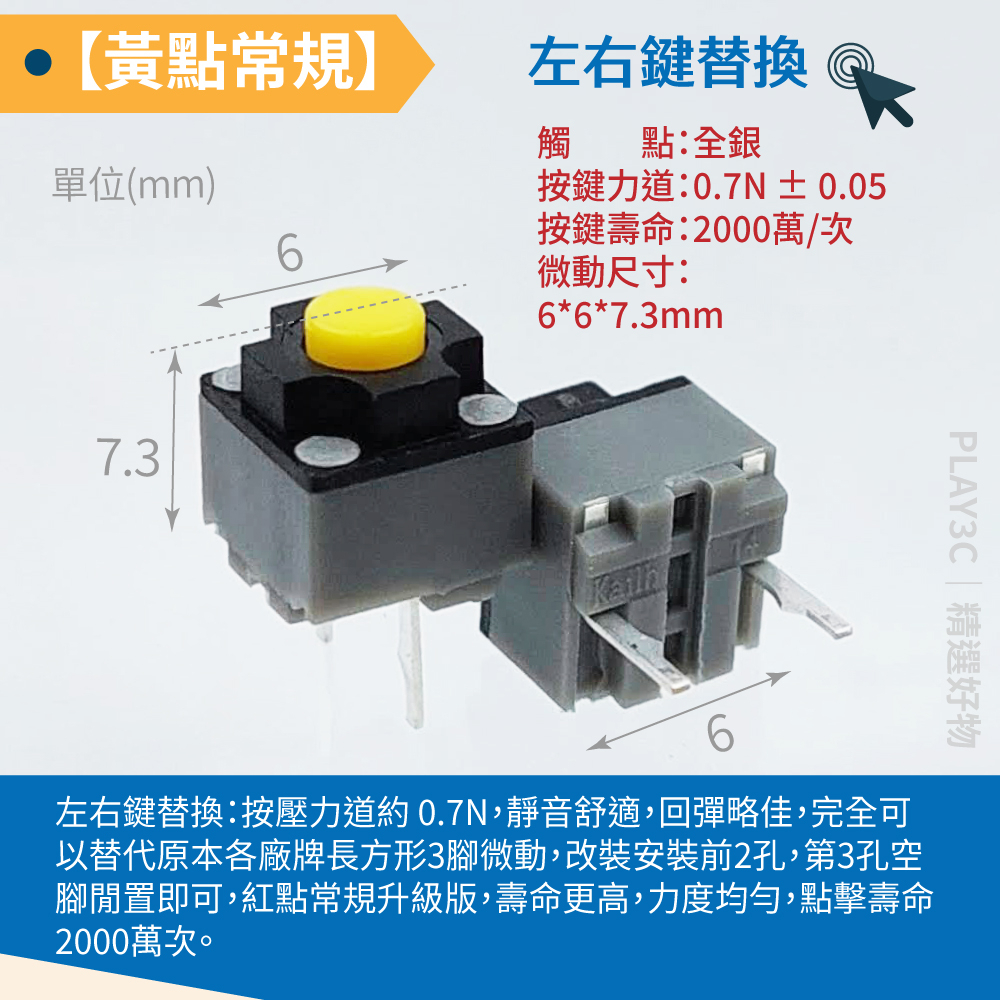 KAILH 凱華 方型 靜音 無聲 2腳紅點微動開關 適用原長型3腳微動 歐姆龍各廠牌皆可替換 特殊規格 加高 扁形🟡【黃點常規】2千萬次/左右鍵|🔴【紅點常規】1千萬次/左右鍵|🔴【紅點加高特殊】 滾輪中鍵|🟡【黃點扁型特殊】中鍵或特規OthersPLAY3C創意生活館