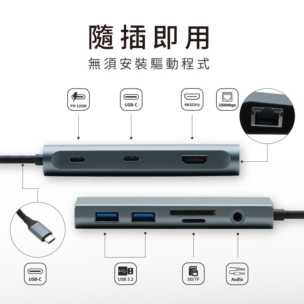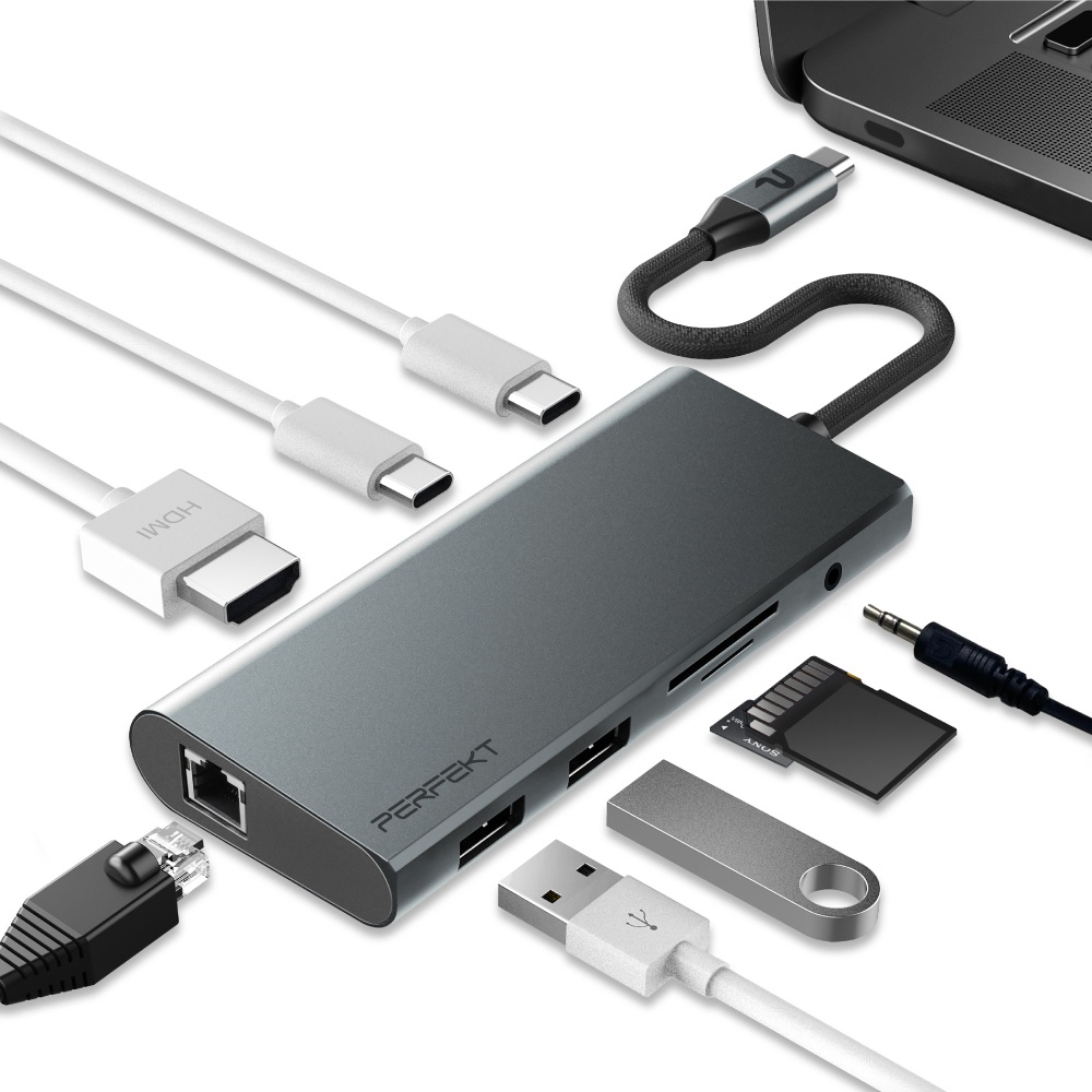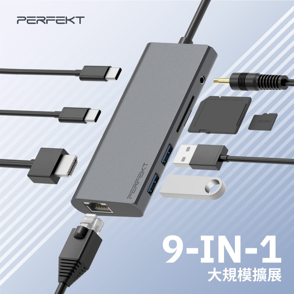 PERFEKT USB Type C 9合1 Hub多功能集線器 網口 SD/TF讀卡PD快充 HDMI 4K60HzPERFEKT USB Type C 9合1 Hub多功能集線器 網口 SD/TF讀卡PD快充 HDMI 4K60HzOthersPerfekt 官方旗艦店