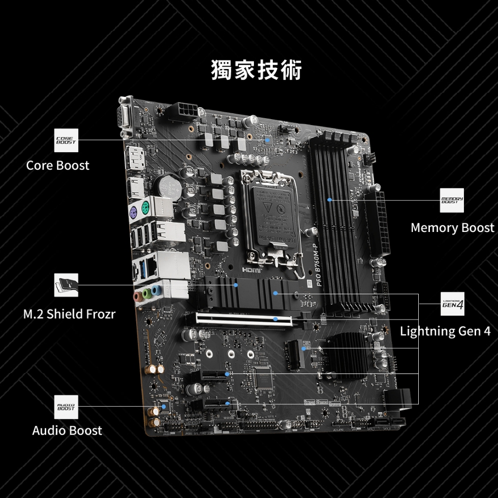 MSI 微星 PRO B760M-P 主機板 支援 DDR5 LGA 1700 腳位 Core Boost MSI610
