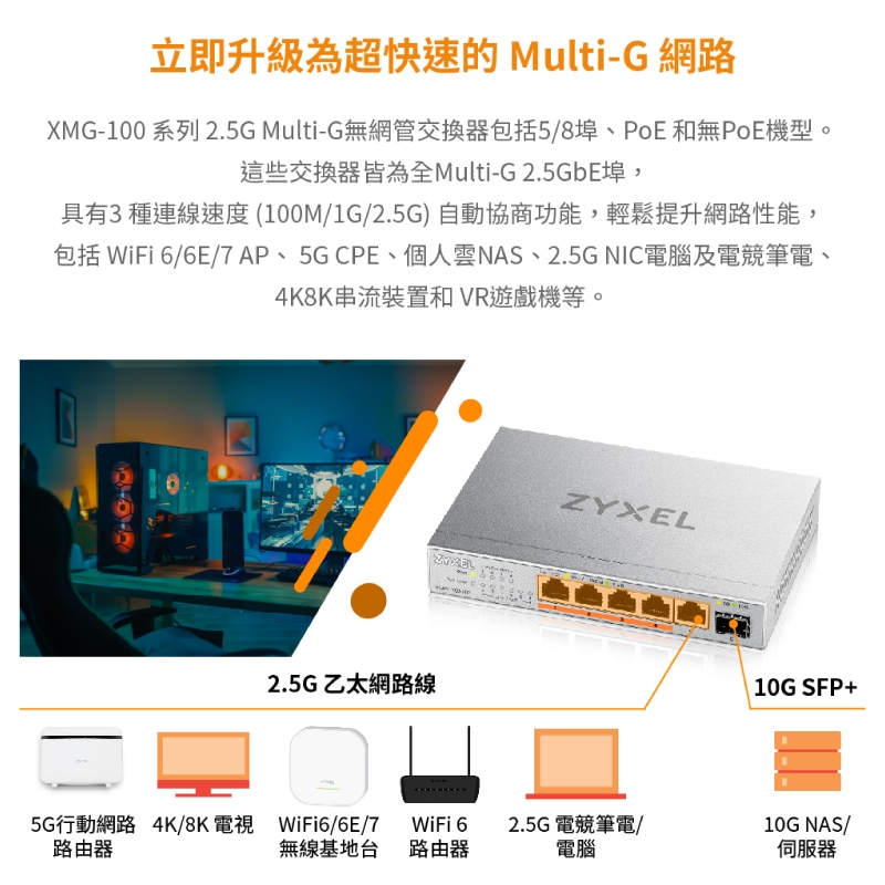 zyxel 合勤 XMG-105HP 2.5G 無網管交換器 乙太網路 10G 上行鏈路 6埠 交換器 ZYX106XMG-105HP交換器|(提醒用❌勿選) 使用蝦幣券等於9折Network Switches & PoEQ哥 電玩旗艦商城|Switch2 PS5 遊戲片 Xbox ptcg寶可夢