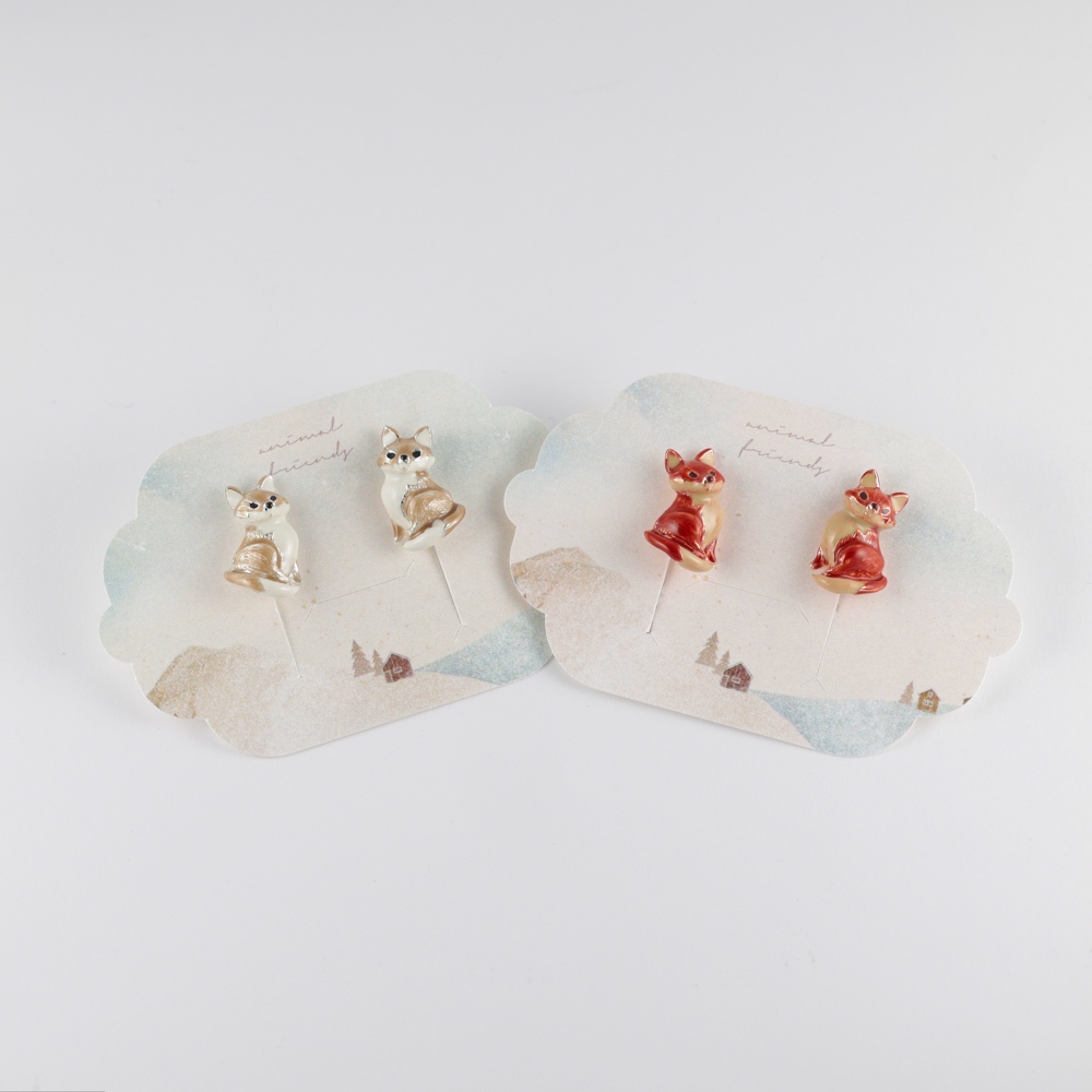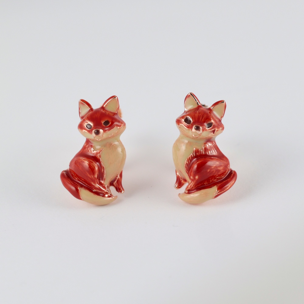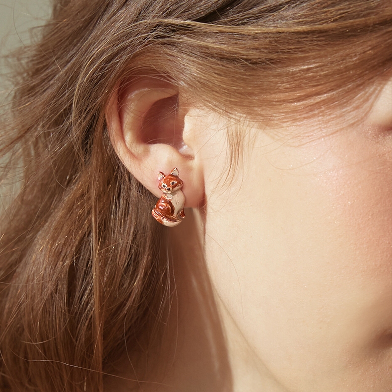 |OSEWAYA|小狐狸耳夾 耳針 可愛動物 螺旋耳夾 純鈦耳針 日本飾品 日本製造耳夾-棕色|耳夾-紅色|耳針-棕色|耳針-紅色OSEWAYA|台灣官方商店