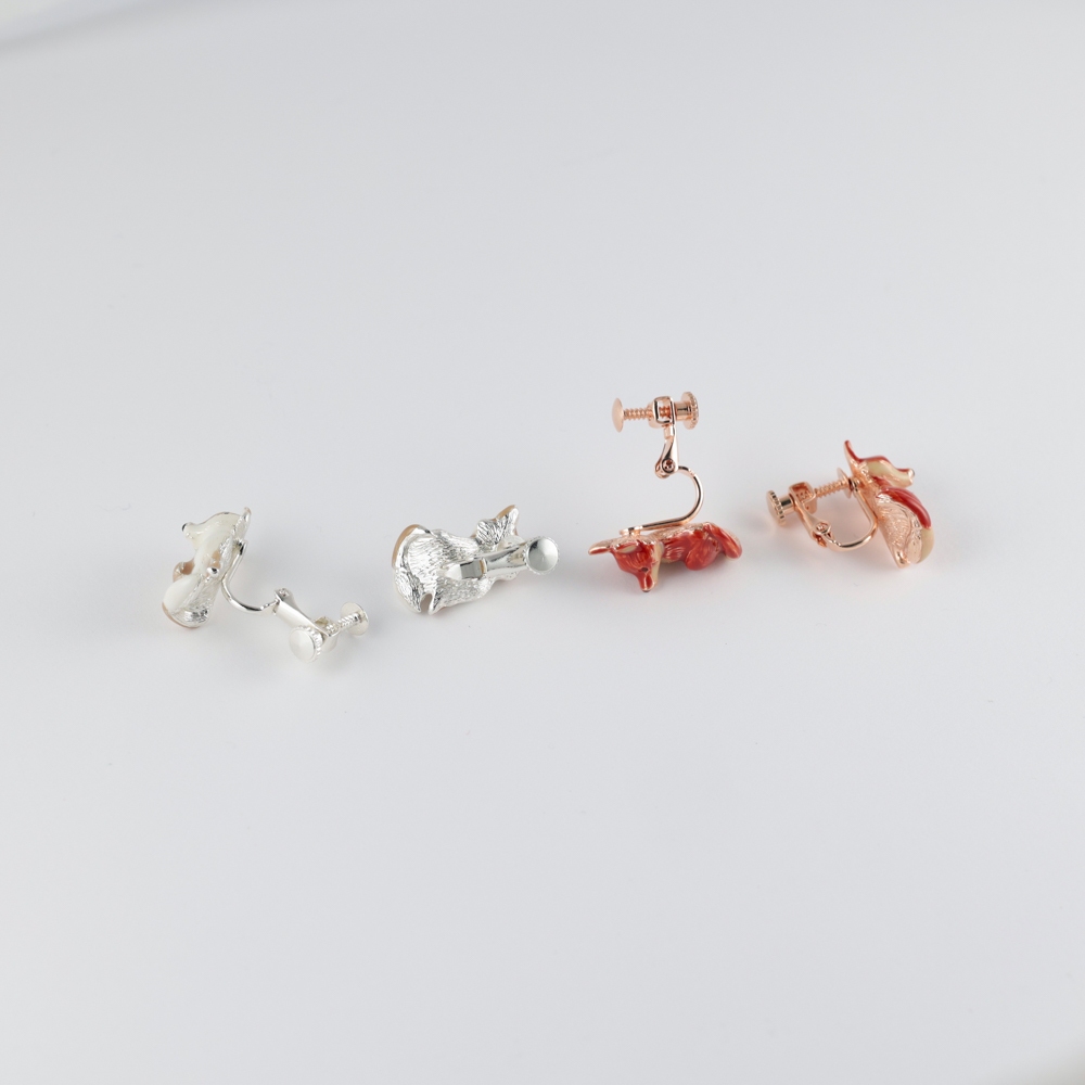 |OSEWAYA|小狐狸耳夾 耳針 可愛動物 螺旋耳夾 純鈦耳針 日本飾品 日本製造