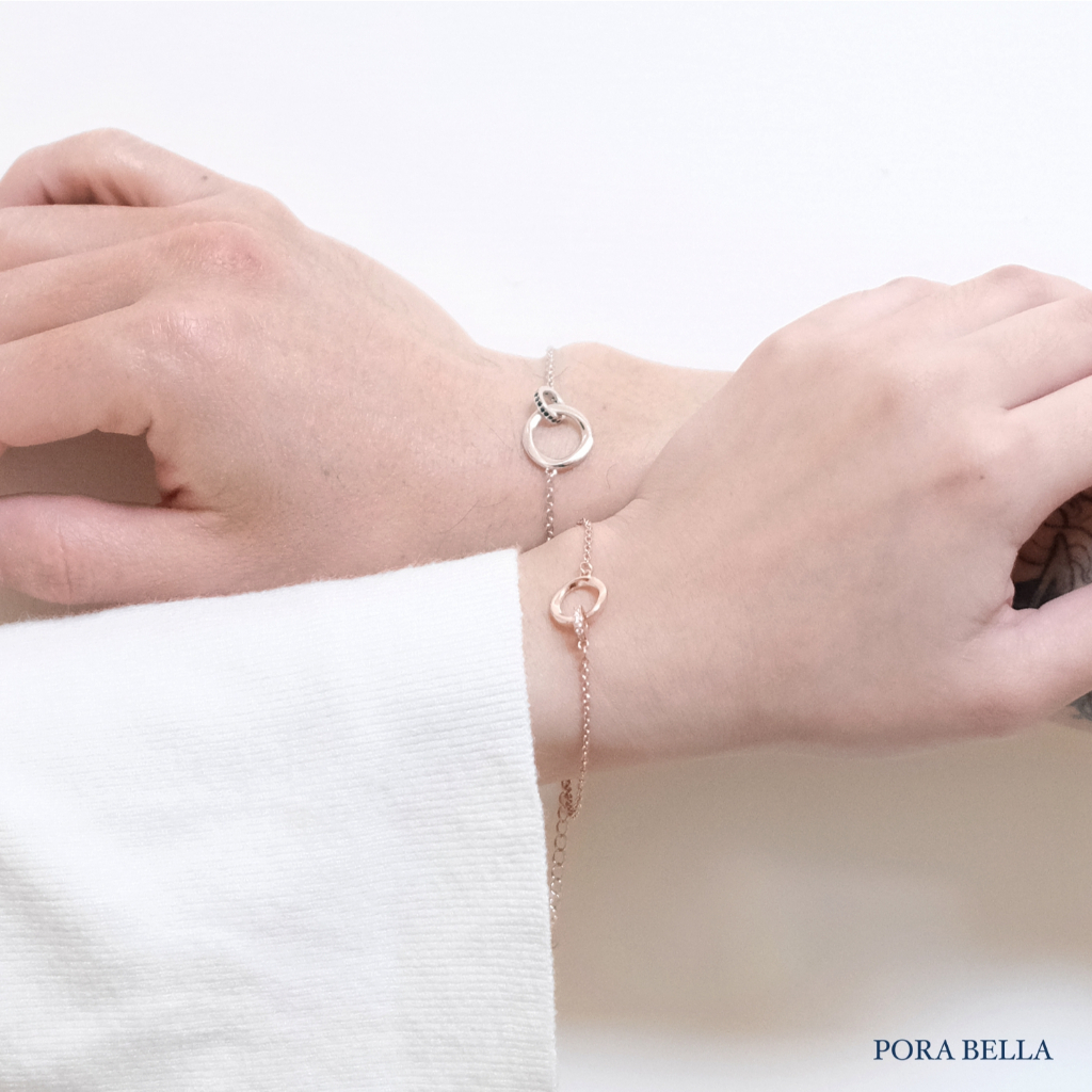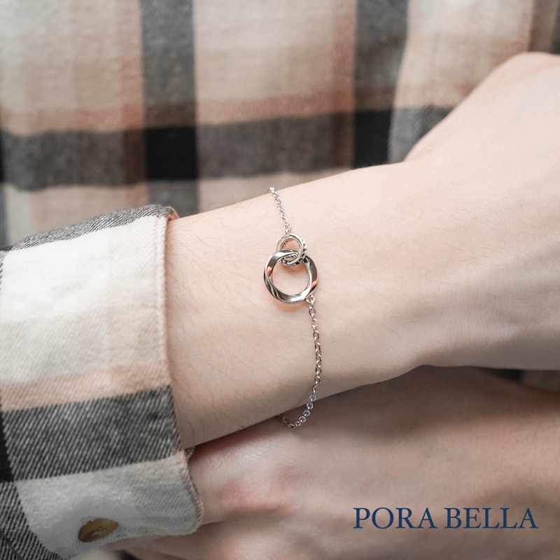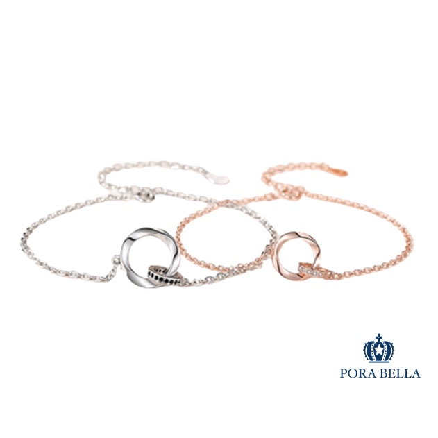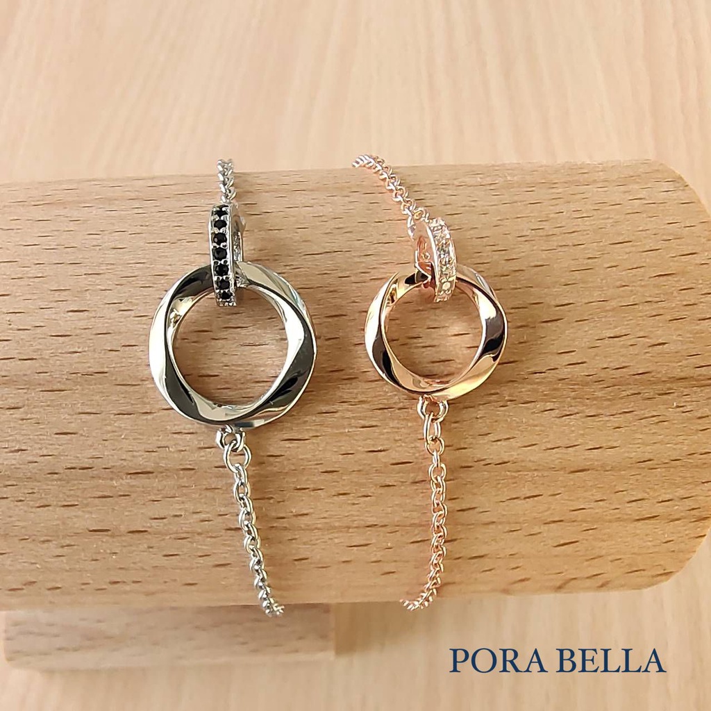 925純銀手鍊 情侶手鏈 白金玫瑰金雙環手鍊 情人節禮物 告白銀飾 Bracelet<一對販售>男款|女款|一對Porabella人氣飾品優選飾品盒全館現貨