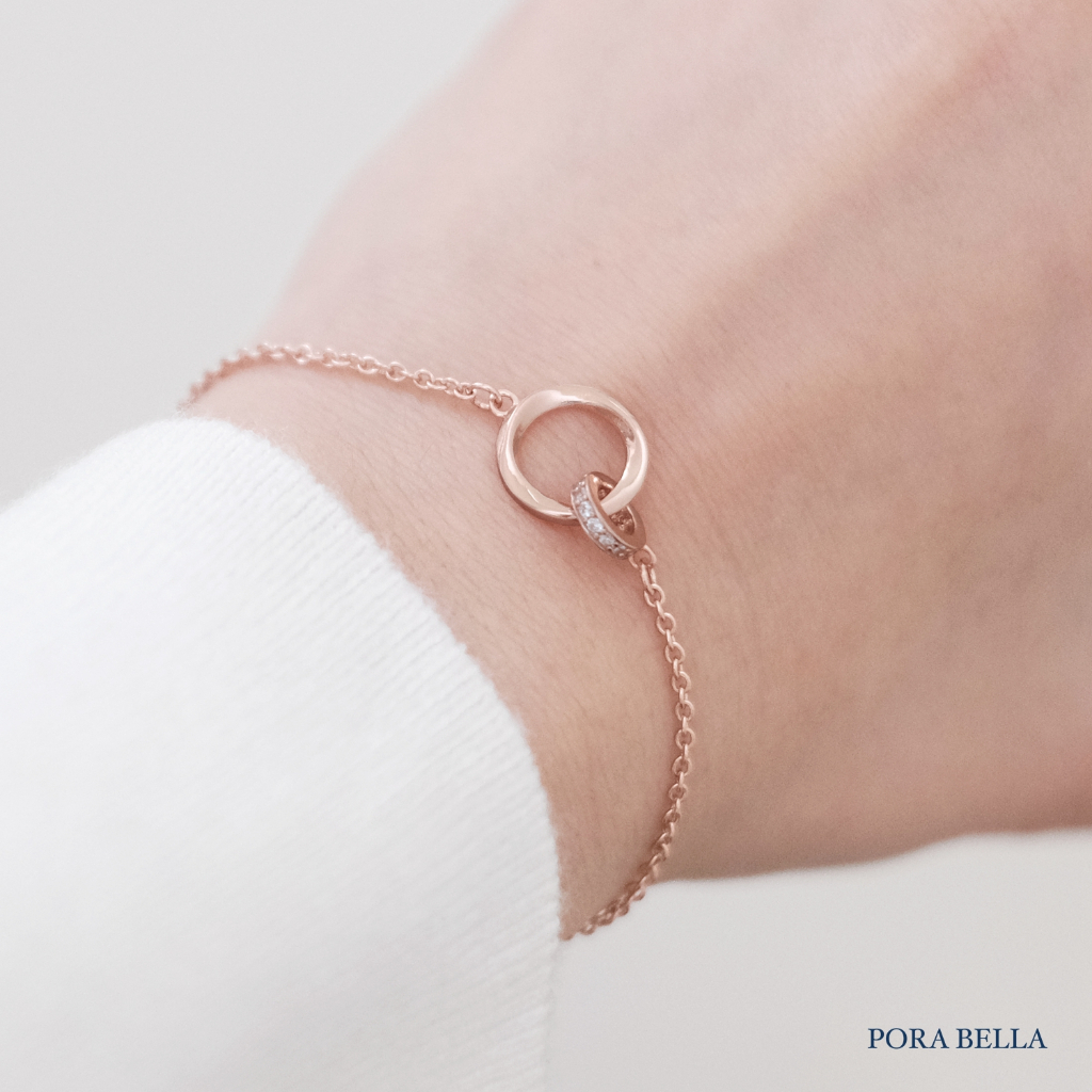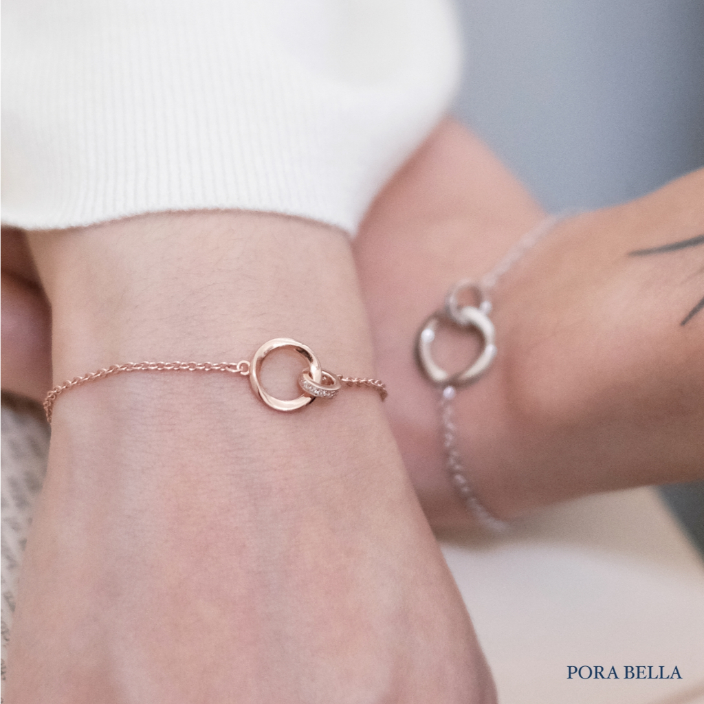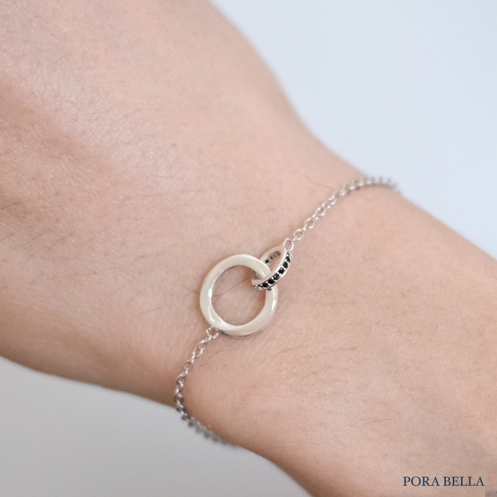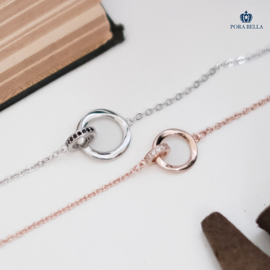 925純銀手鍊 情侶手鏈 白金玫瑰金雙環手鍊 情人節禮物 告白銀飾 Bracelet<一對販售>男款|女款|一對Porabella人氣飾品優選飾品盒全館現貨