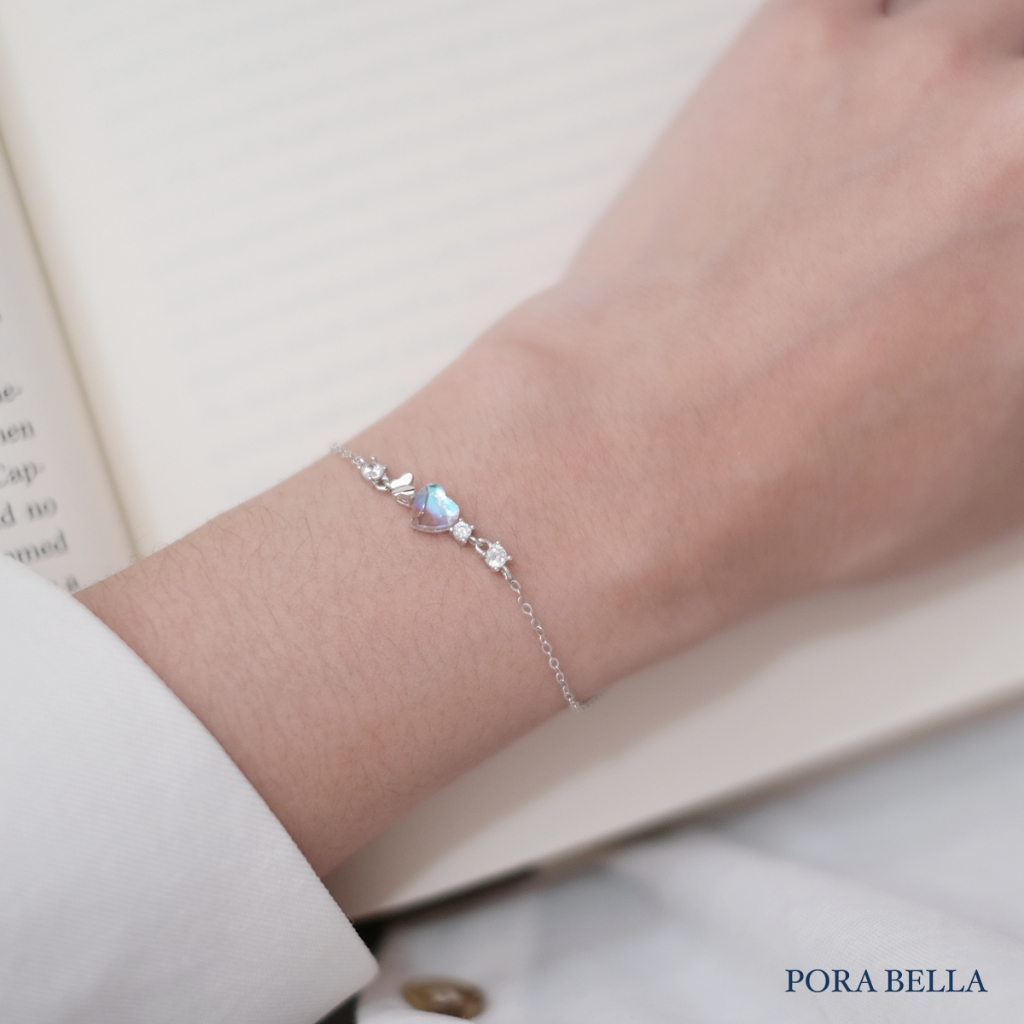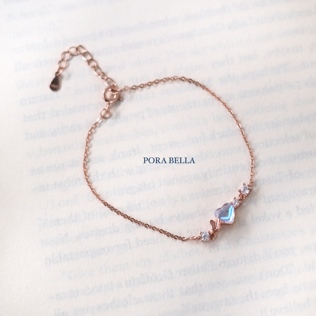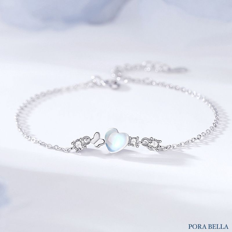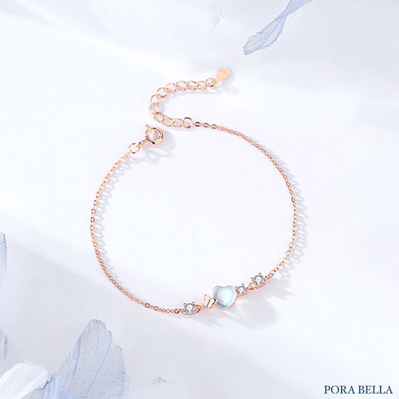 S925純銀愛心月光石蝴蝶手鍊手環 蝴蝶手鍊 月光石招好運 森系手環 情人節禮物 Bracelet銀色|玫瑰金Porabella人氣飾品優選飾品盒全館現貨