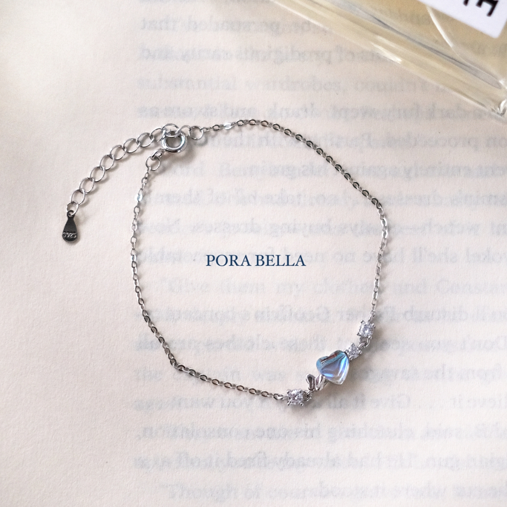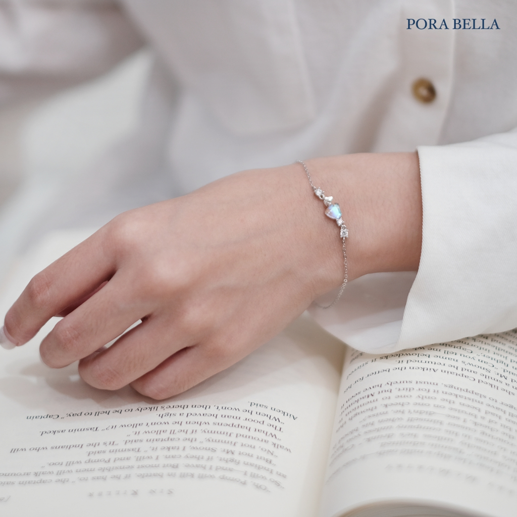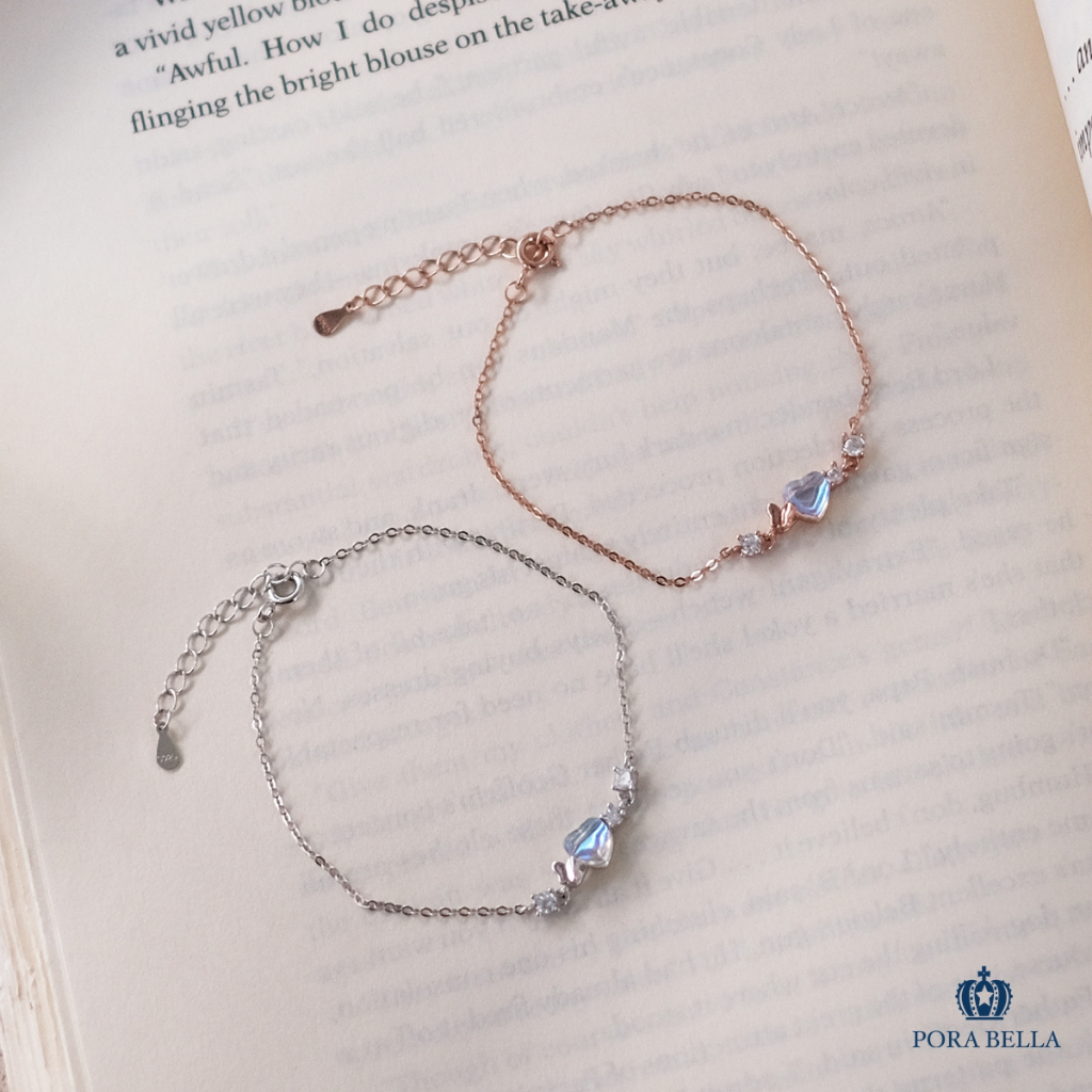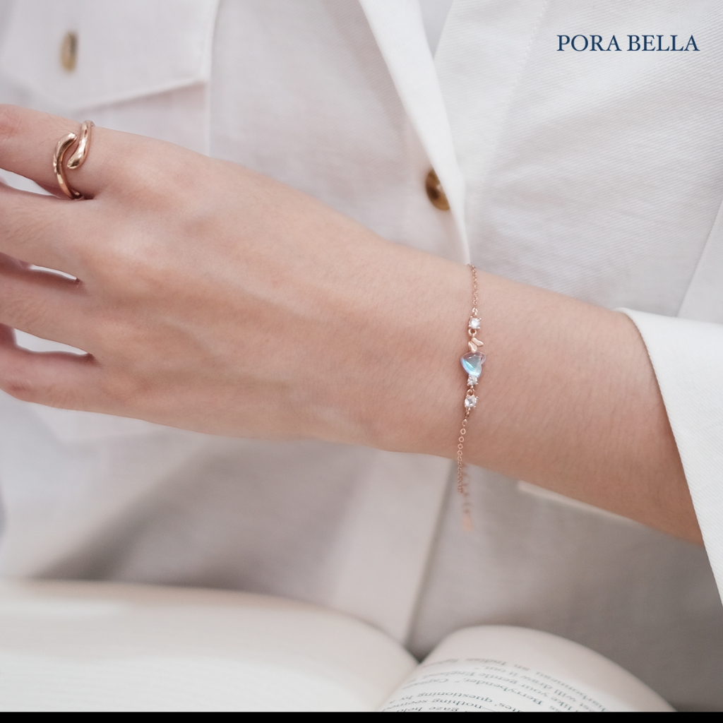 S925純銀愛心月光石蝴蝶手鍊手環 蝴蝶手鍊 月光石招好運 森系手環 情人節禮物 Bracelet銀色|玫瑰金Porabella人氣飾品優選飾品盒全館現貨