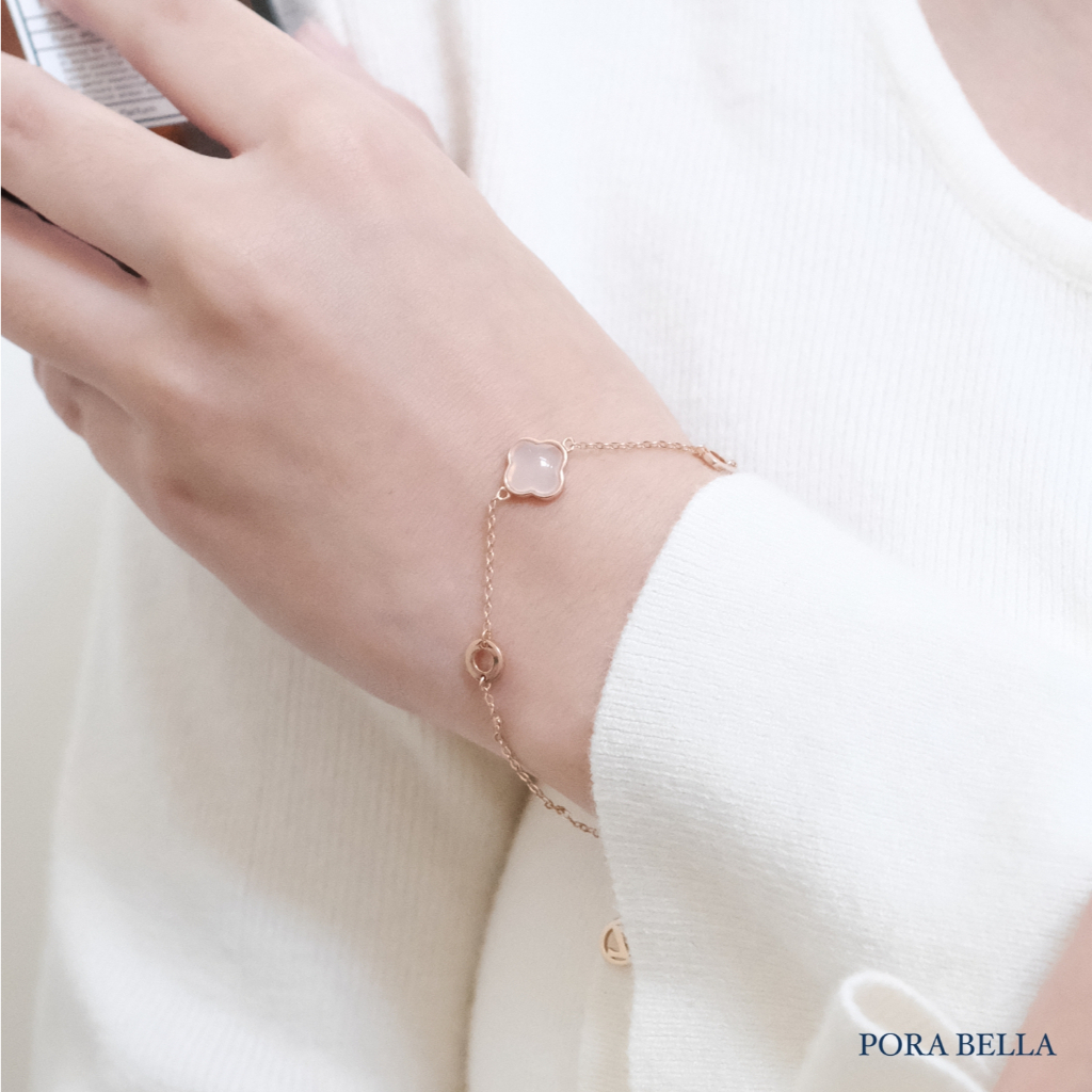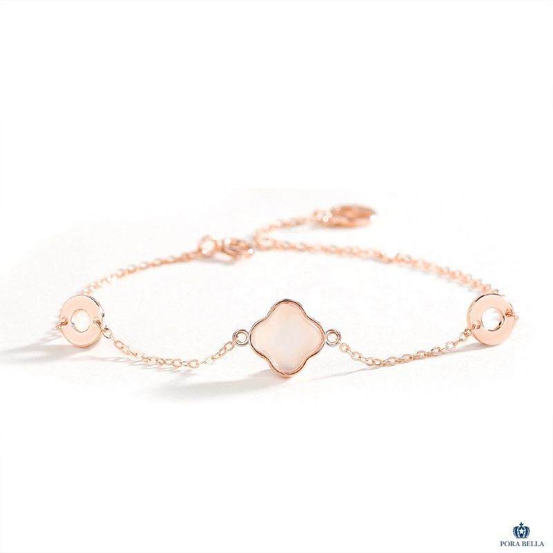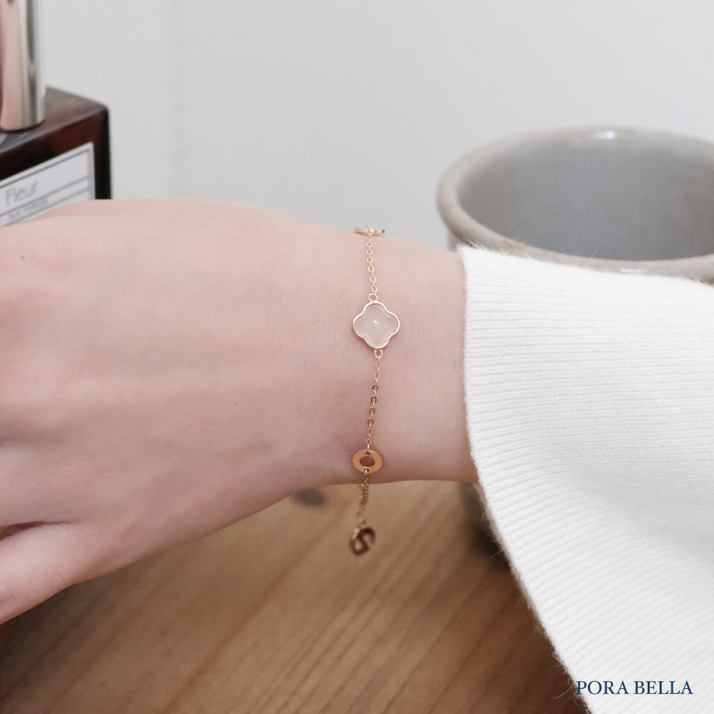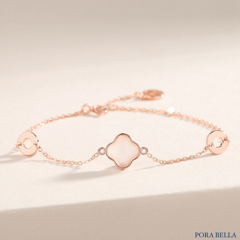 925純銀環扣幸運四葉草手鍊 氣質款手鍊 白玉髓手環 森林系手鍊 生日禮物 Bracelet玫瑰金Porabella人氣飾品優選飾品盒全館現貨