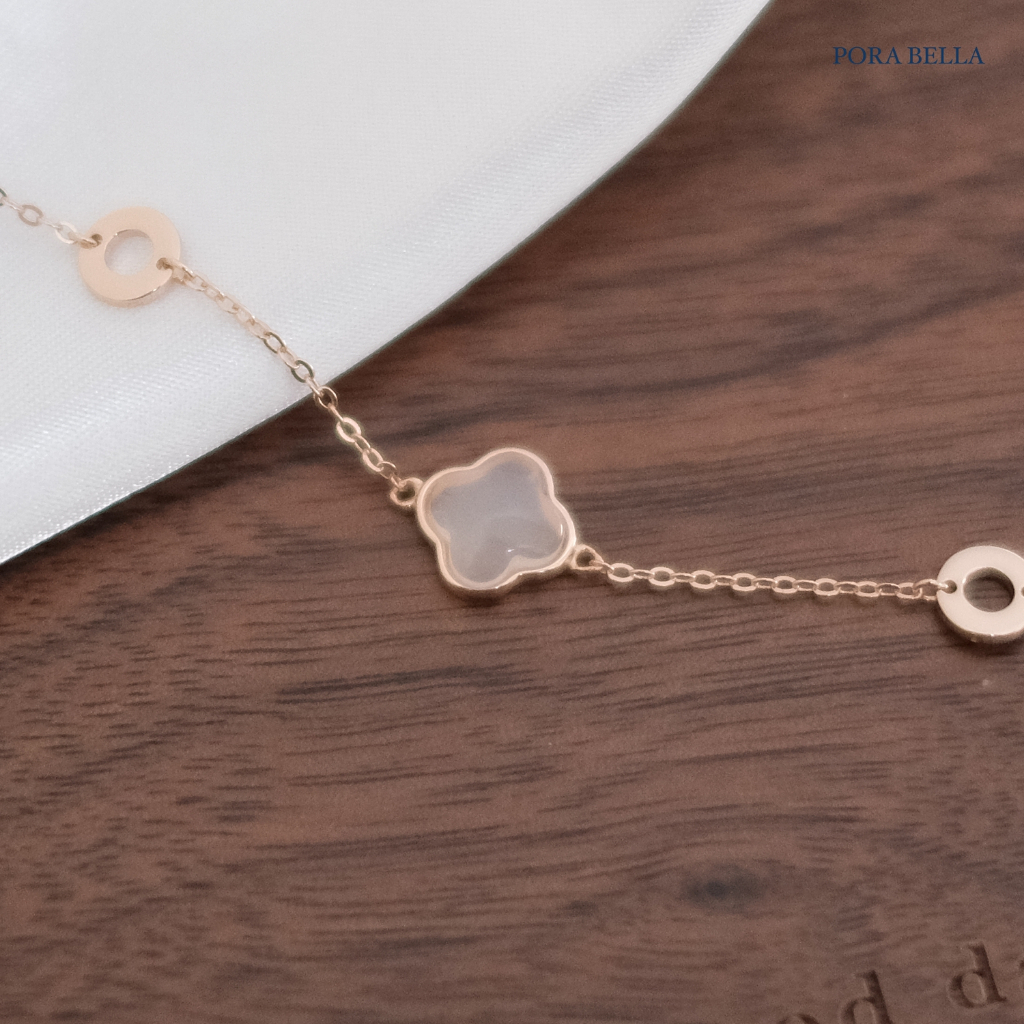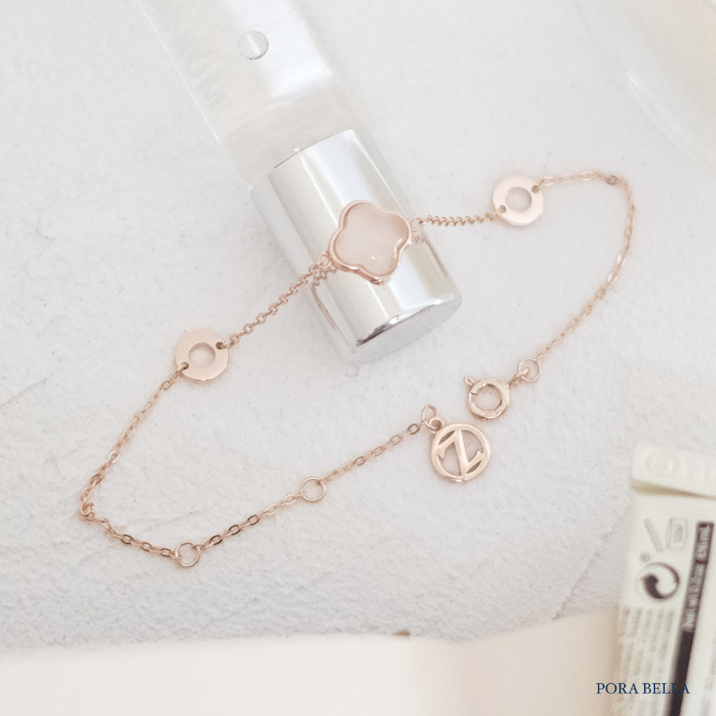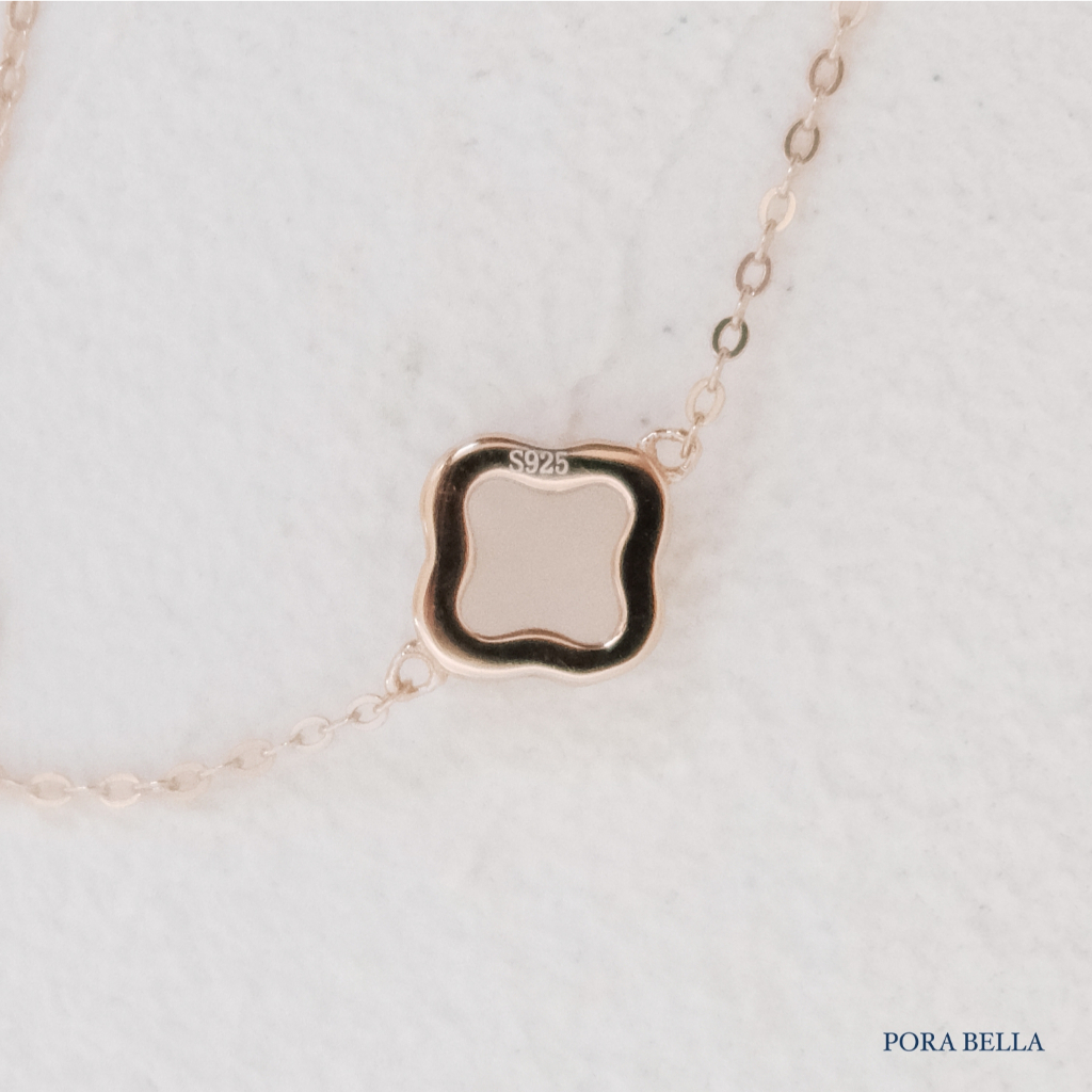 925純銀環扣幸運四葉草手鍊 氣質款手鍊 白玉髓手環 森林系手鍊 生日禮物 Bracelet玫瑰金Porabella人氣飾品優選飾品盒全館現貨