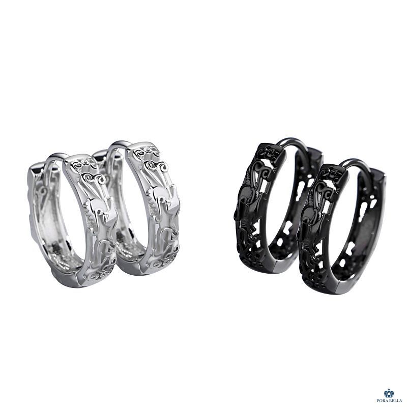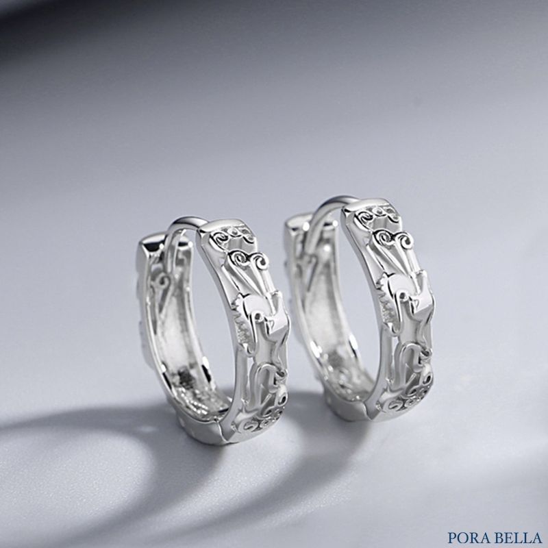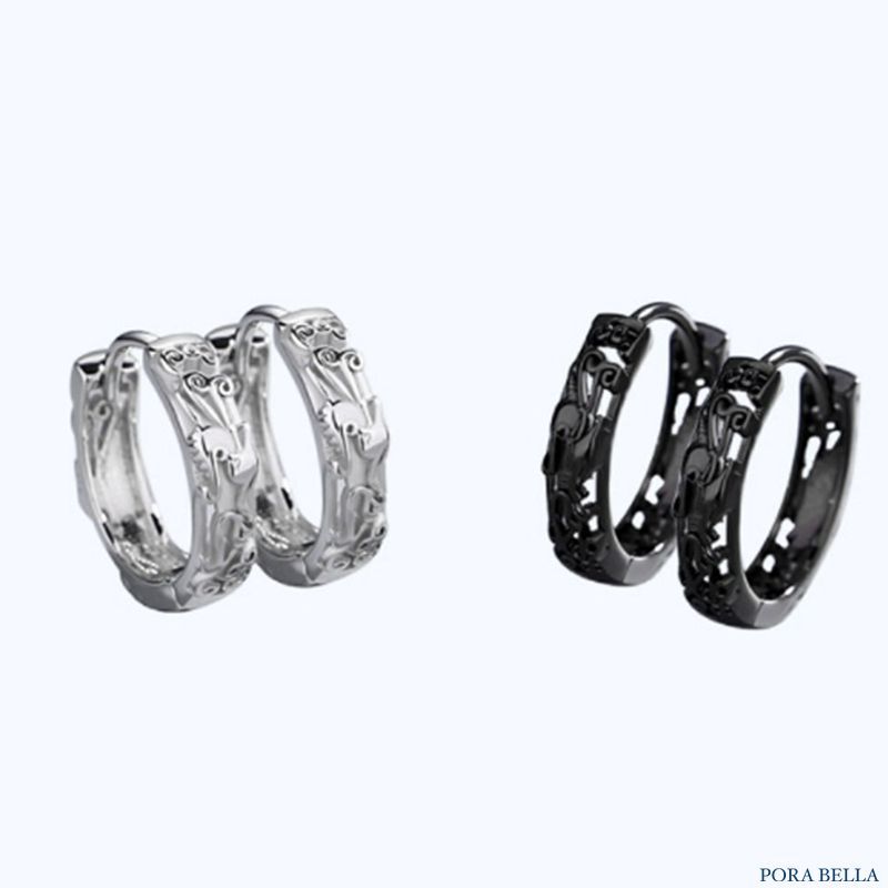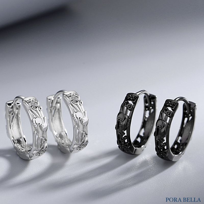 S925純銀個性圈圈耳扣 貔貅耳環 麒麟耳扣 網紅潮流 個性耳環 招財好運耳飾 Earring黑色|銀色Porabella人氣飾品優選飾品盒全館現貨