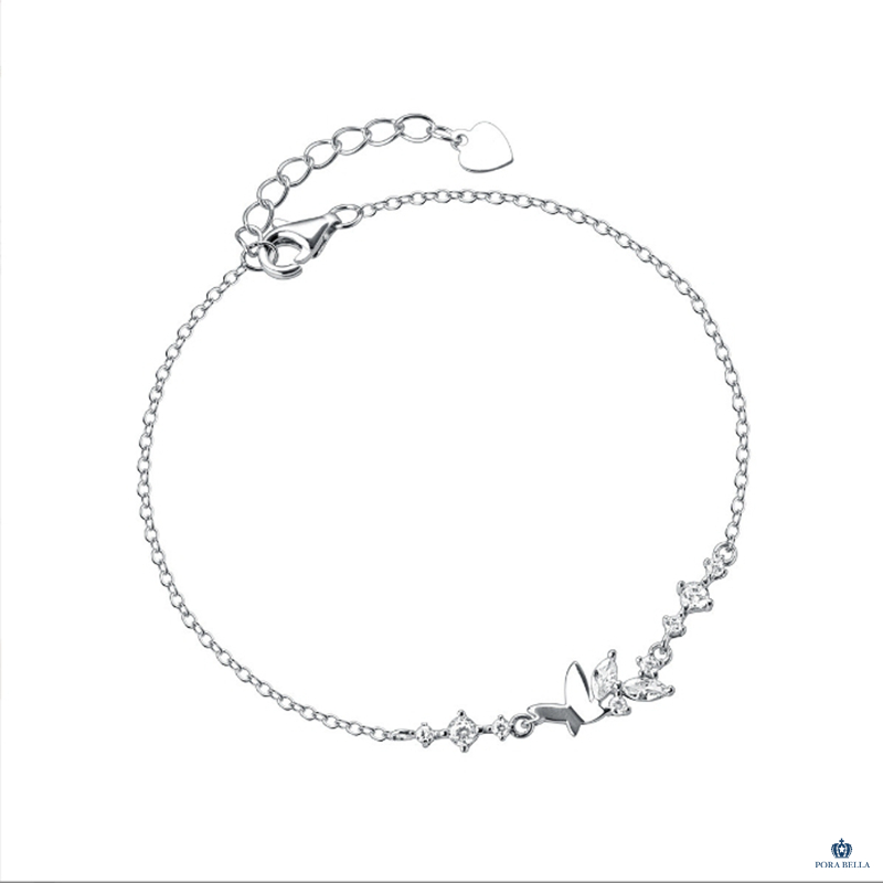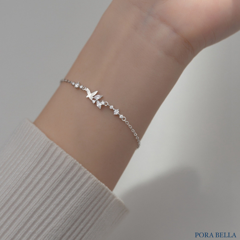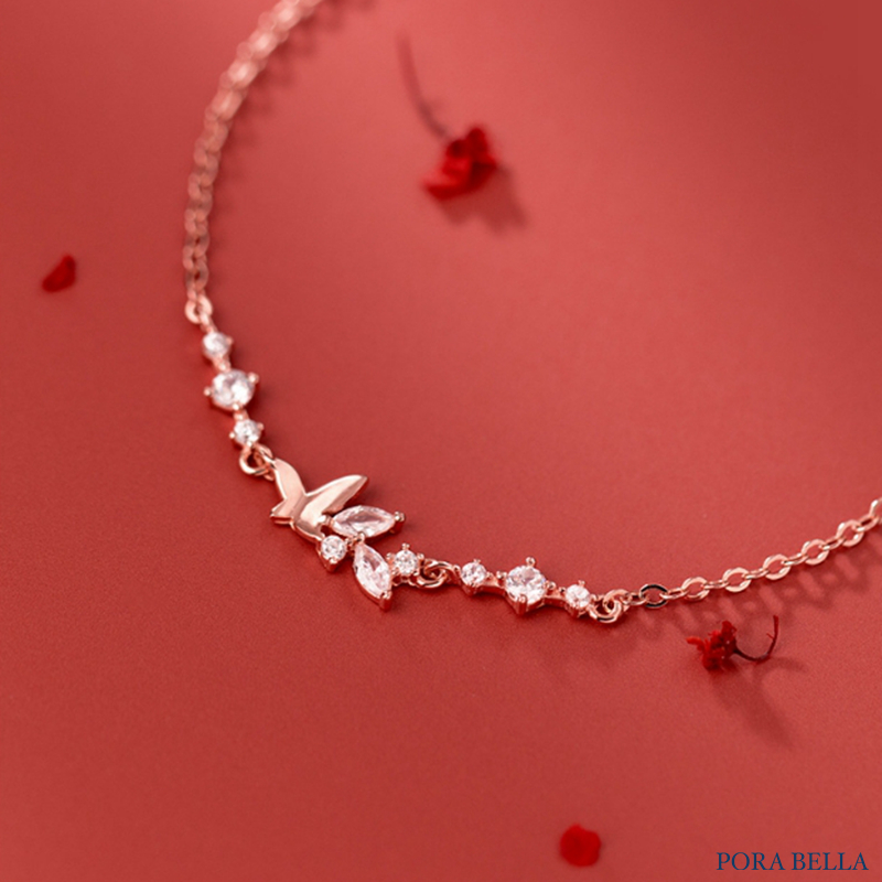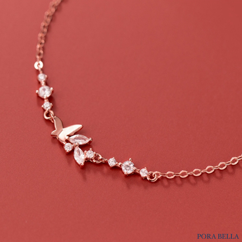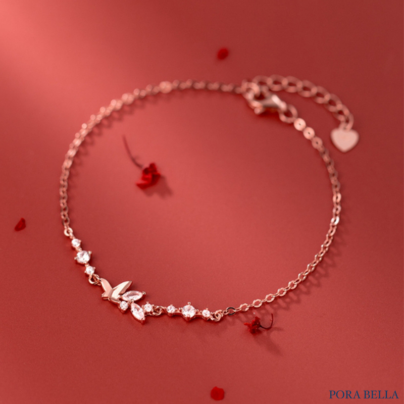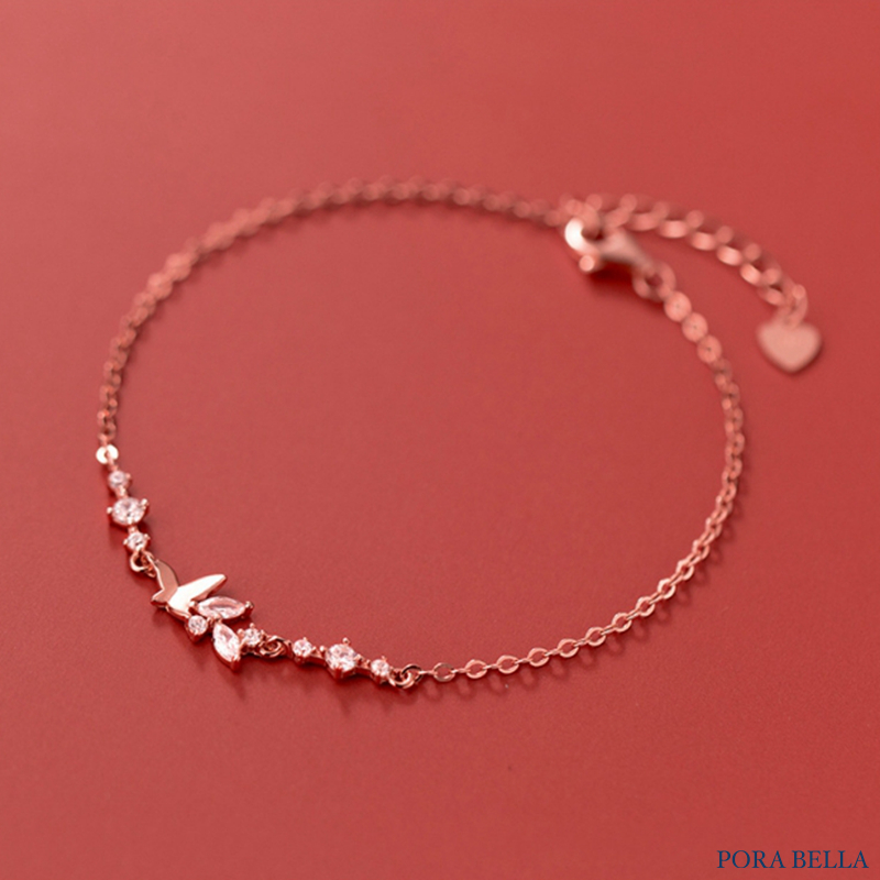 925純銀鋯石手鍊 蝴蝶手鏈 純銀 鋯石手鍊 生日禮物 送女友 銀飾 Bracelets玫瑰金|銀色Porabella人氣飾品優選飾品盒全館現貨