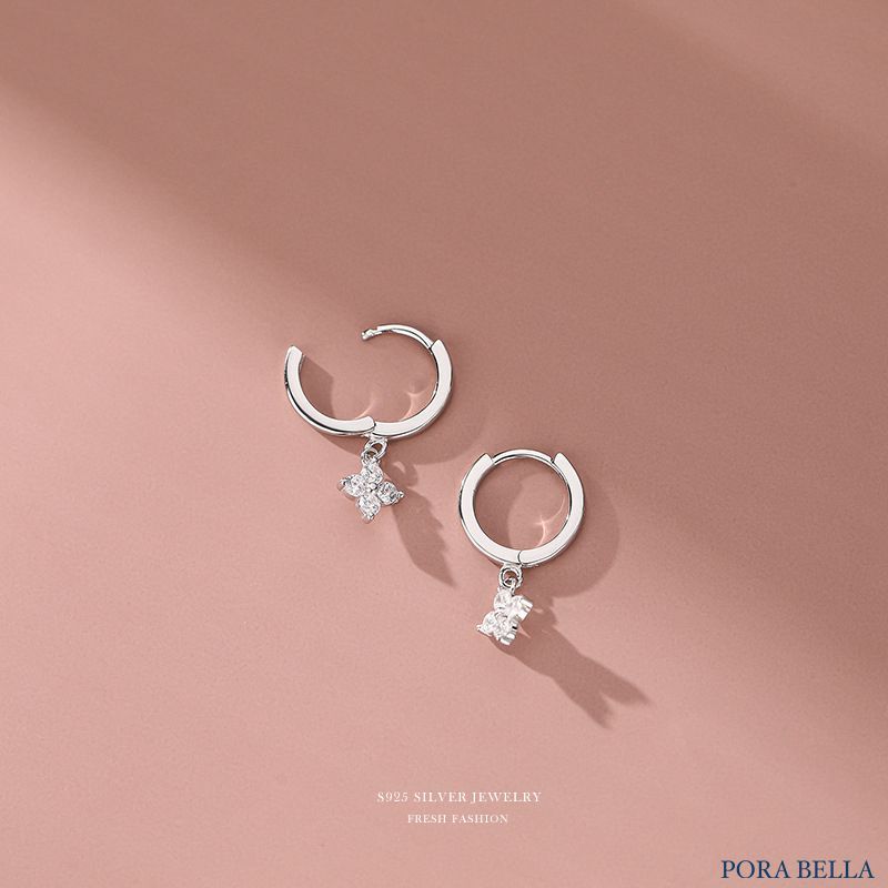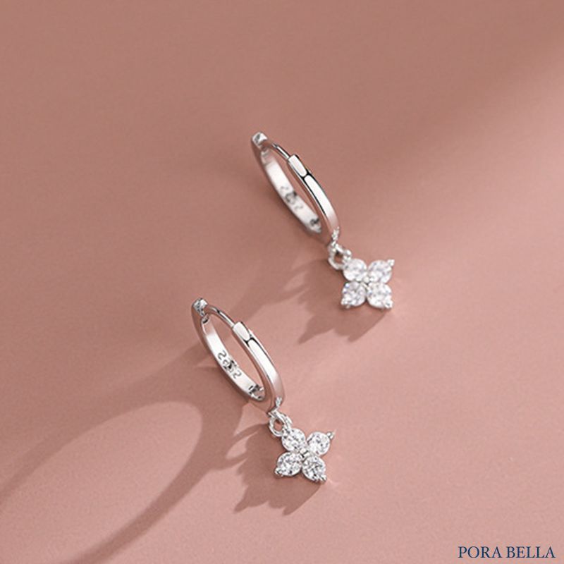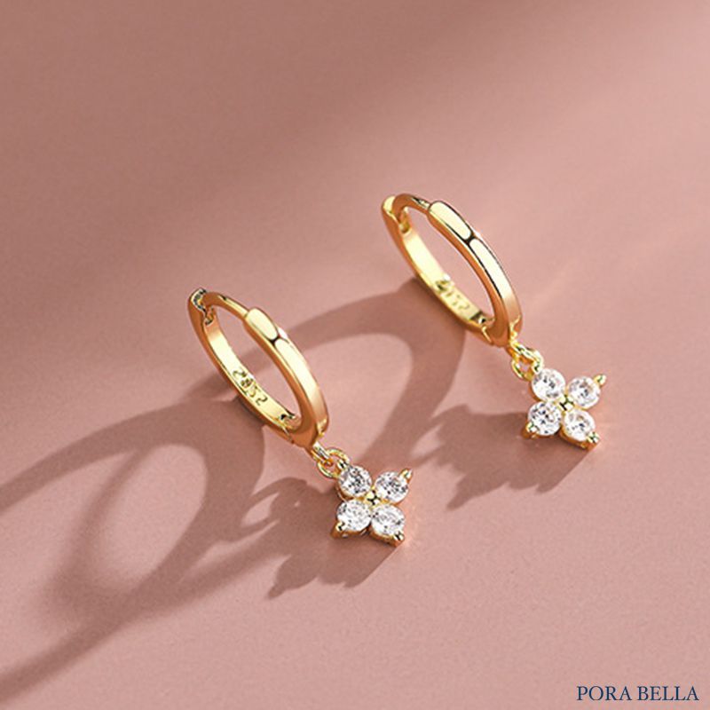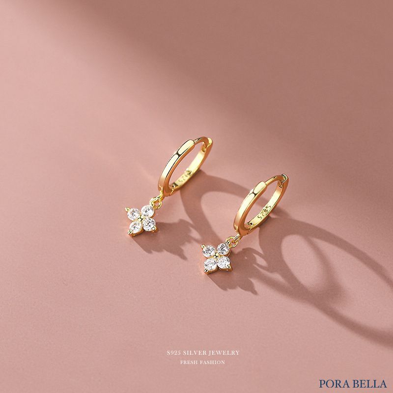 925純銀花卉扣耳 四葉草耳飾耳環 鑲鑽扣耳 高級感耳飾 耳飾 Earrings銀色|金色Porabella人氣飾品優選飾品盒全館現貨