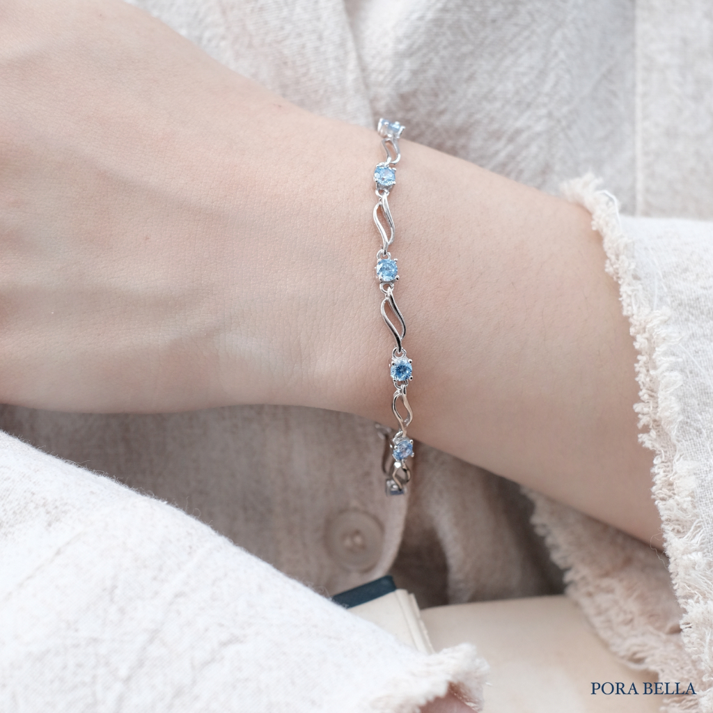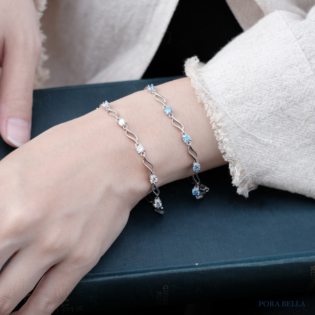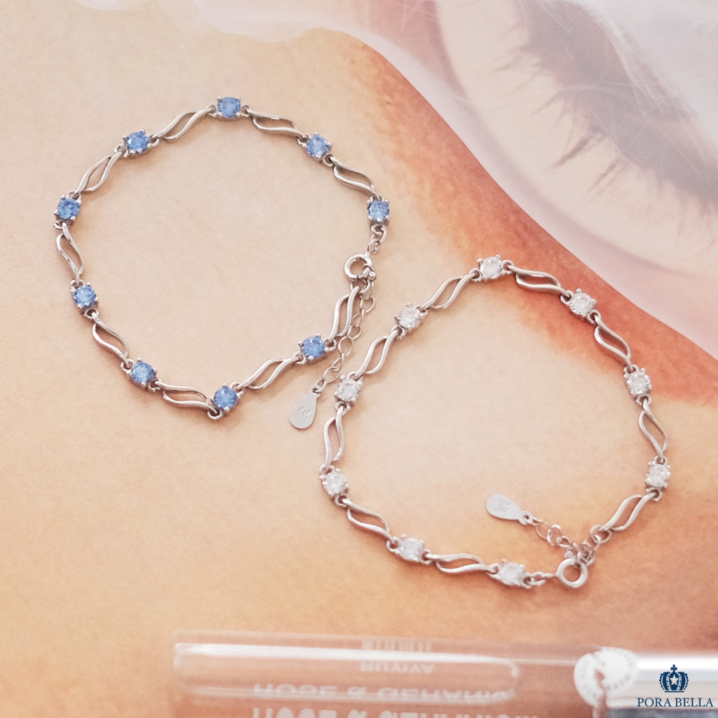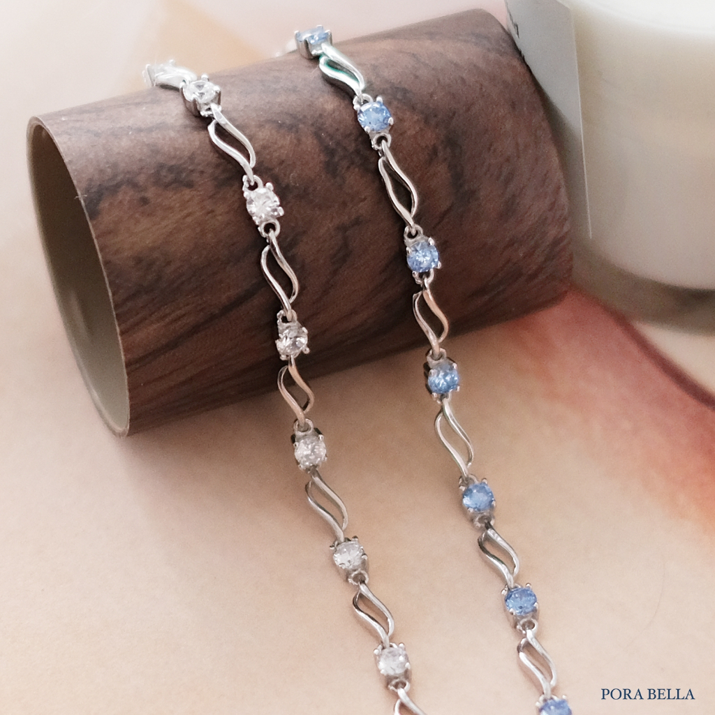 S999純銀鋯石手鍊 藍鋯石手鍊 氣質甜美風手鍊 小眾精緻足銀飾品 純銀手鍊 Bracelet藍鑽|白鑽Porabella人氣飾品優選飾品盒全館現貨