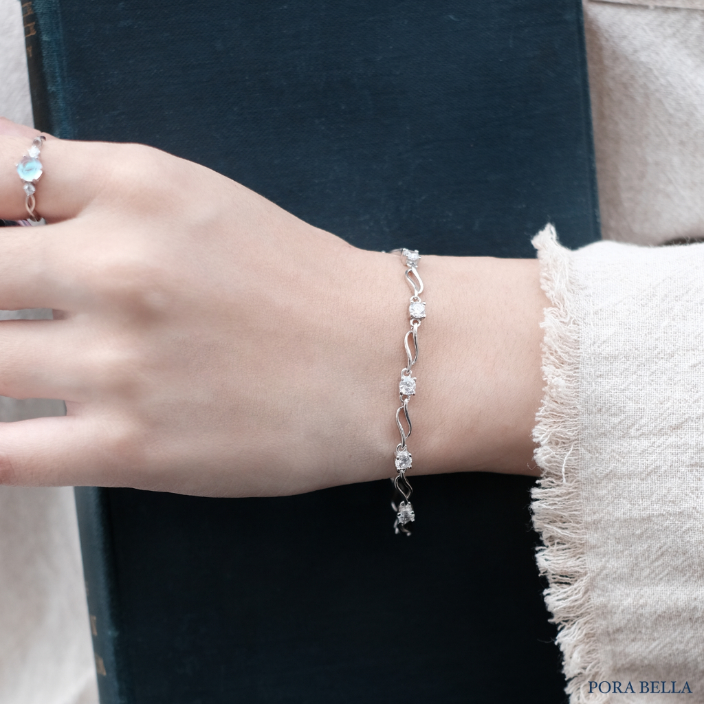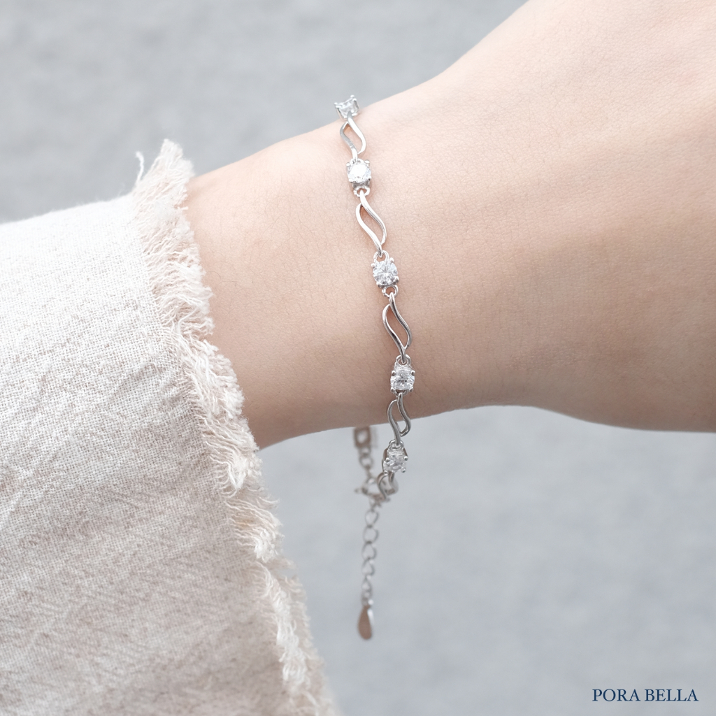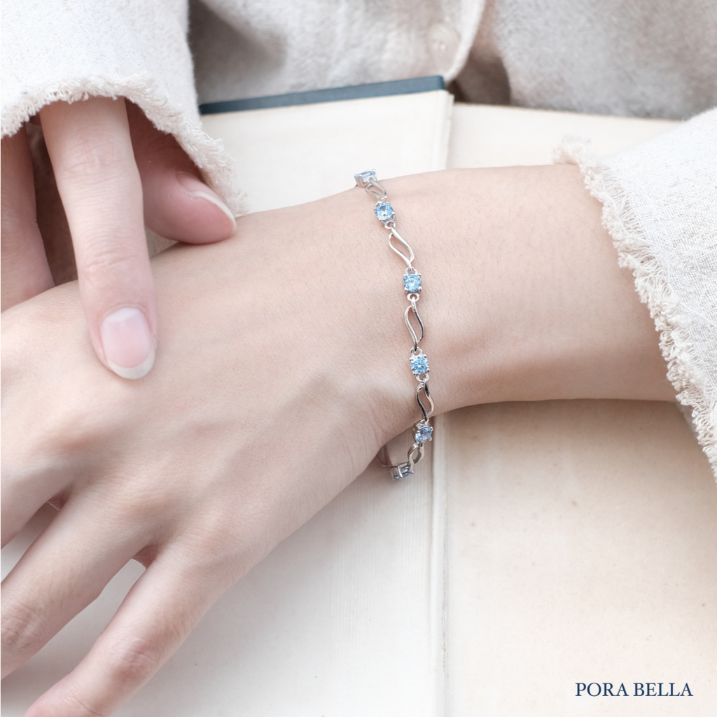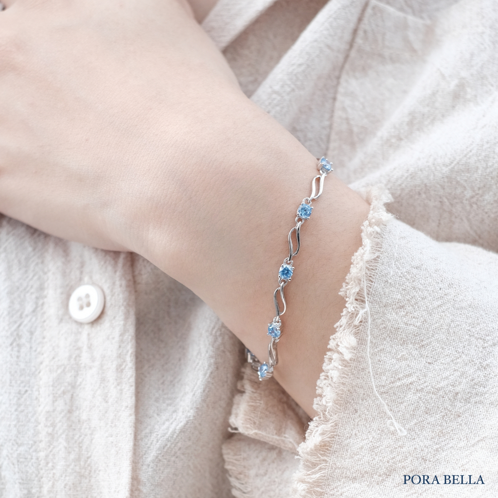 S999純銀鋯石手鍊 藍鋯石手鍊 氣質甜美風手鍊 小眾精緻足銀飾品 純銀手鍊 Bracelet藍鑽|白鑽Porabella人氣飾品優選飾品盒全館現貨