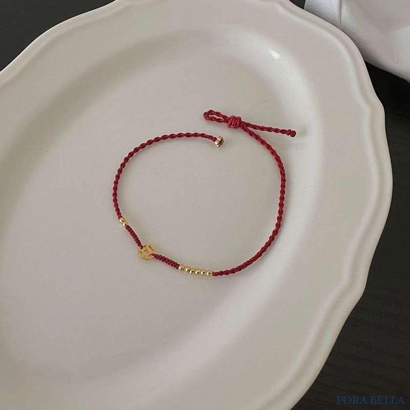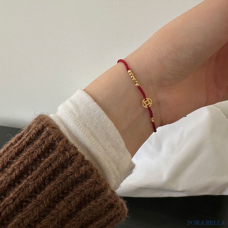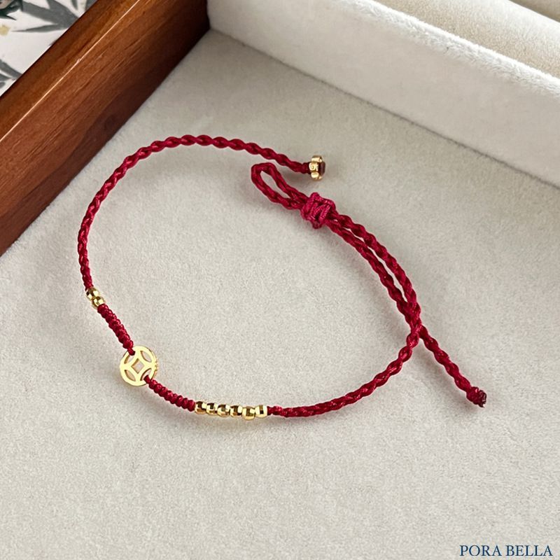 925純銀紅繩手鍊 錢幣編織紅繩手鍊 紅繩編織 錢幣手鍊 小眾設計 手飾手鍊 Bracelets錢幣紅繩Porabella人氣飾品優選飾品盒全館現貨