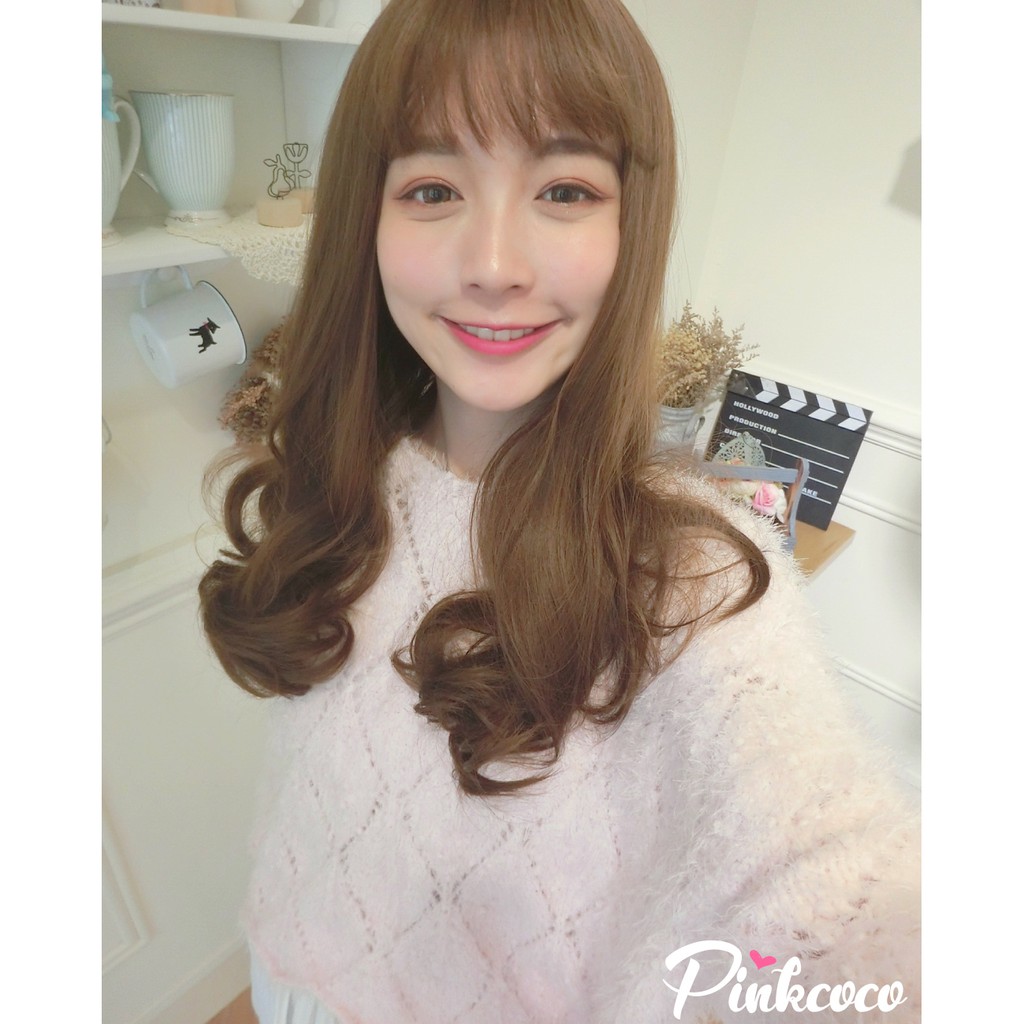 PINKCOCO 粉紅可可 假髮【w03810】 蜜糖女孩 微空氣瀏海 大頭皮 括號捲中長髮亞麻黃|軟糖棕|巧克力|黑棕色Wigs & ExtensionsPINKCOCO 粉紅可可 官方旗艦館