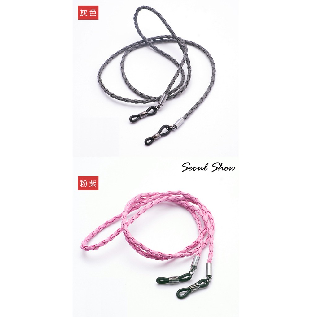 seoul show首爾秀 麻花編織皮繩口罩掛繩鍊太陽眼鏡鍊光學眼鏡防丟鍊黑色|咖啡|灰色|粉紫|藍色|淺藍|卡其|紫色|暗紅Eyewear Cases & Accessoriesseoul show首爾秀 日韓流行穿搭配件
