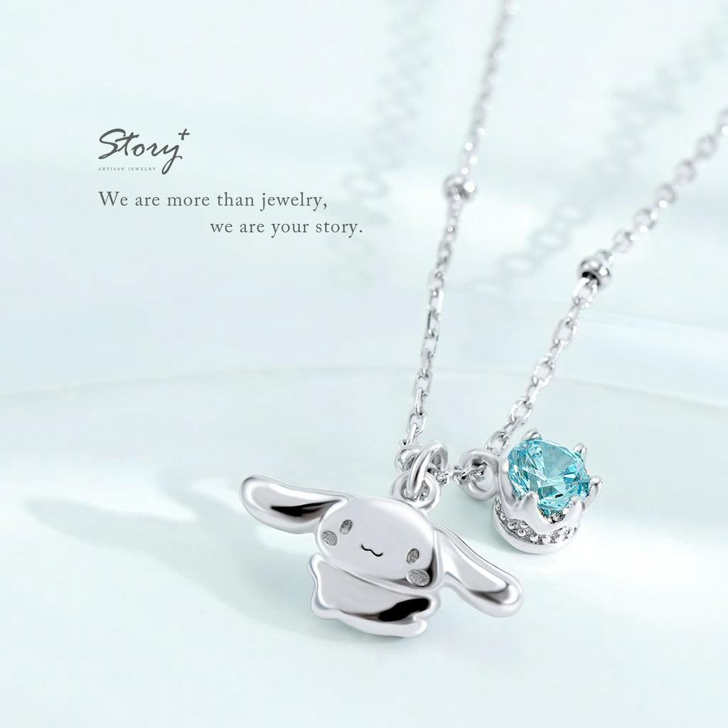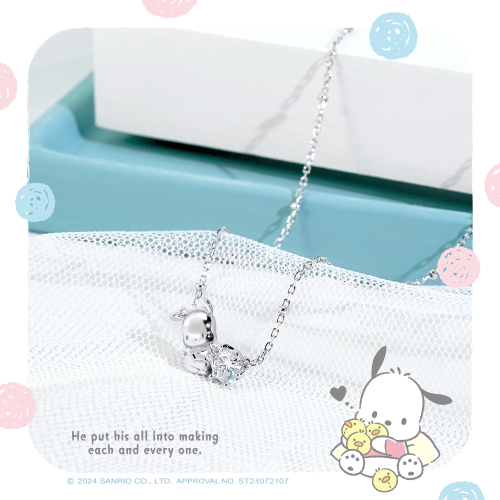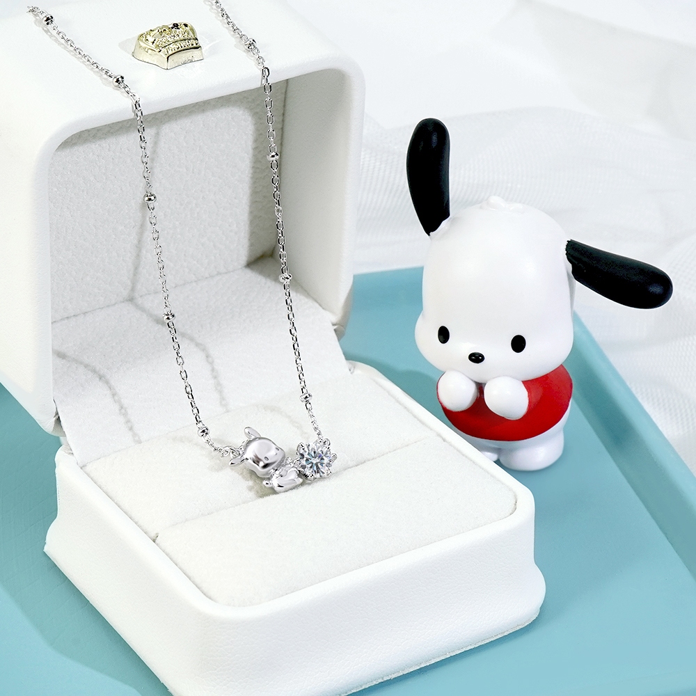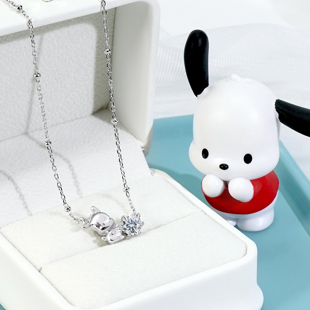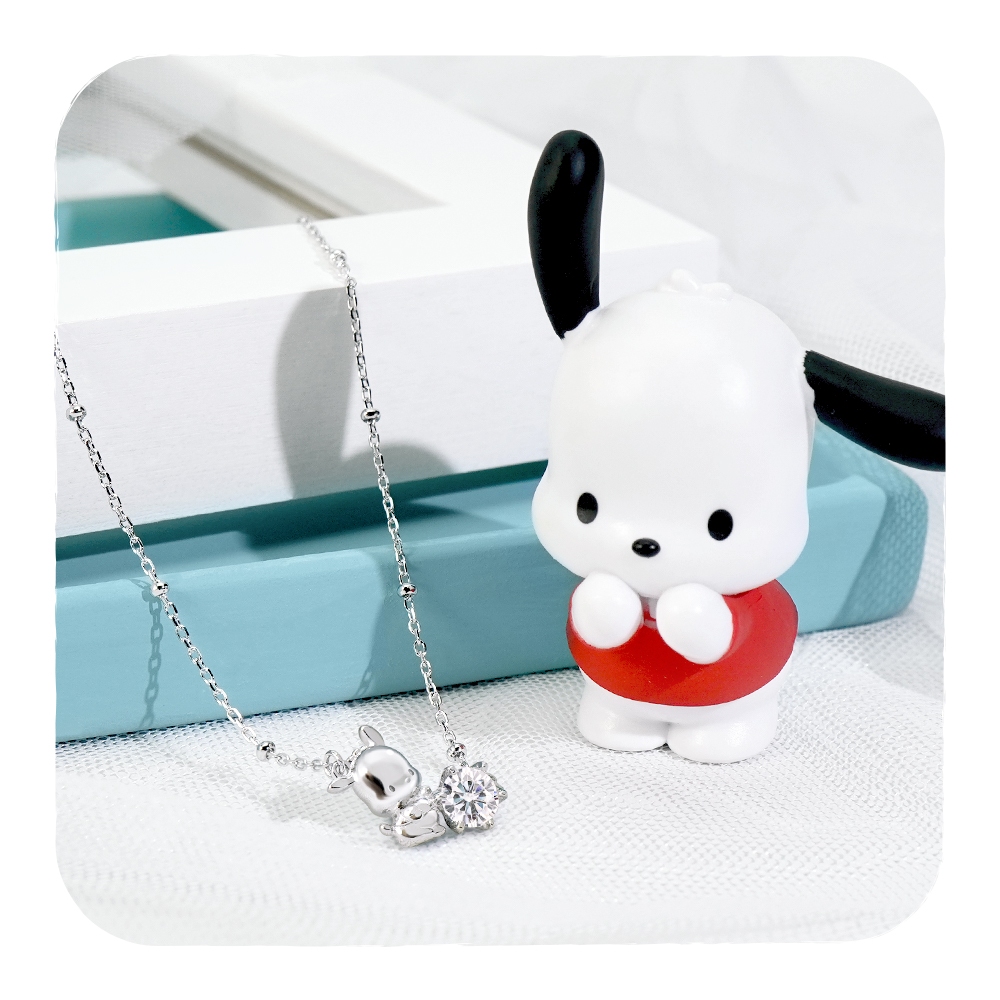 STORY故事銀飾-Pochacco莫桑鑽系列-帕恰狗莫桑石單鑽純銀項鍊正常16吋(約40公分)|加購2.5cm延長鍊|加購5cm延長鍊STORY ACCESSORY 官方旗艦店