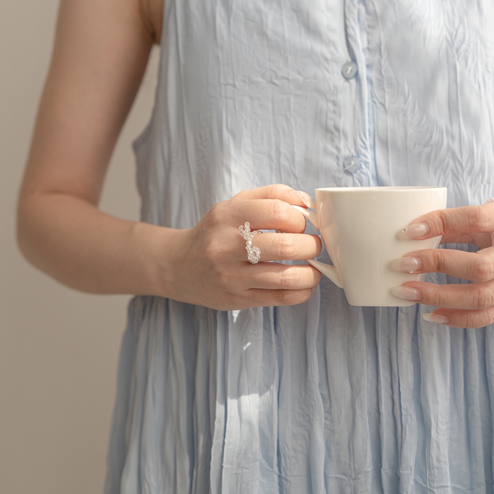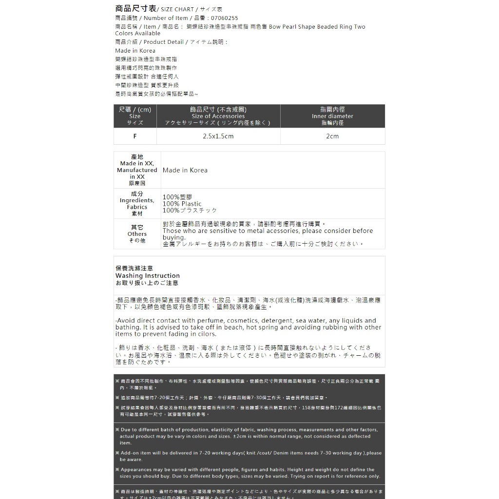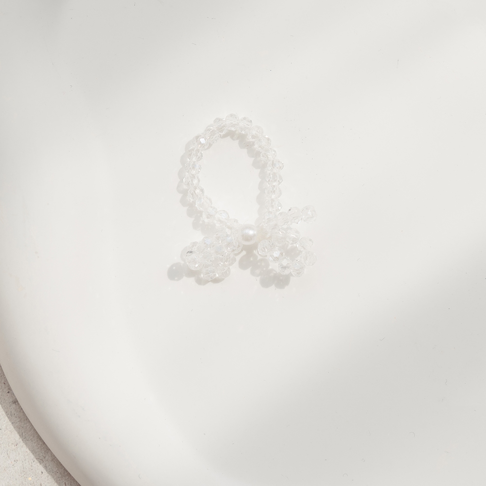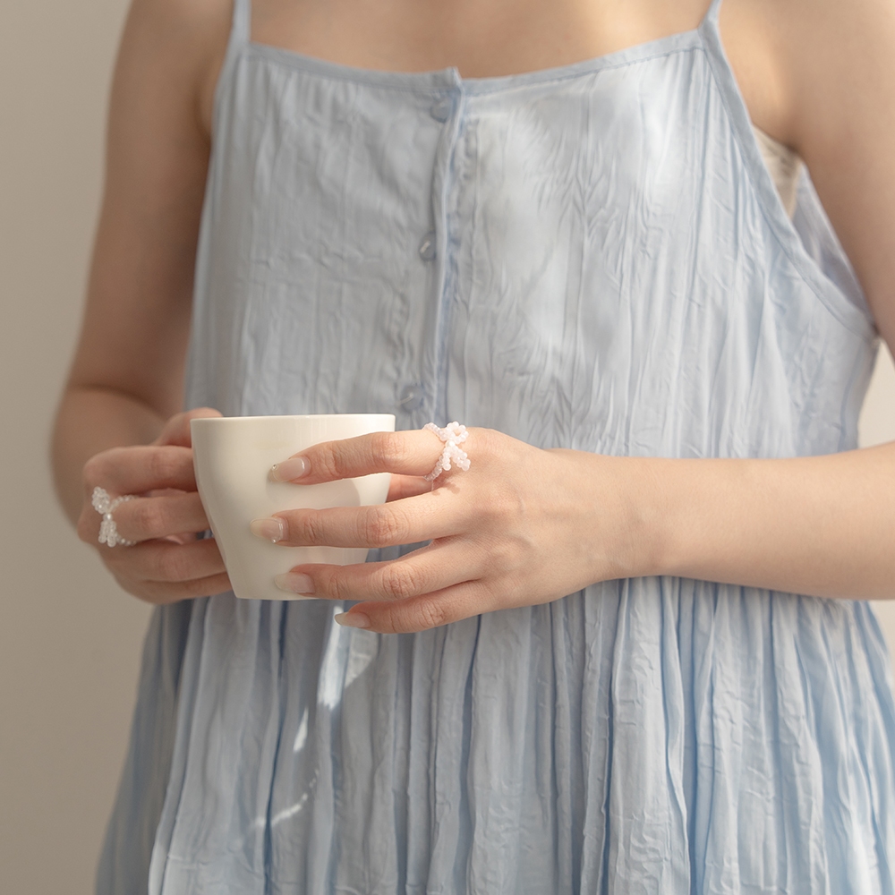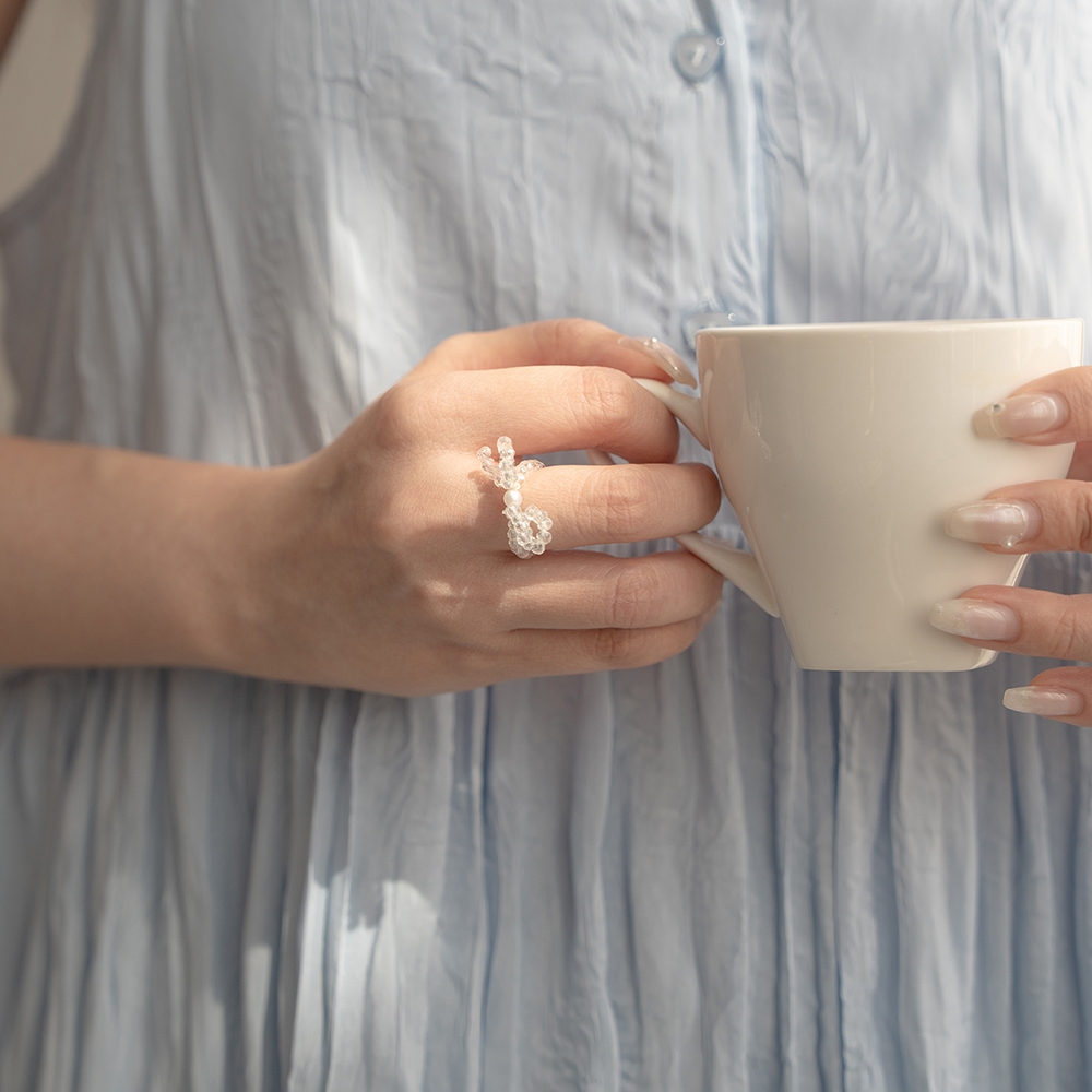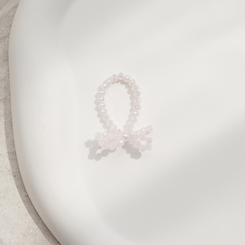 QUEENSHOP_ S 正韓 蝴蝶結珍珠造型串珠戒指 兩色售 現+預 【07060255】白|粉QUEENSHOP