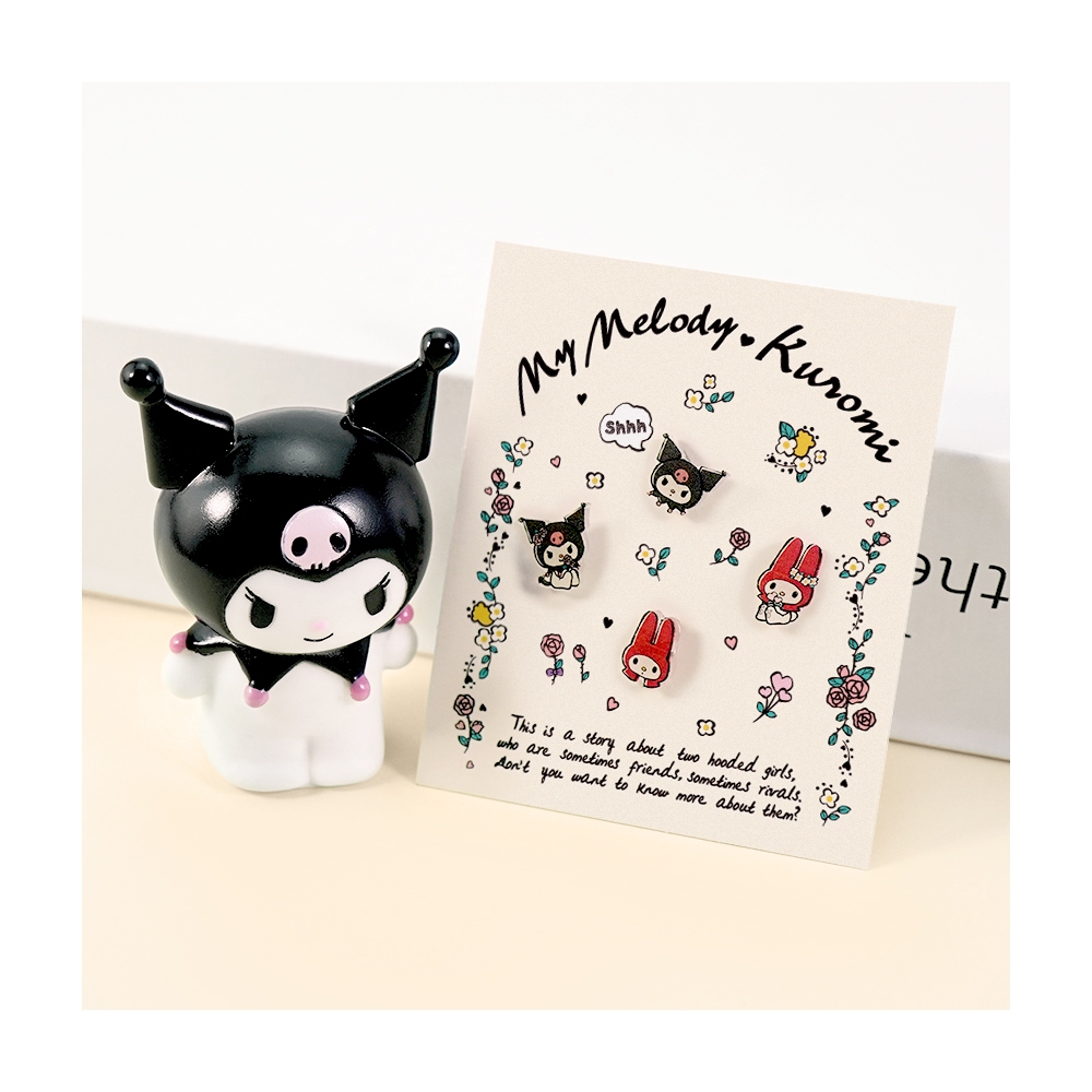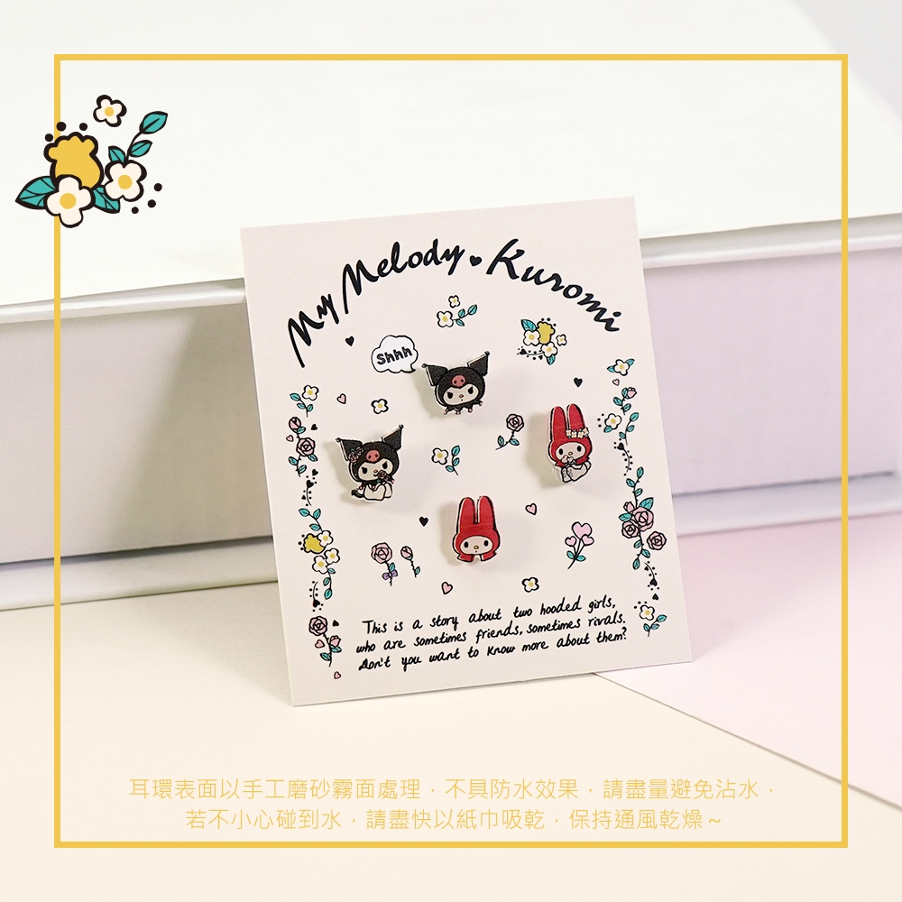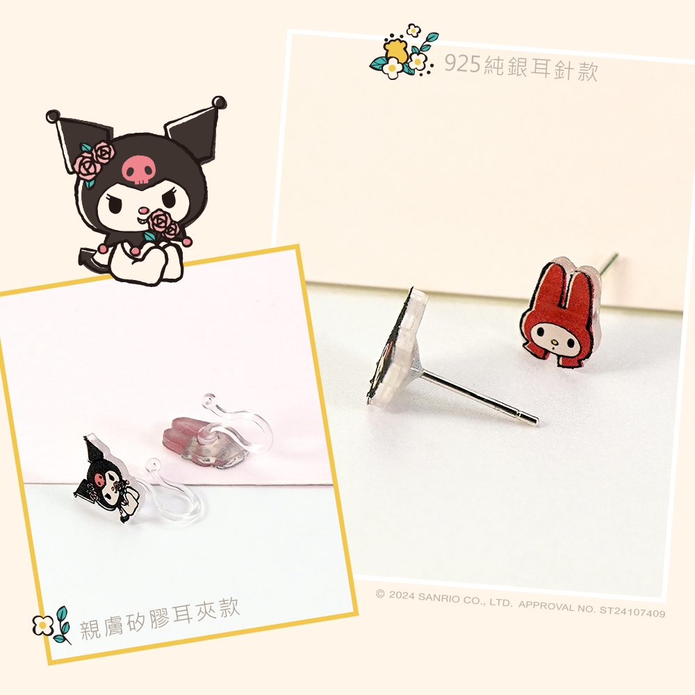 STORY故事銀飾-Kuromi系列-酷洛米造型耳環組-酷洛米與美樂蒂款925純銀耳針|親膚矽膠耳夾STORY ACCESSORY 官方旗艦店