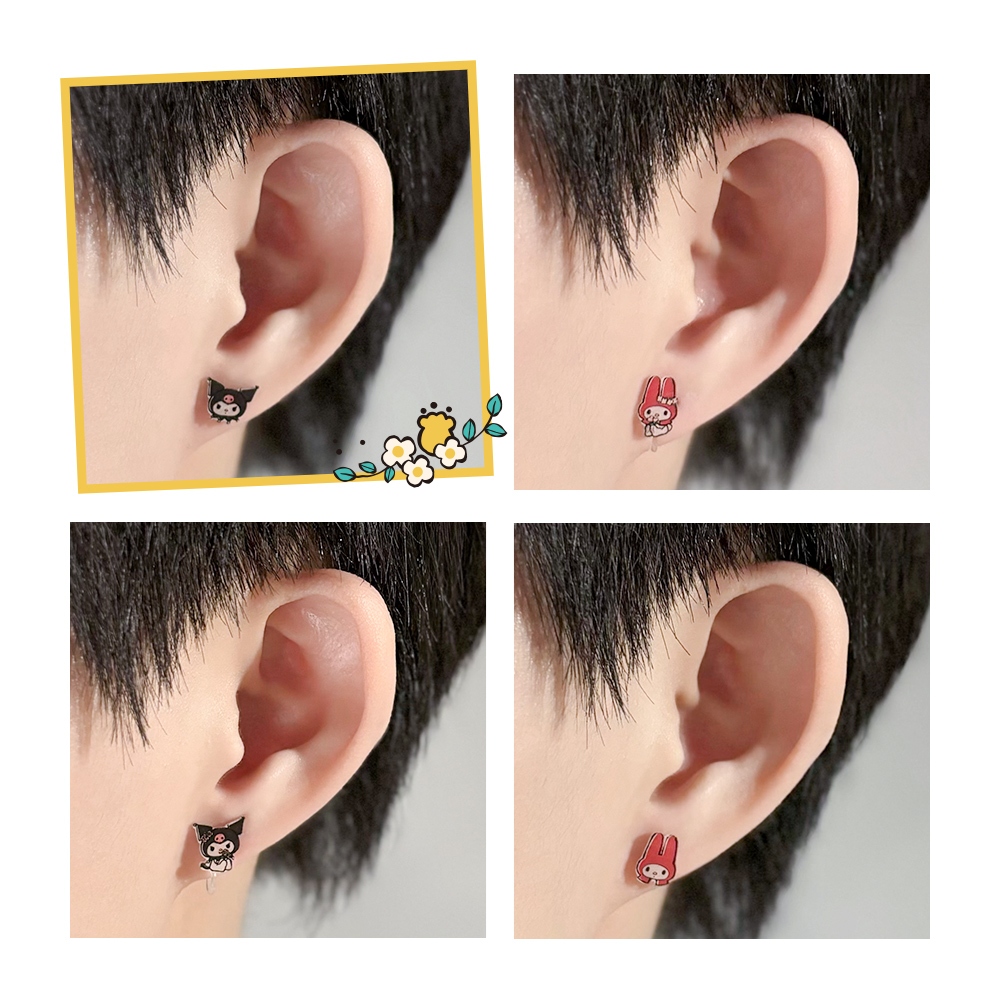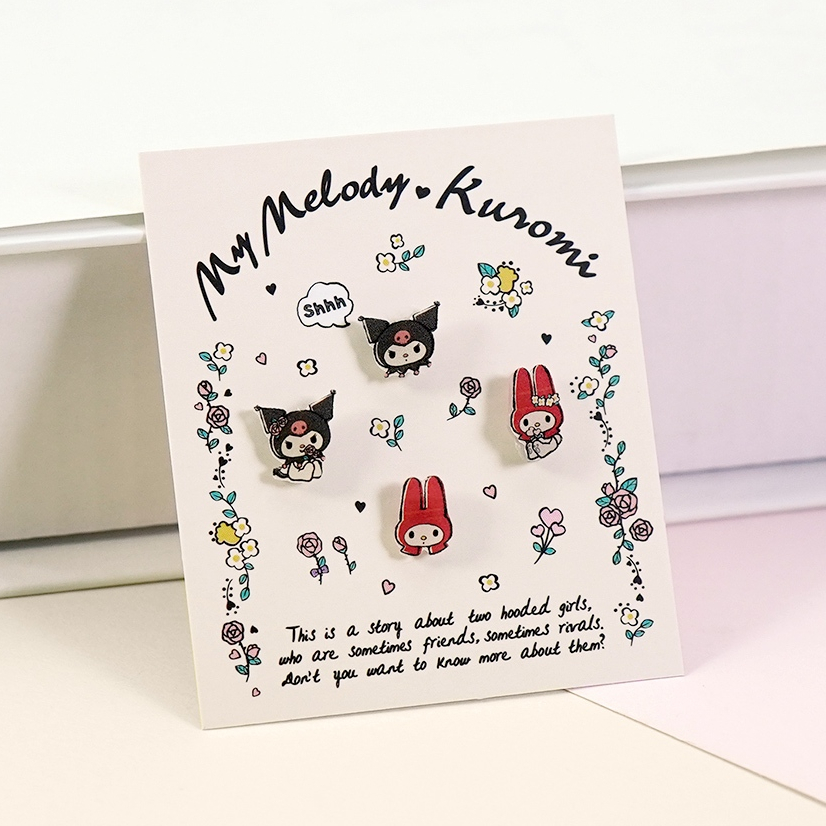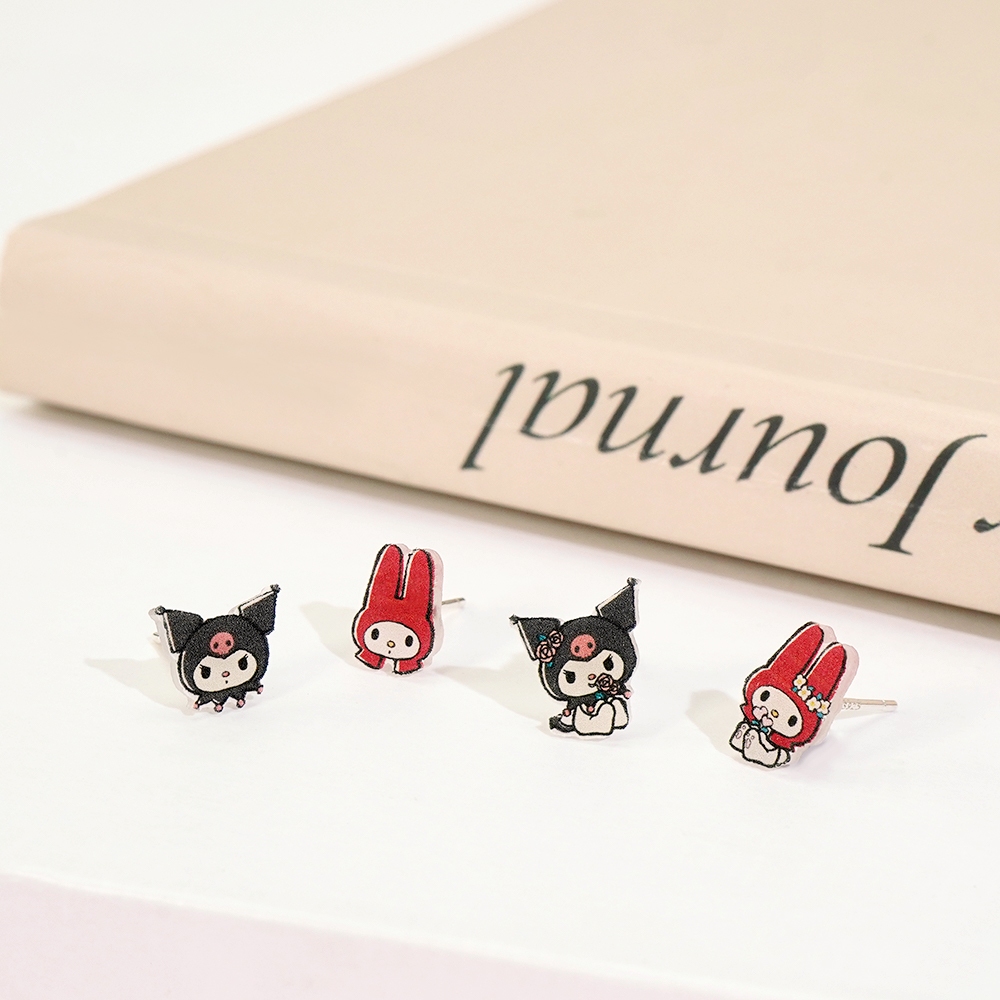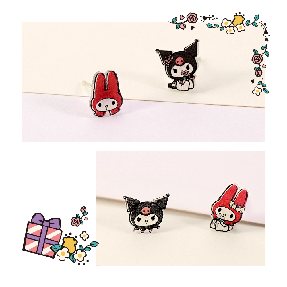 STORY故事銀飾-Kuromi系列-酷洛米造型耳環組-酷洛米與美樂蒂款925純銀耳針|親膚矽膠耳夾STORY ACCESSORY 官方旗艦店