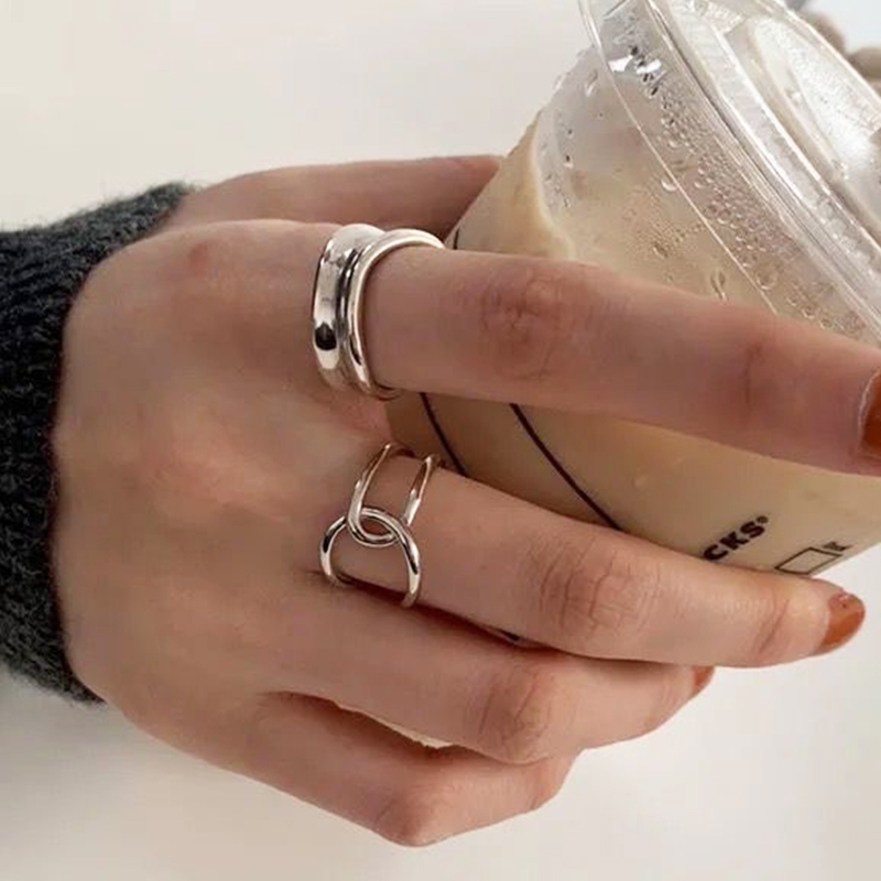 QUEENSHOP_ S 正韓 不規則雙環交叉造型戒指 現+預 【07060260】依賣場QUEENSHOP