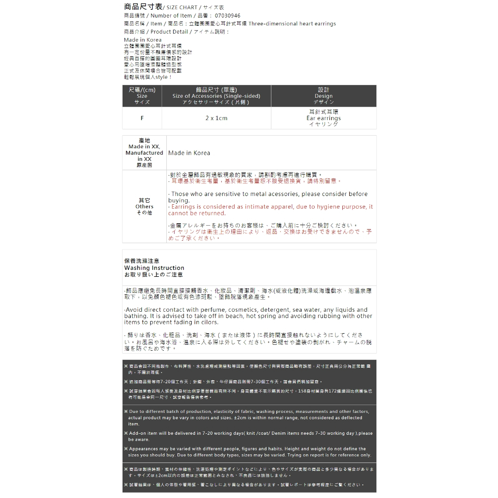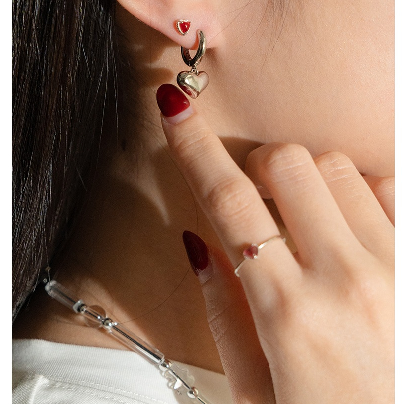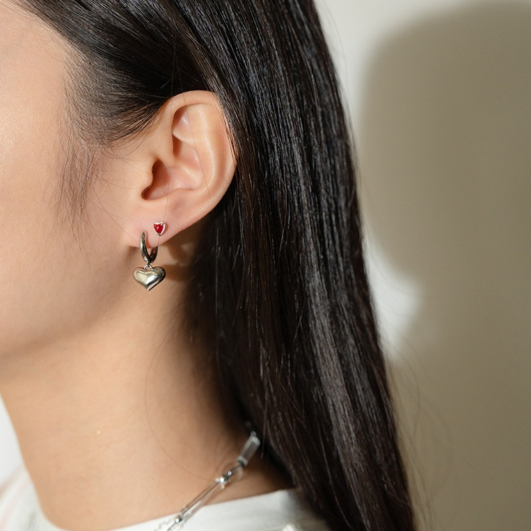 QUEENSHOP_ S 女裝 正韓 立體圈圈愛心耳針式耳環 現+預 【07030946】依賣場QUEENSHOP