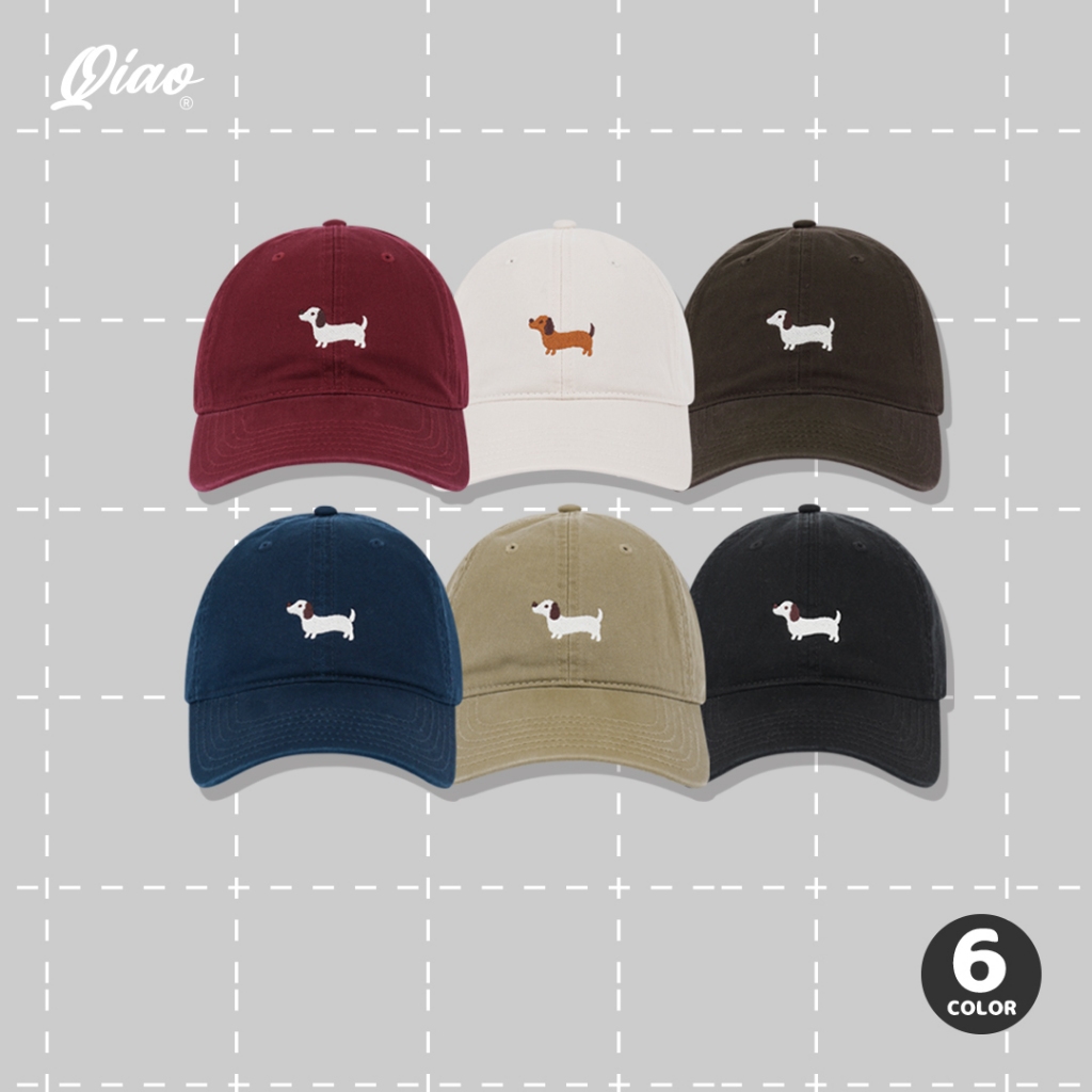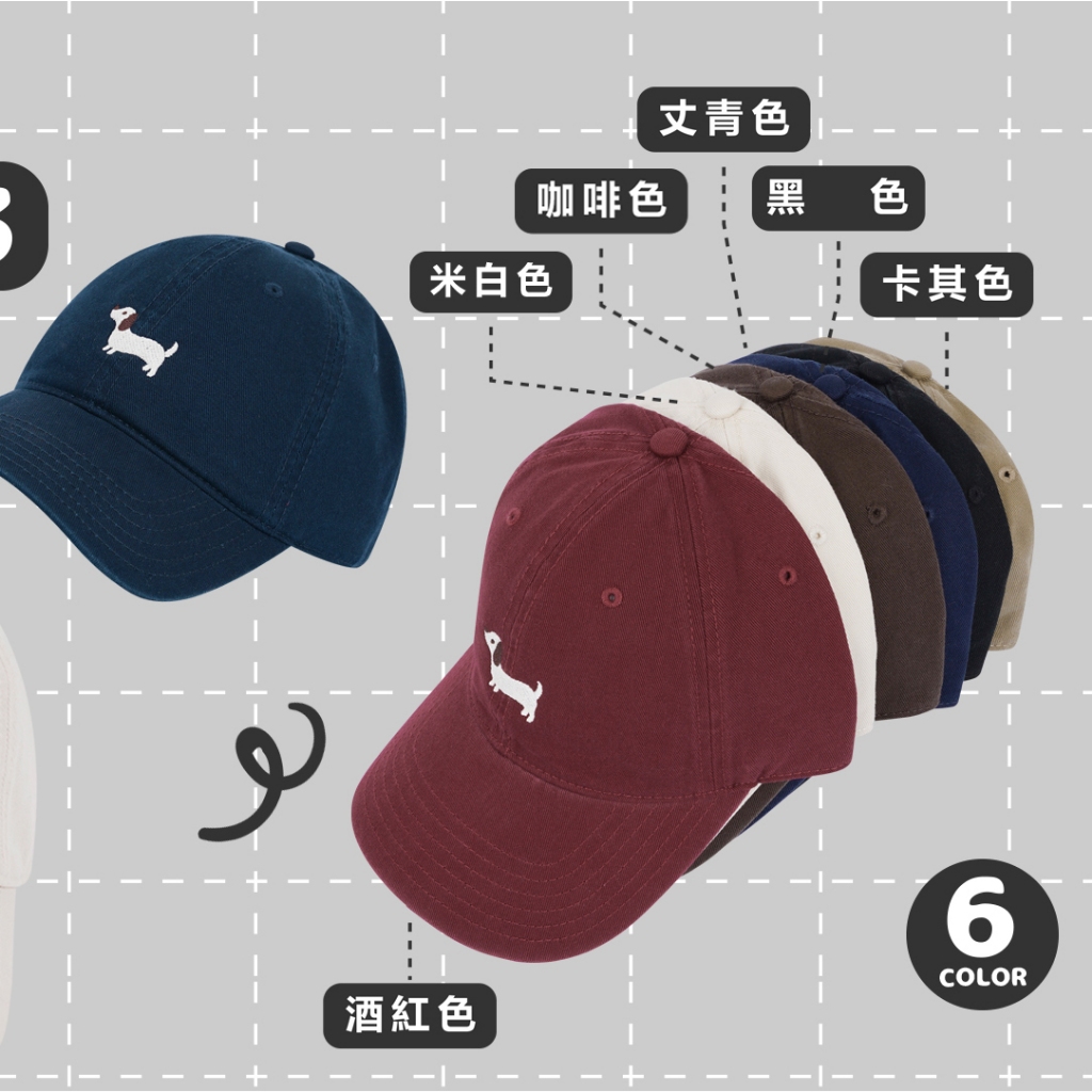 【QIAO】臘腸狗刺繡老帽|6色可選|可愛休閒百搭帽 男女適用 帽子 情侶帽 GR-013酒紅色|米白色|咖啡色|丈青色|卡其色|黑色QIAO 潮人服飾旗艦店