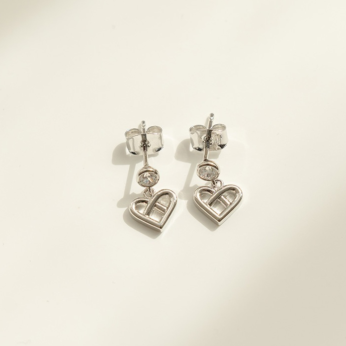 QUEENSHOP_ S 女裝 正韓 水鑽鏤空愛心吊墜耳針式耳環 現+預 【07030942】依賣場QUEENSHOP