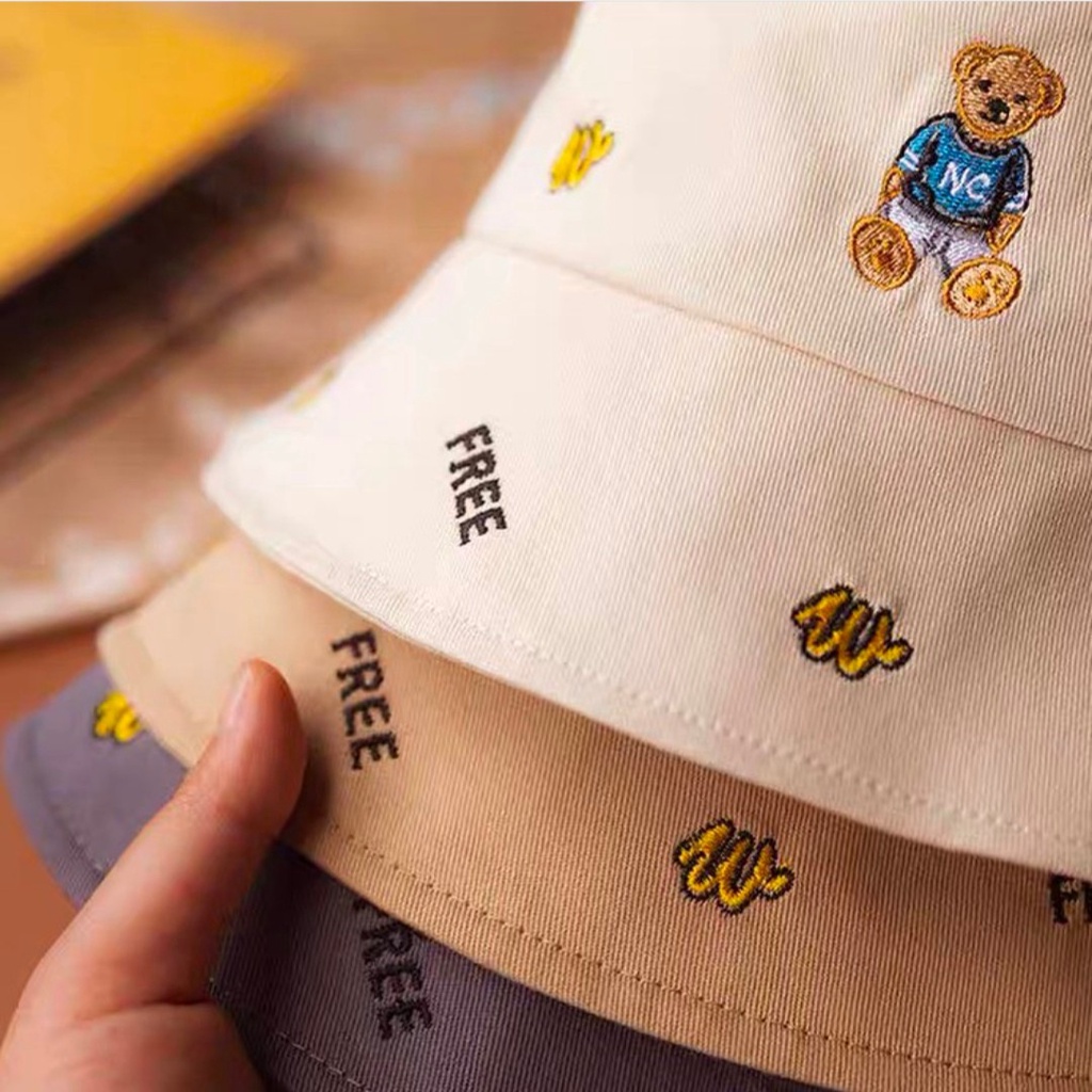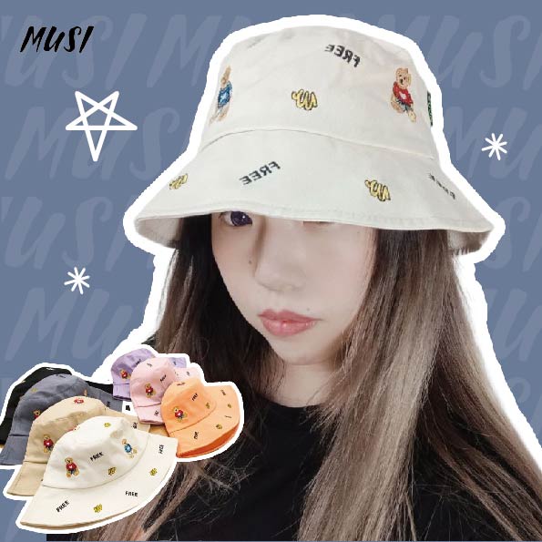 [特價出清158元]漁夫帽 遮陽帽 防曬帽 刺繡熊造型帽 帽子女 遮陽防曬帽 氣質帽 韓國帽子 出遊遮陽帽熊熊刺繡漁夫帽 紫 現貨隔天發|熊熊刺繡漁夫帽 橘 現貨隔天發|熊熊刺繡漁夫帽 白 現貨隔天發|熊熊刺繡漁夫帽 黑 現貨隔天發MUSI 口罩&包包帽子 專賣