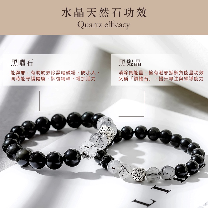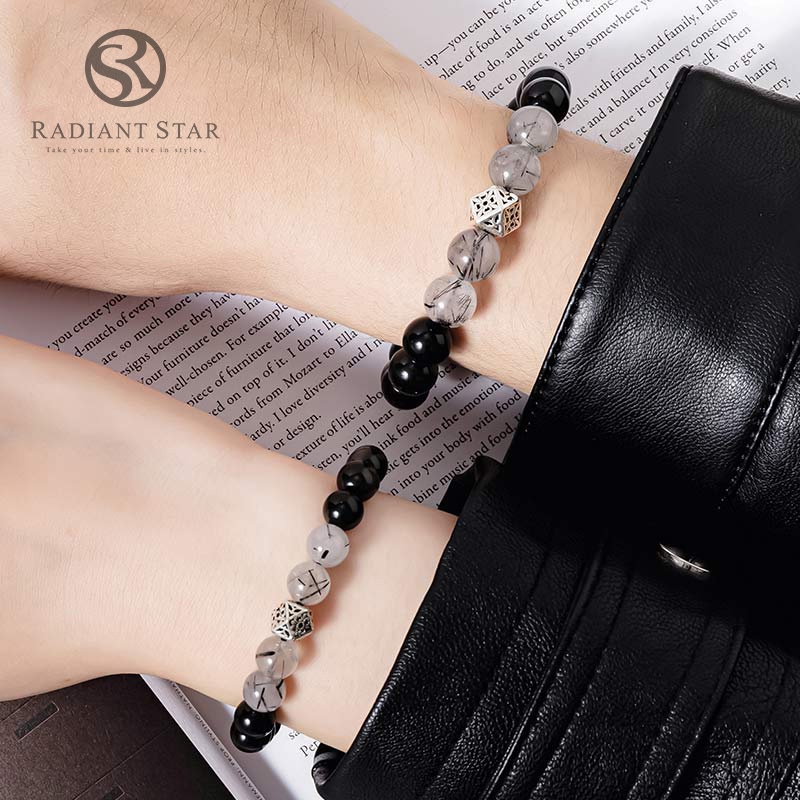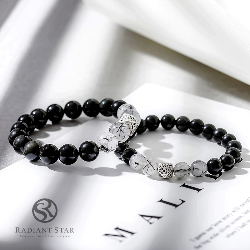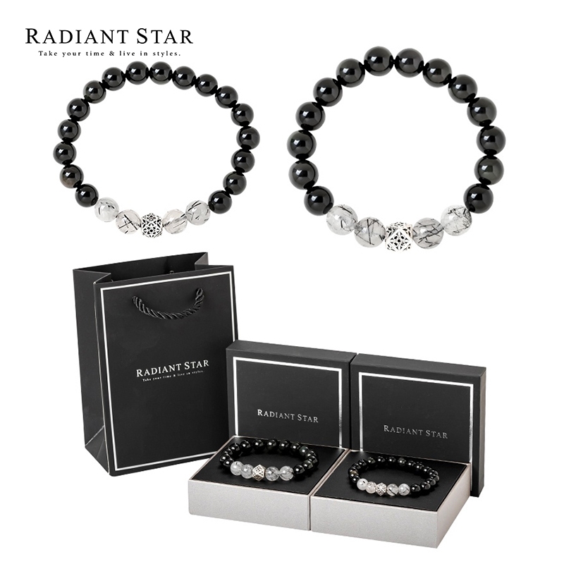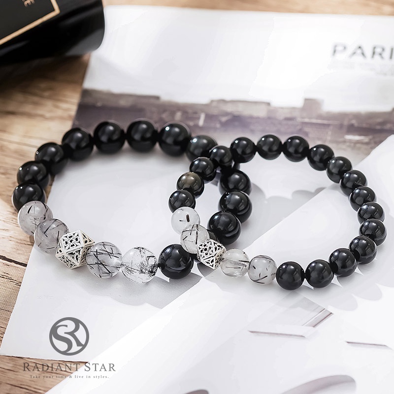 慕光之城黑曜石黑髮晶1+1水晶串珠手環二件套組【ATS683】璀璨之星男款(大)+女款(小)Radiant Star 璀璨之星 官方旗艦店