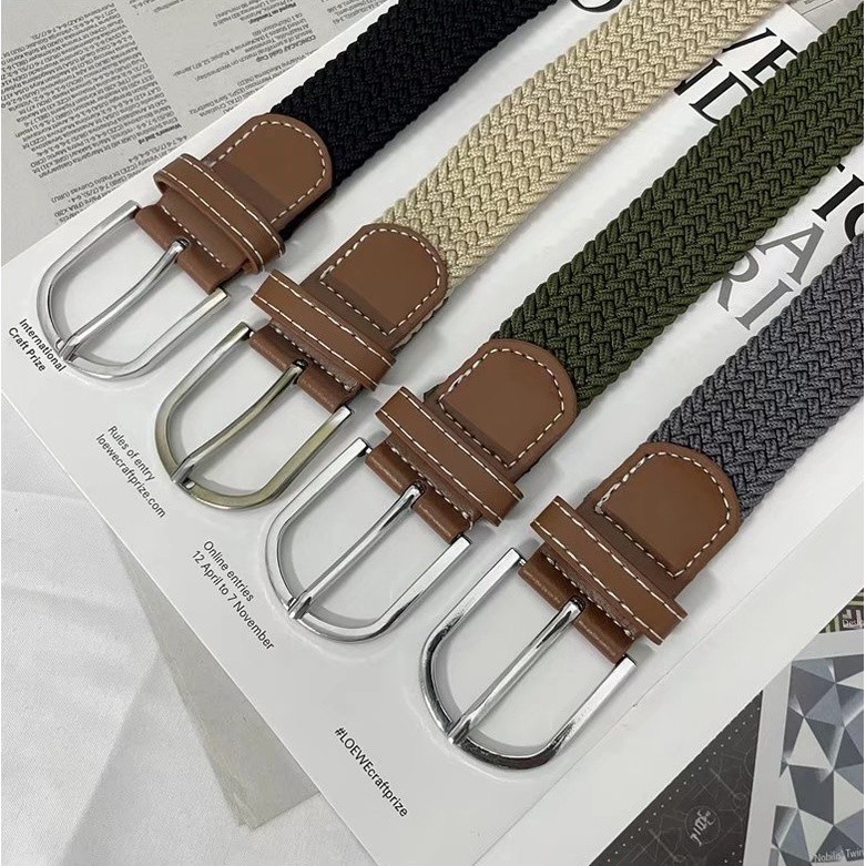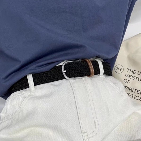 【M世代】纯色彈力橡筋帆布免打孔鬆緊褲腰带 編織帆布腰帶男女亮銀針釦皮带(WWY42)