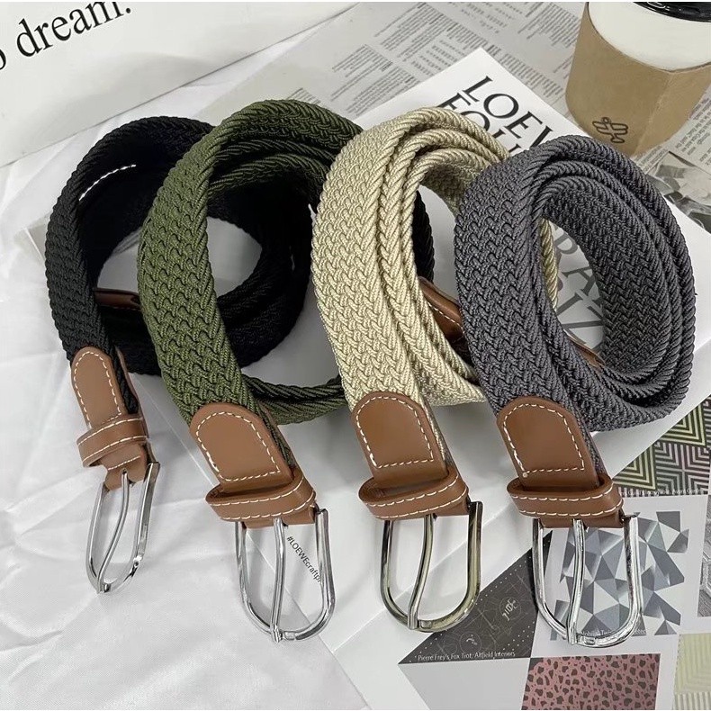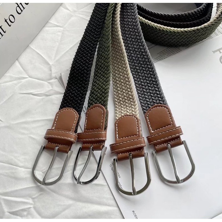 【M世代】纯色彈力橡筋帆布免打孔鬆緊褲腰带 編織帆布腰帶男女亮銀針釦皮带(WWY42)黑色|卡其|灰色|綠色M世代官方