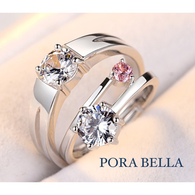 S925純銀情侶鋯石對戒 永恆告白愛情可調開口式對戒 粉色鋯石戒指 RINGS <一對販售>男款|女款|一對Porabella人氣飾品優選飾品盒全館現貨