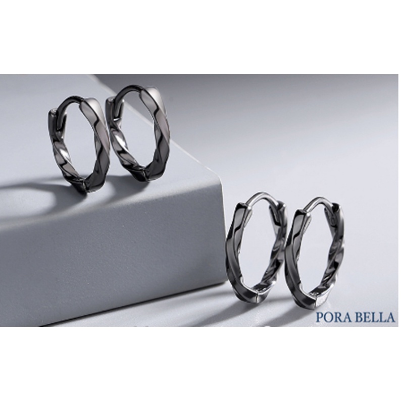 S925純銀光身亮面扭線耳扣 簡約有型黑金白金 男女通用 生日禮物 Earring (12mm)黑金|白金Porabella人氣飾品優選飾品盒全館現貨