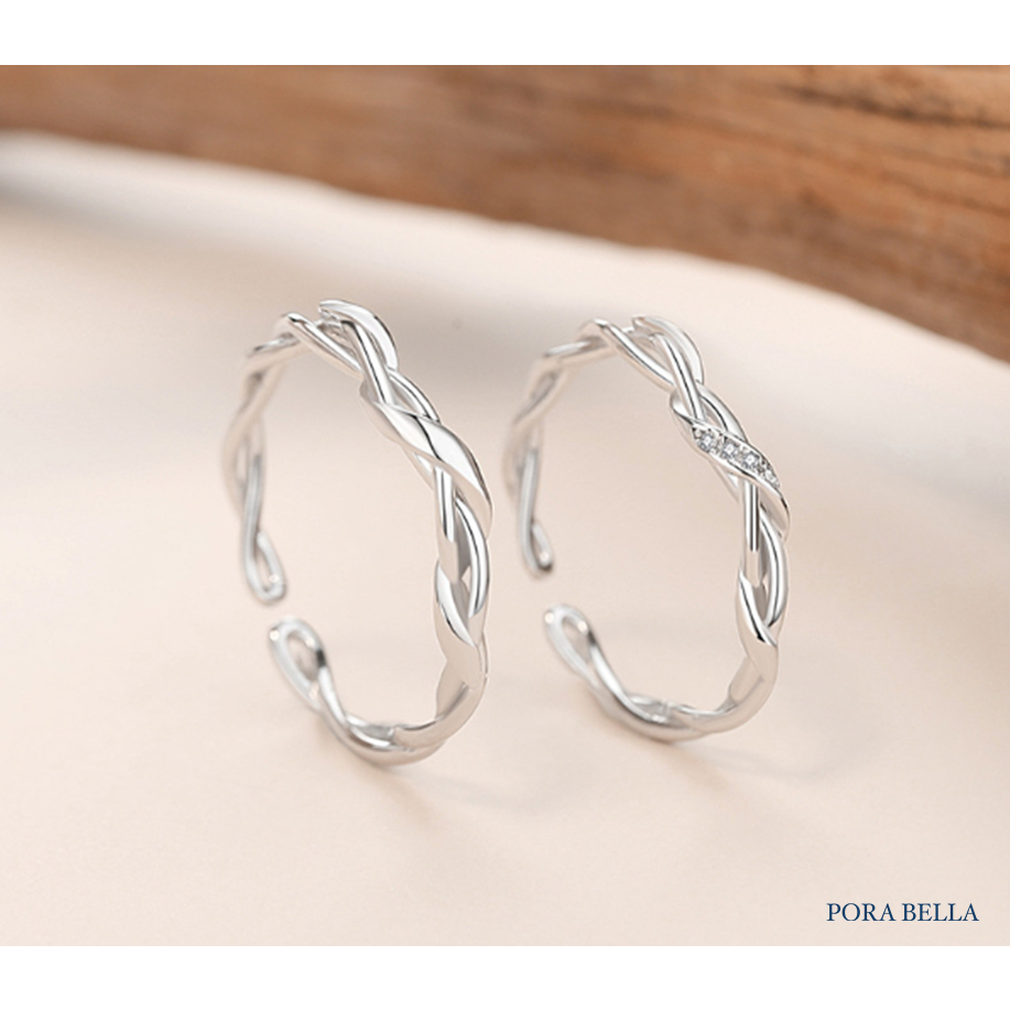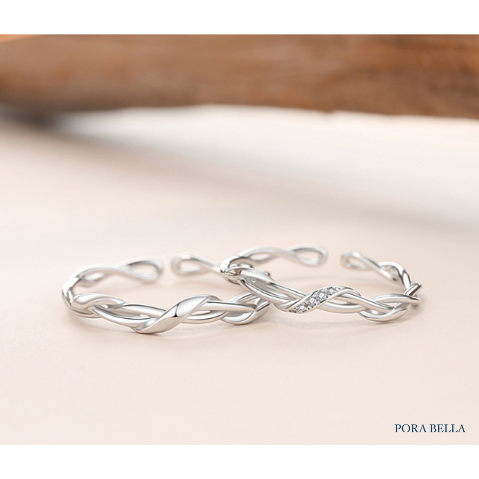 新款925純銀交織莫比情侶對戒 小眾設計 素圈麻花戒指 情人節禮物 可調開口式對戒 RINGS新款藤蔓(男)|新款藤蔓帶鑽(女)|一對Porabella人氣飾品優選飾品盒全館現貨