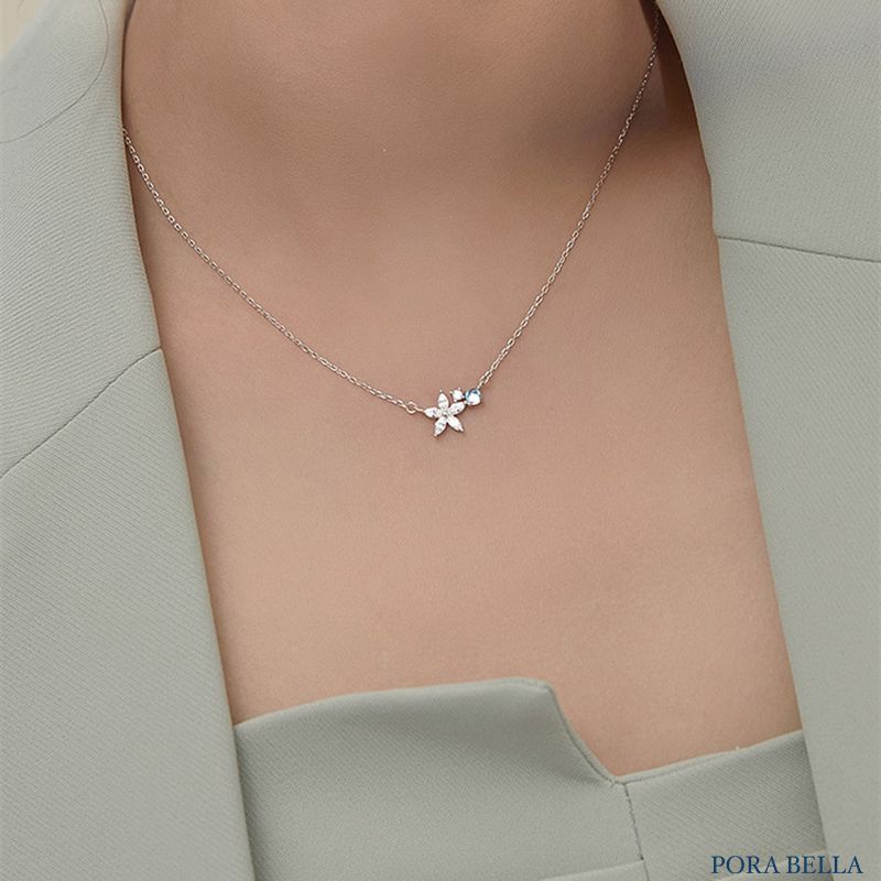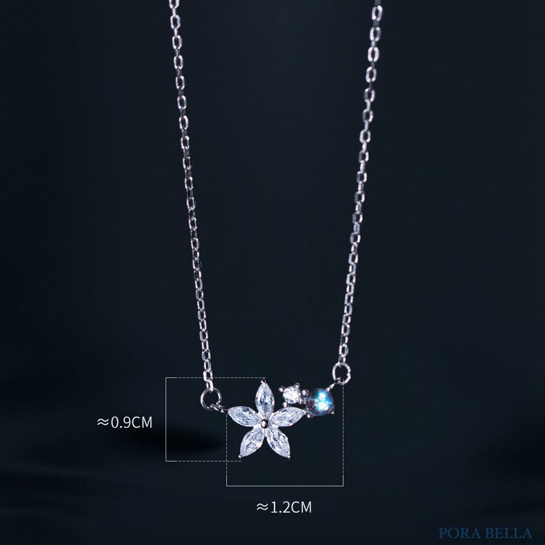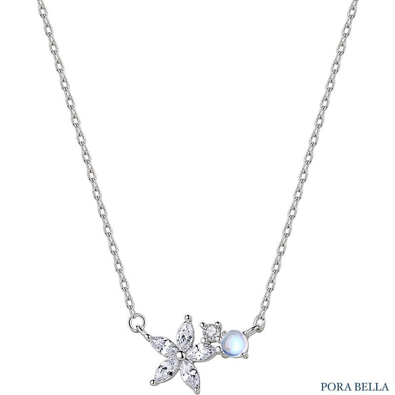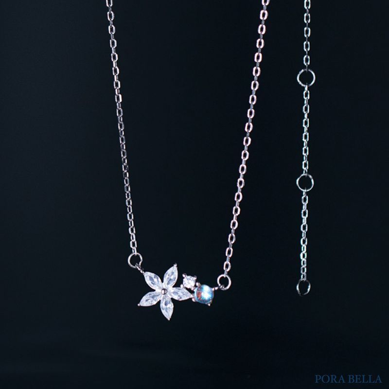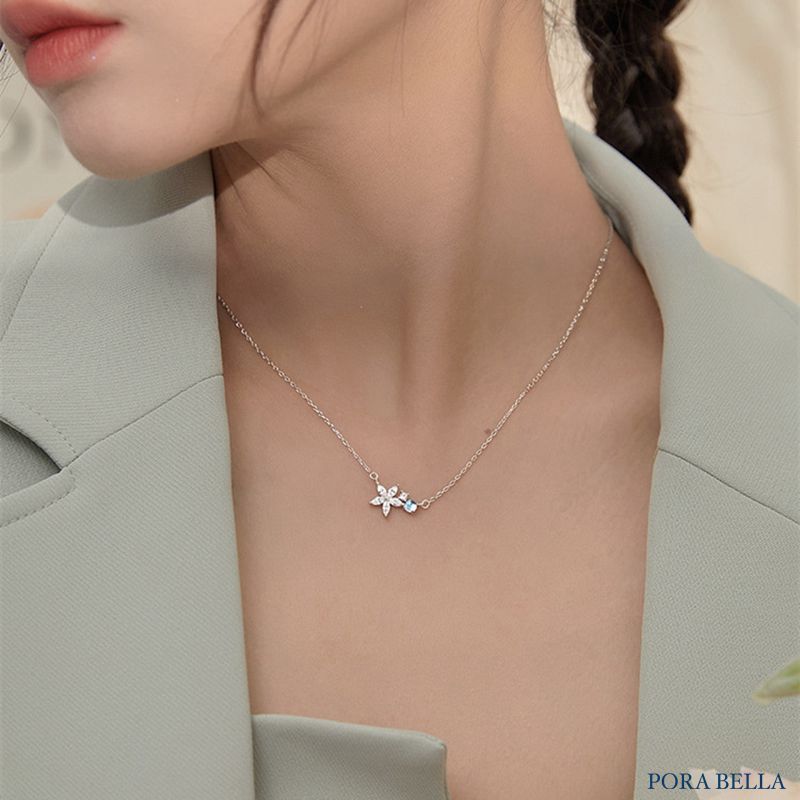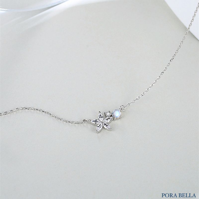 925純銀花朵月光石項鍊 鋯石月光石招財開運項鍊 輕奢小眾氣質鎖骨鍊 Necklace銀色Porabella人氣飾品優選飾品盒全館現貨