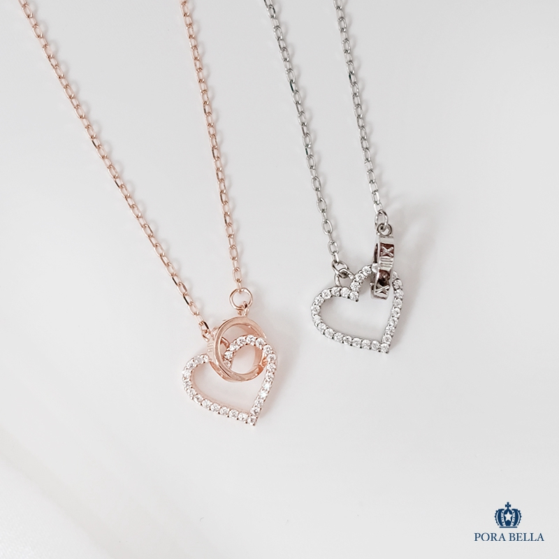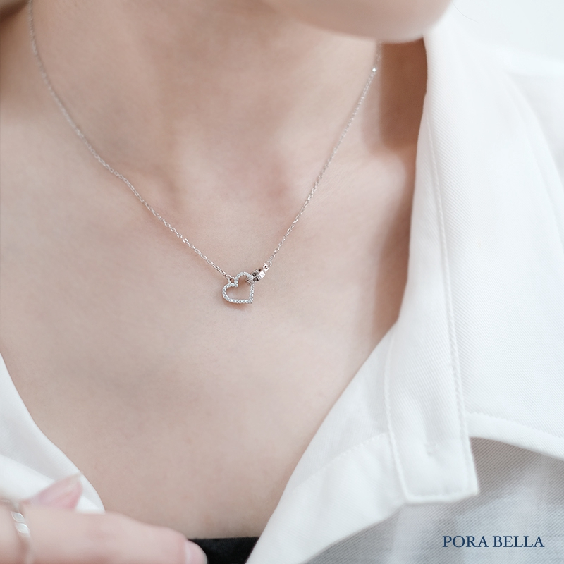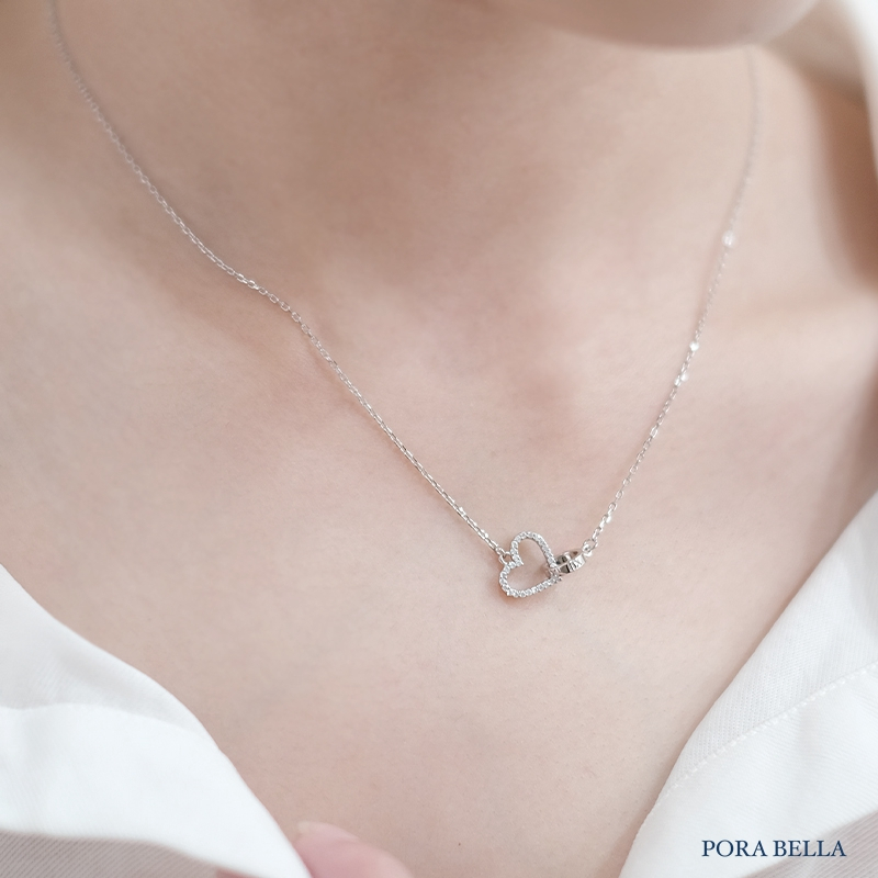 925純銀鋯石項鍊 幾何 愛心 告白 情人節 生日禮物 純銀項鍊 NecklaceL618銀|L618玫瑰金Porabella人氣飾品優選飾品盒全館現貨