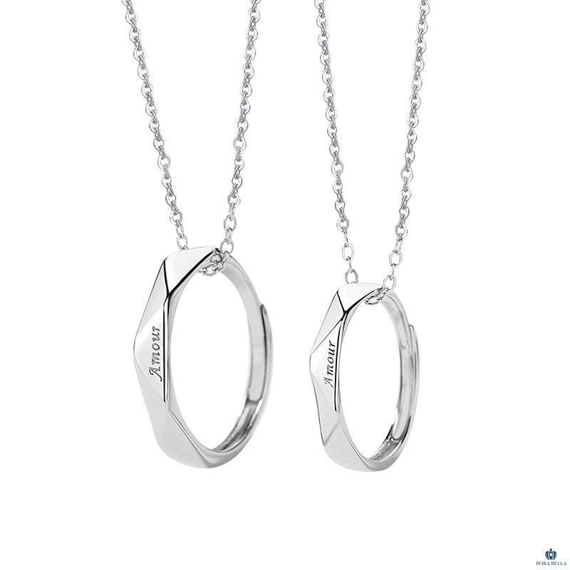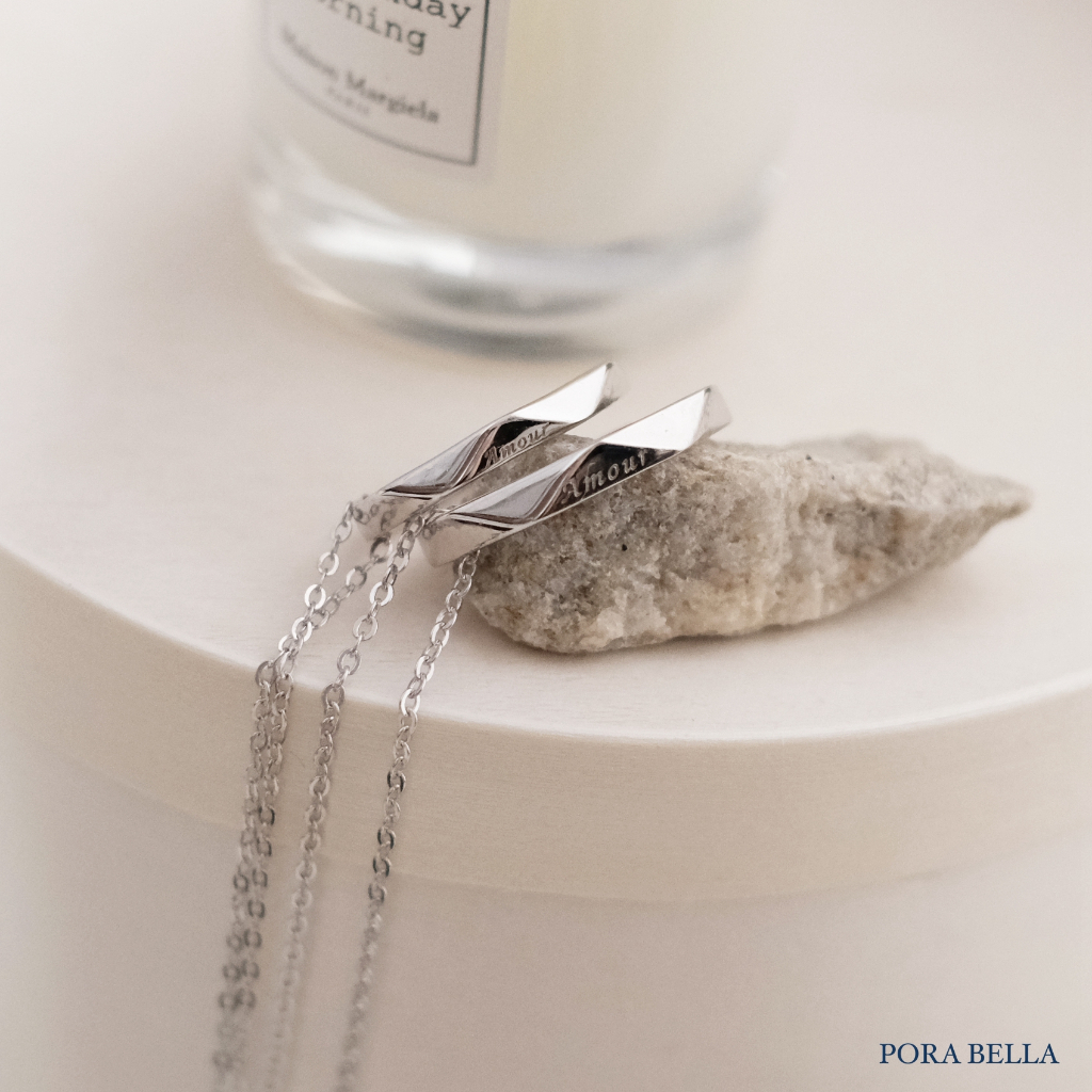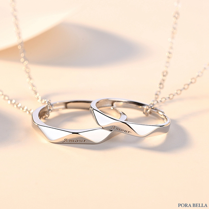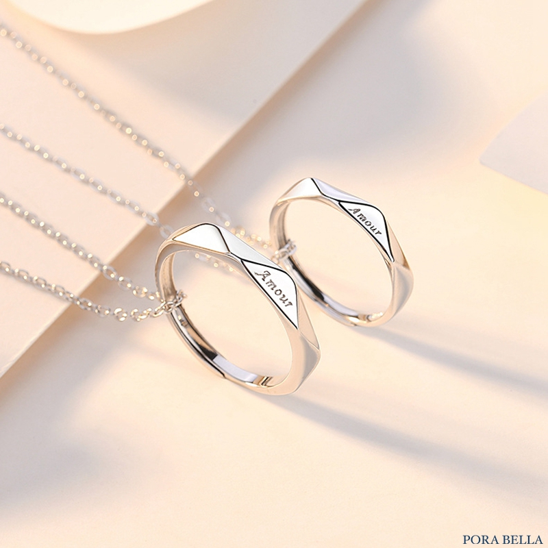 925純銀情侶項鍊 菱形對戒項鍊 法語Amour愛情戒指項鍊 情侶信物紀念告白 Necklace一對|男款|女款Porabella人氣飾品優選飾品盒全館現貨