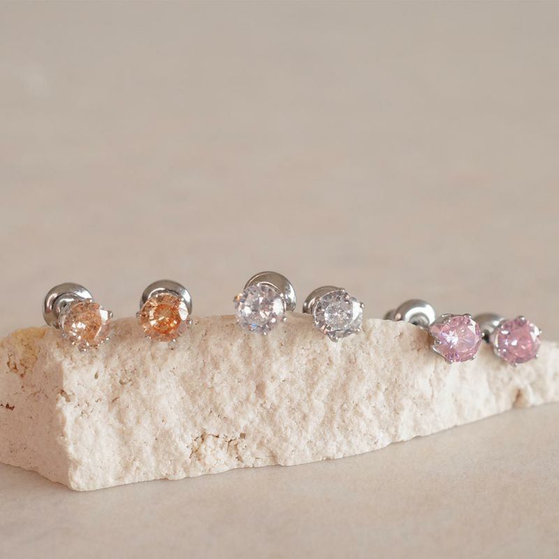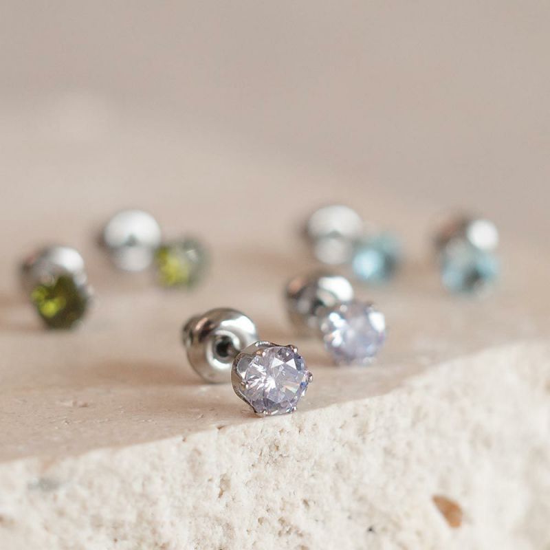 【耳環幸運色純鋼耳環4mm】 鋯石 低敏耳環 日本飾品 日本製造橙色:明亮、友好|淺黃色:智慧、快樂|淺紫色:藝術、高貴|綠色:富足、健康|粉紅色:愛與體貼|淺藍色:同理心及洞察力|藍色:平靜、體貼|透明色:堅定、善良OSEWAYA|台灣官方商店