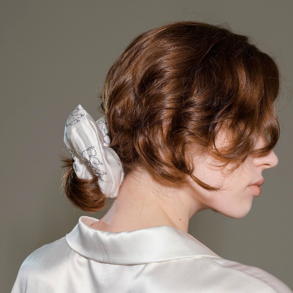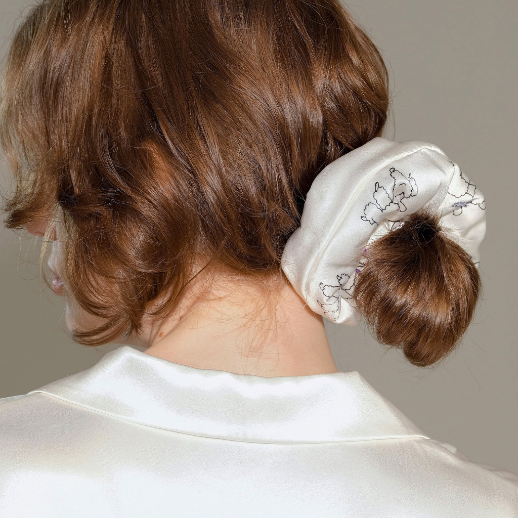 NotJustPajama鑽石小狗系列真絲髮圈/護髮髮圈/真絲大腸圈/桑蠶絲大腸圈小狗印花/白色,F(單只售賣)Hair Ties, Ribbons & ScrunchiesNot Just Pajama 官方商城