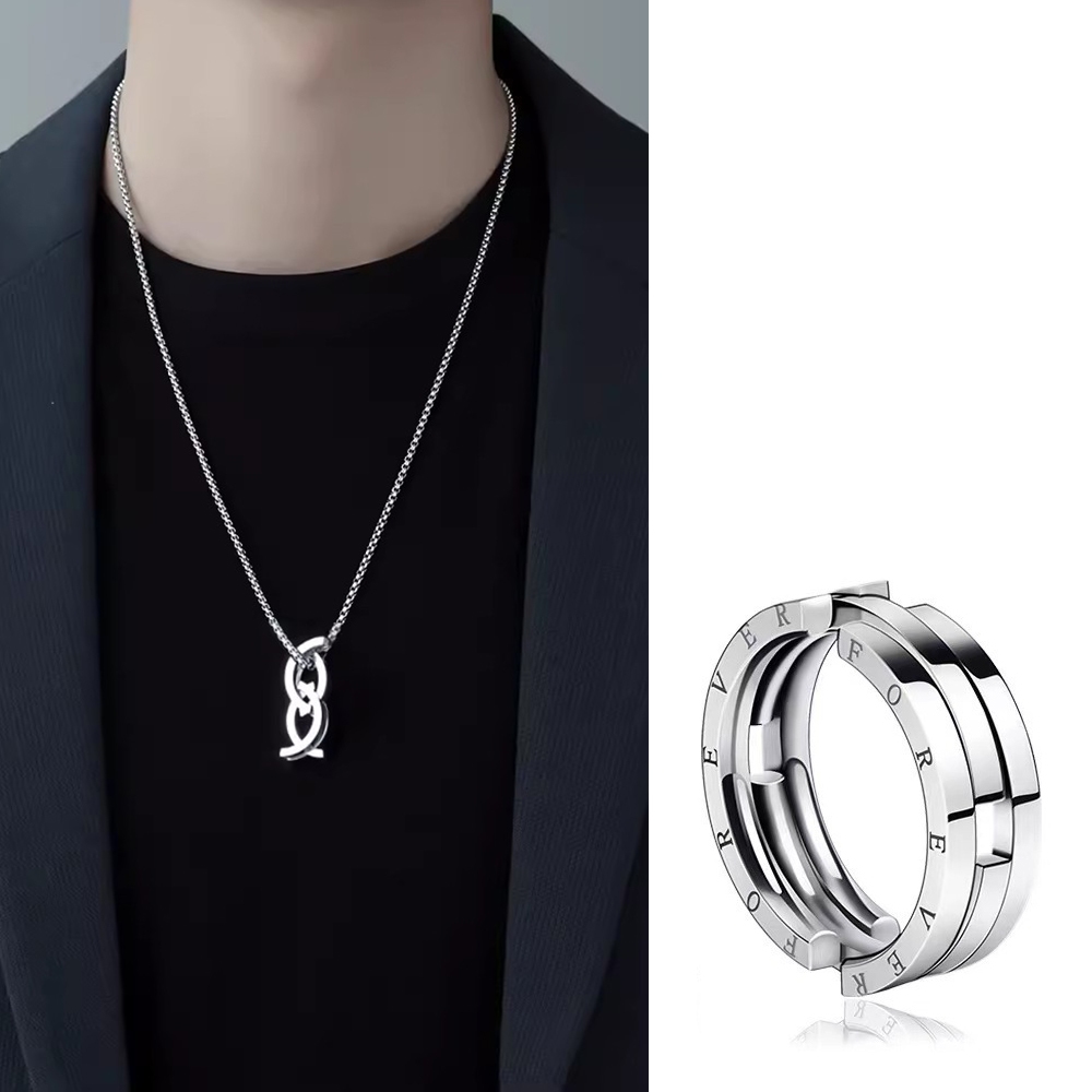 【OBIYUAN】項鍊 戒指 鈦鋼 兩用 可變形 禮物 送收納盒【SR330】鈦鋼7號|鈦鋼8號|鈦鋼9號|鈦鋼10號|鈦鋼11號|鈦鋼12號OBIYUAN