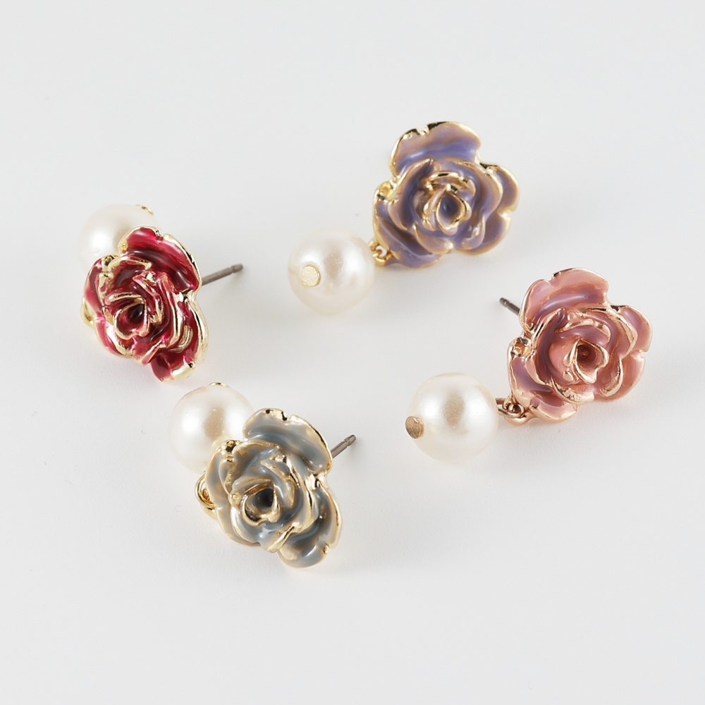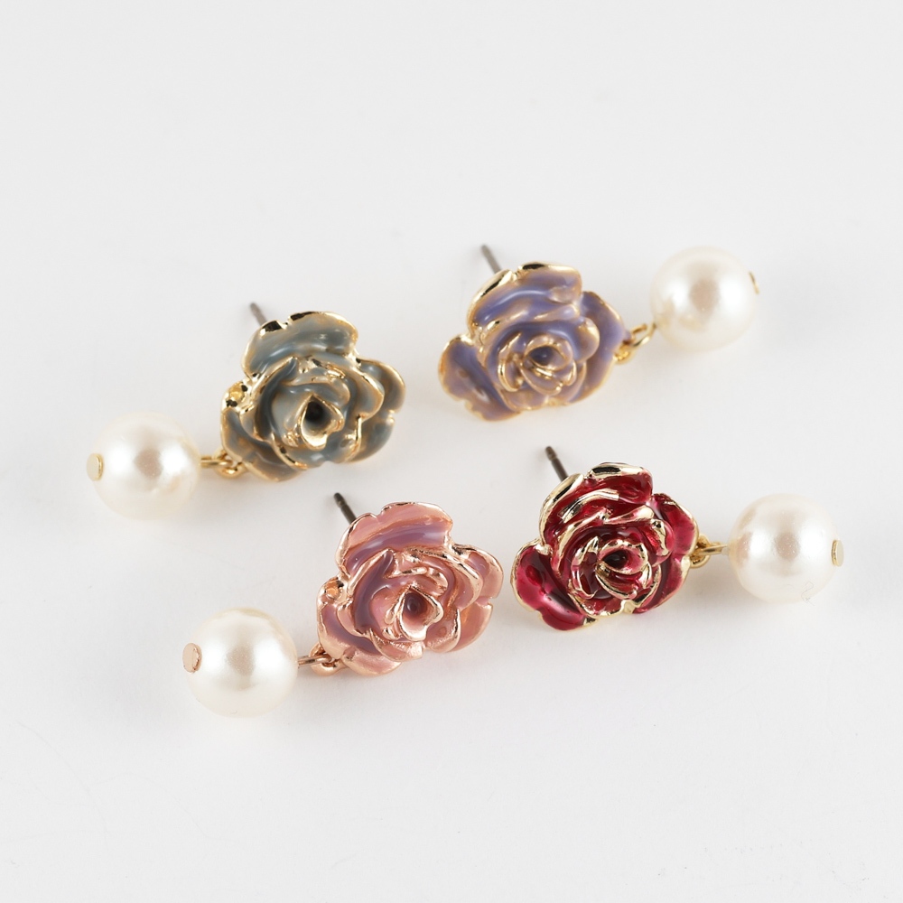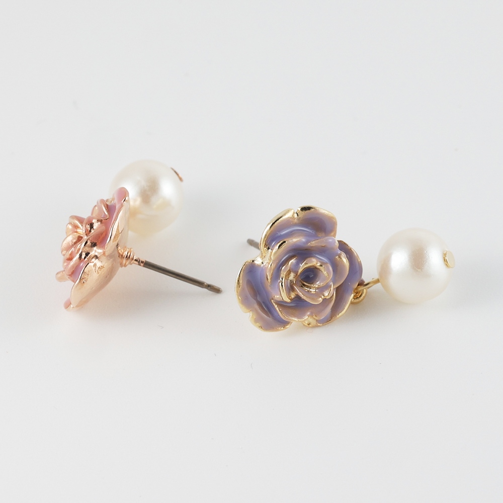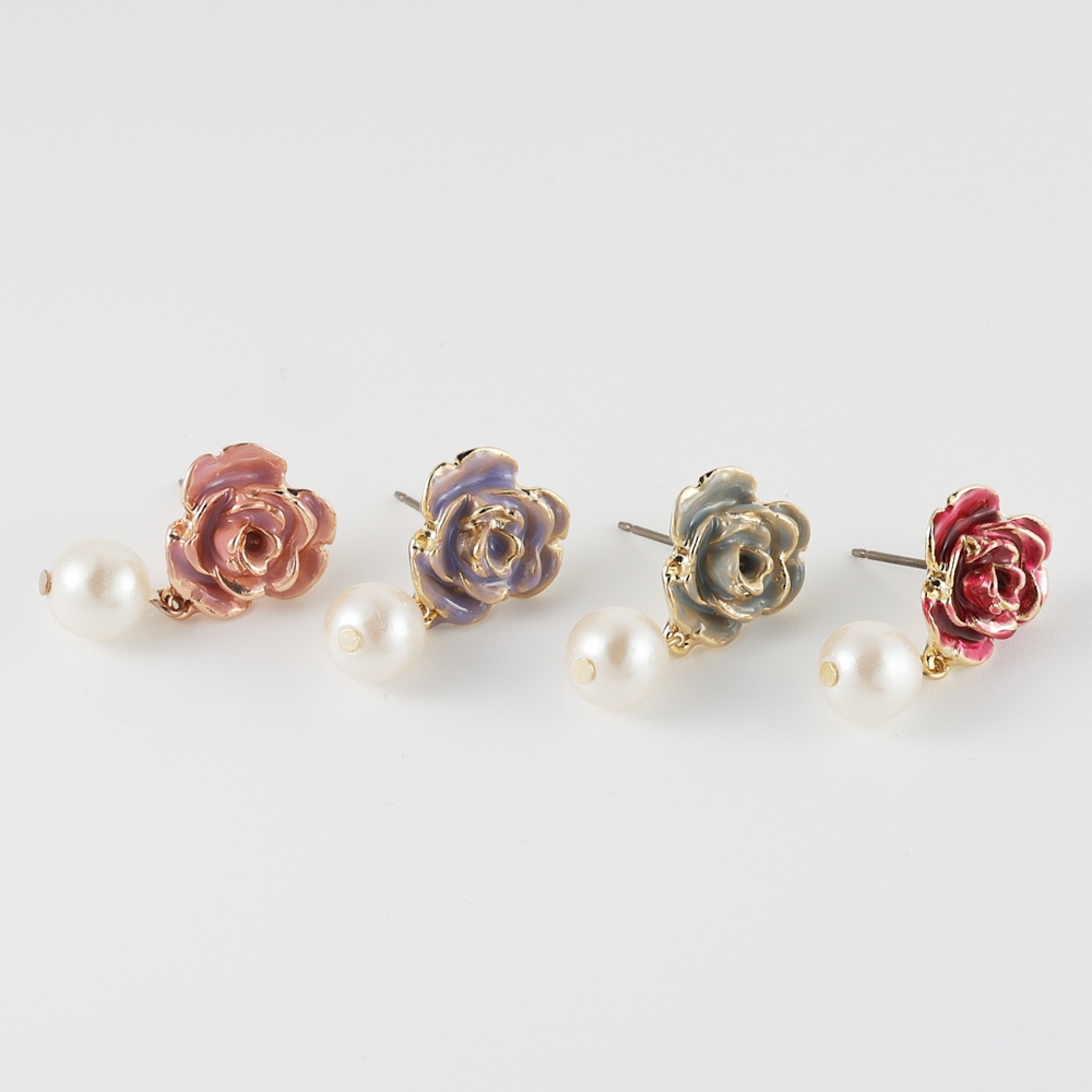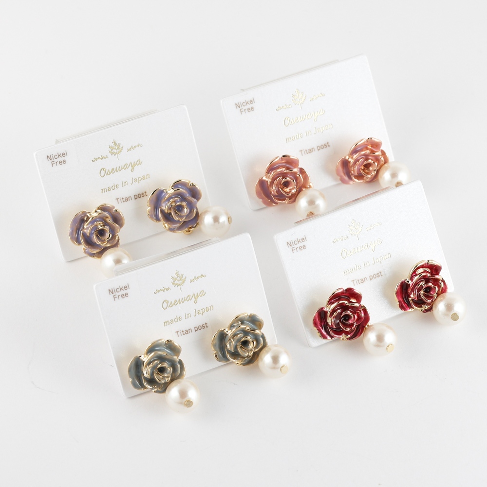 |OSEWAYA|珍珠玫瑰耳環 優雅花店 珍珠 玫瑰花 日本飾品 日本製造藍色|紫色|粉色OSEWAYA|台灣官方商店