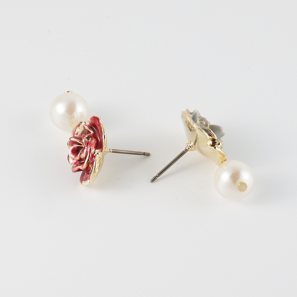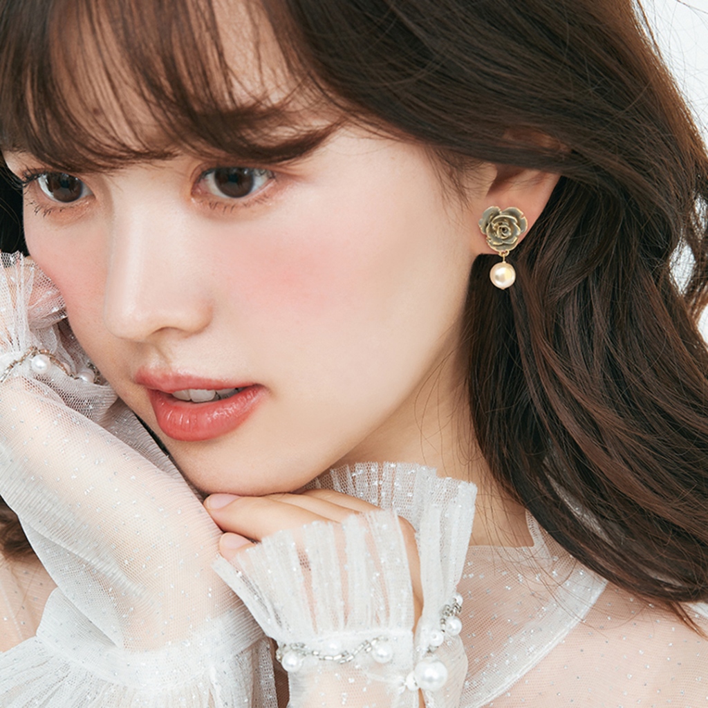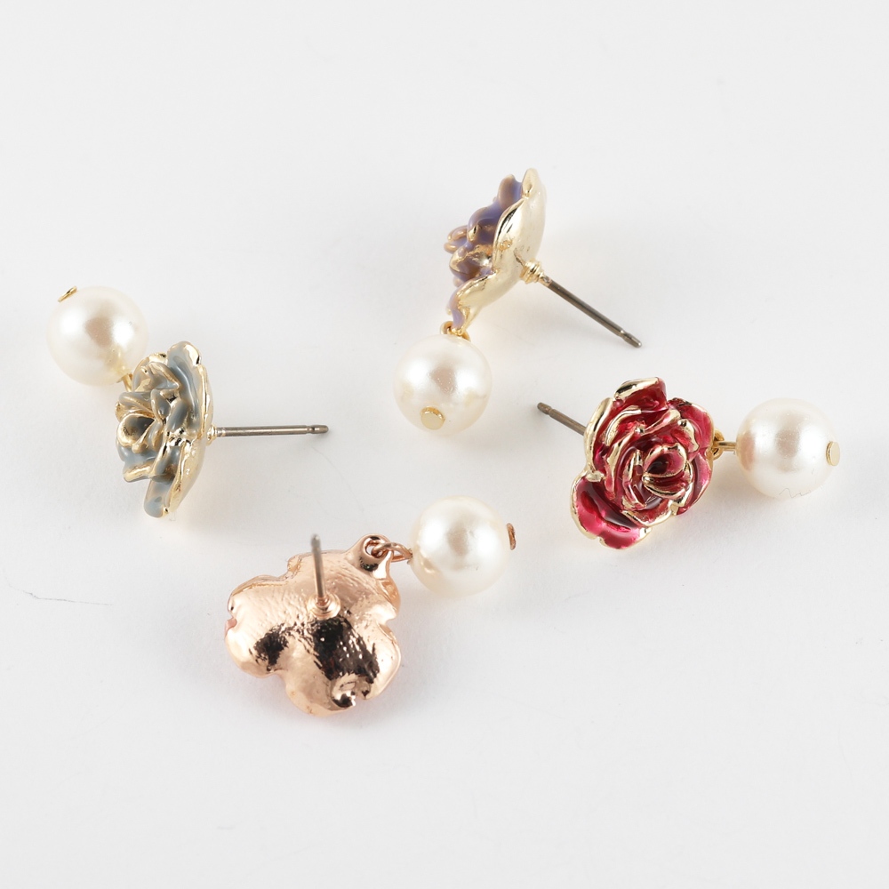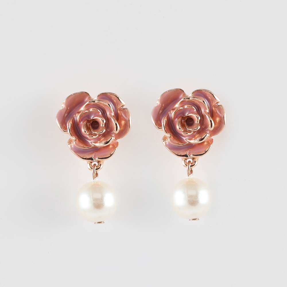 |OSEWAYA|珍珠玫瑰耳環 優雅花店 珍珠 玫瑰花 日本飾品 日本製造藍色|紫色|粉色OSEWAYA|台灣官方商店