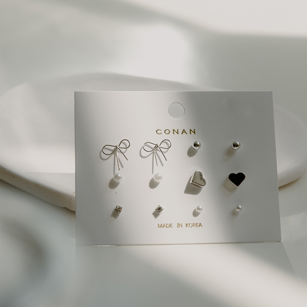 QUEENSHOP_ S 女裝 正韓 蝴蝶結愛心珠珠組合耳環 現+預 【07030872】依賣場QUEENSHOP