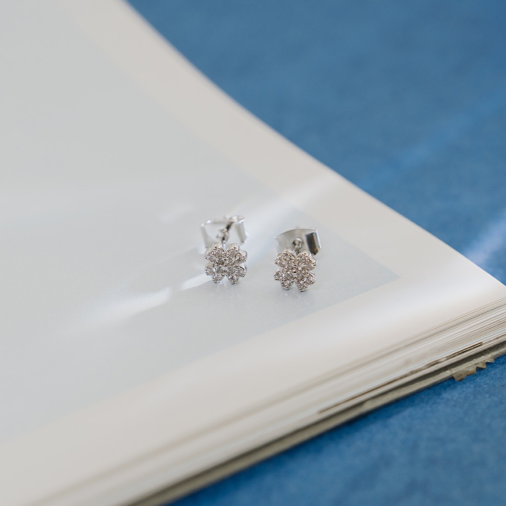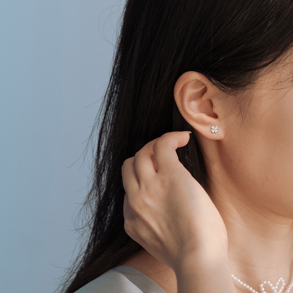 QUEENSHOP_ S 女裝 正韓 925銀四葉草水鑽耳針式耳環 現+預 【07030966】依賣場QUEENSHOP