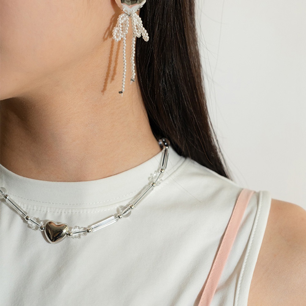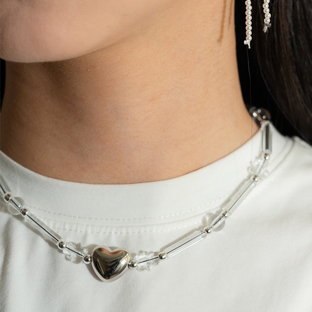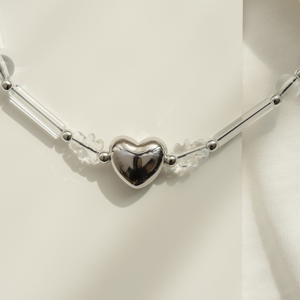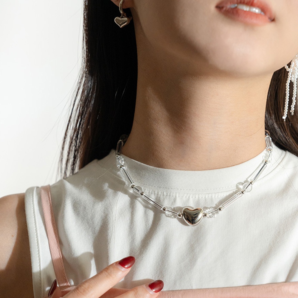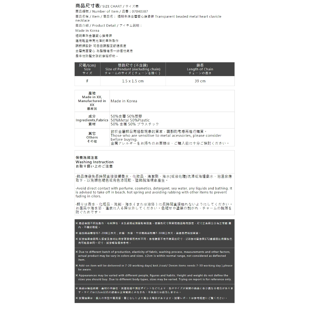 QUEENSHOP_ S 女裝 正韓 透明串珠金屬愛心鎖骨鍊 現+預 【07040387】依賣場QUEENSHOP
