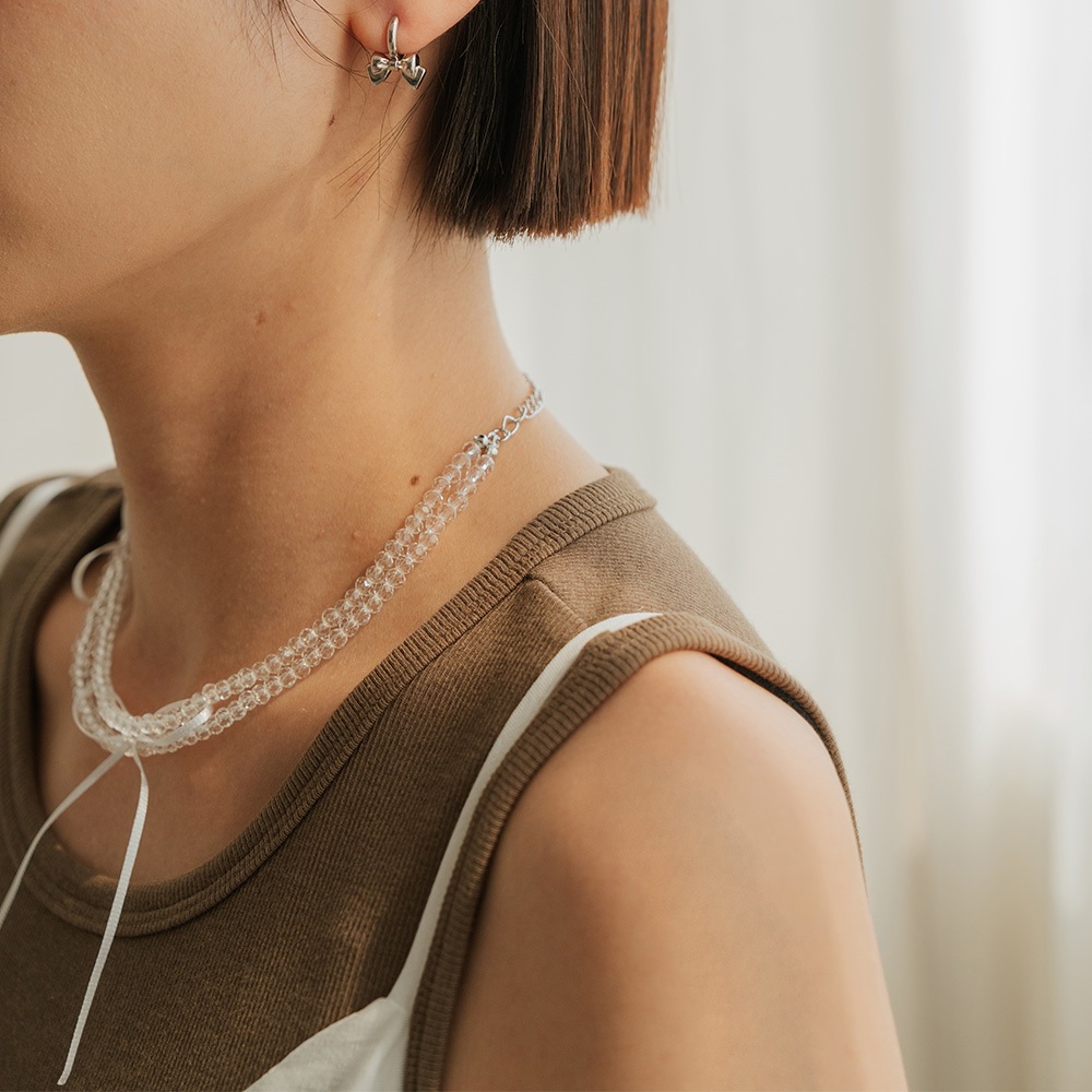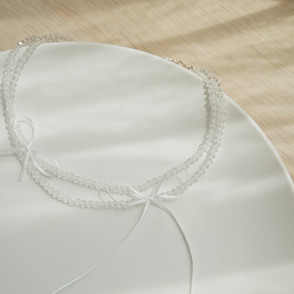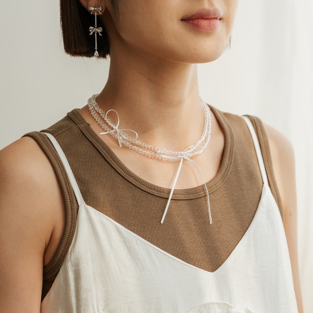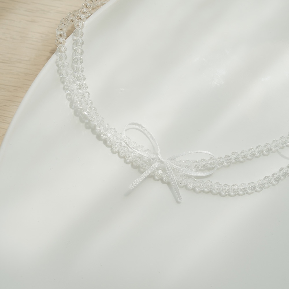 QUEENSHOP_ S 女裝 正韓 蝴蝶結絲帶雙層串珠項鍊 現+預 【07040386】依賣場QUEENSHOP