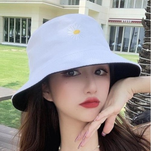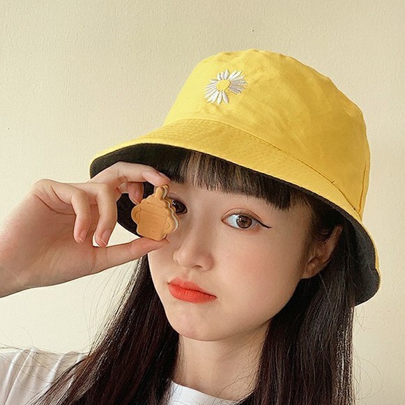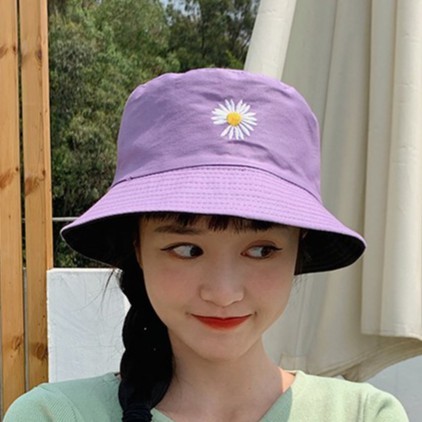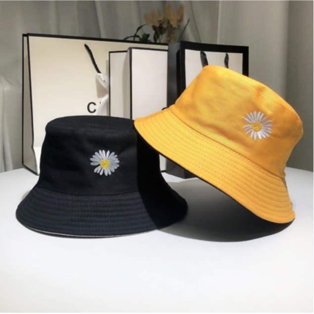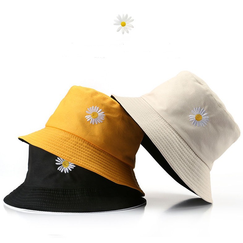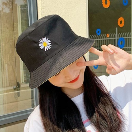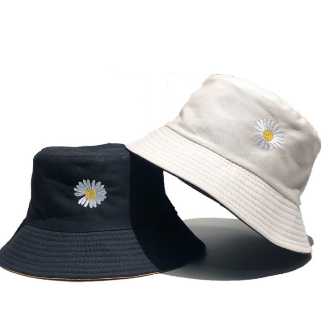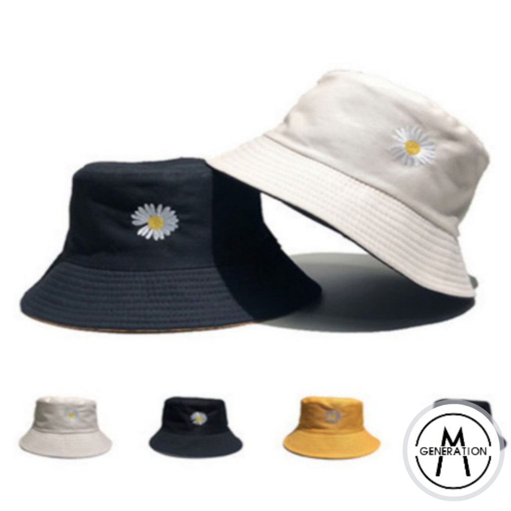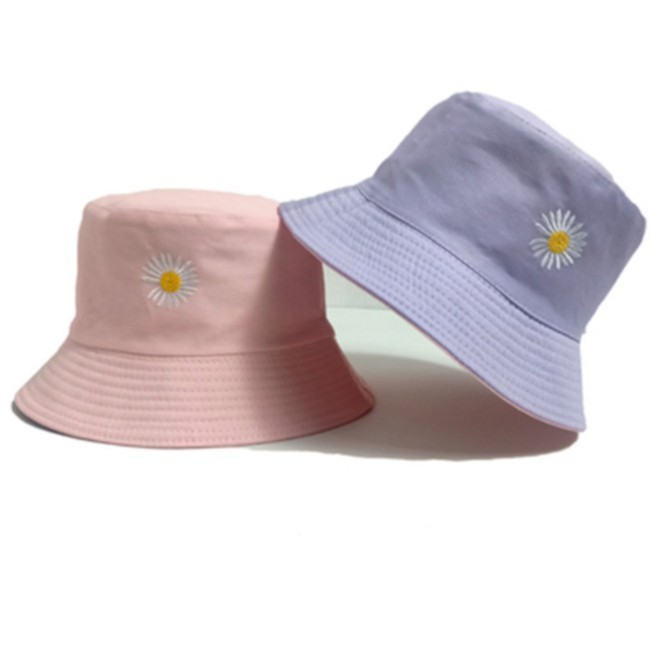 【M世代】(雙面戴)漁夫帽小菊花造型刺繡漁夫帽 春夏新款遮陽帽潮帽子(小雛菊雙面)紫色+粉色|米色+黑色|白色+黑色|黃色+黑色M世代官方