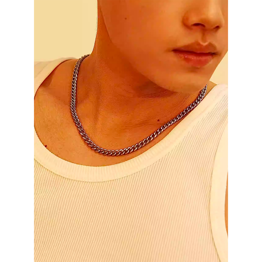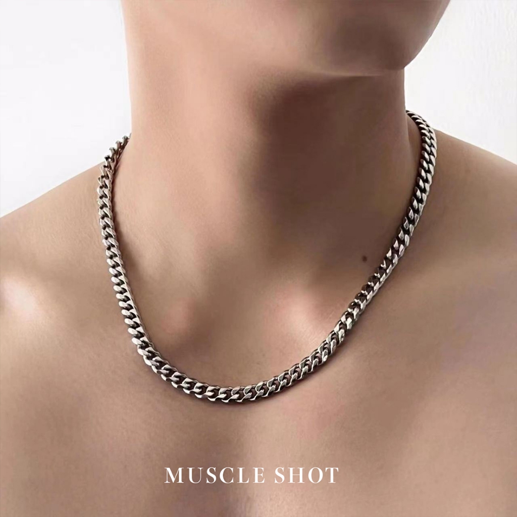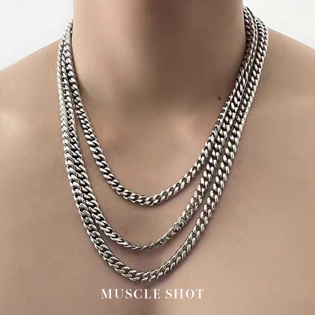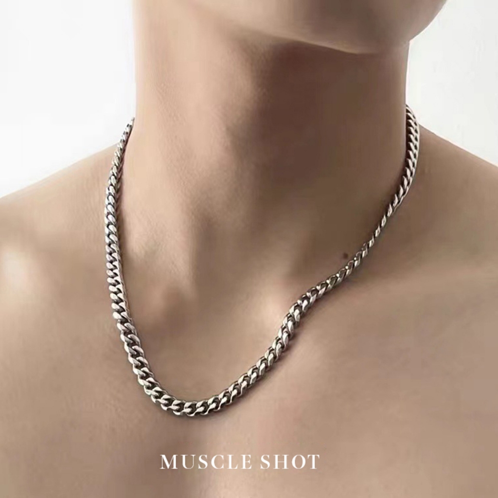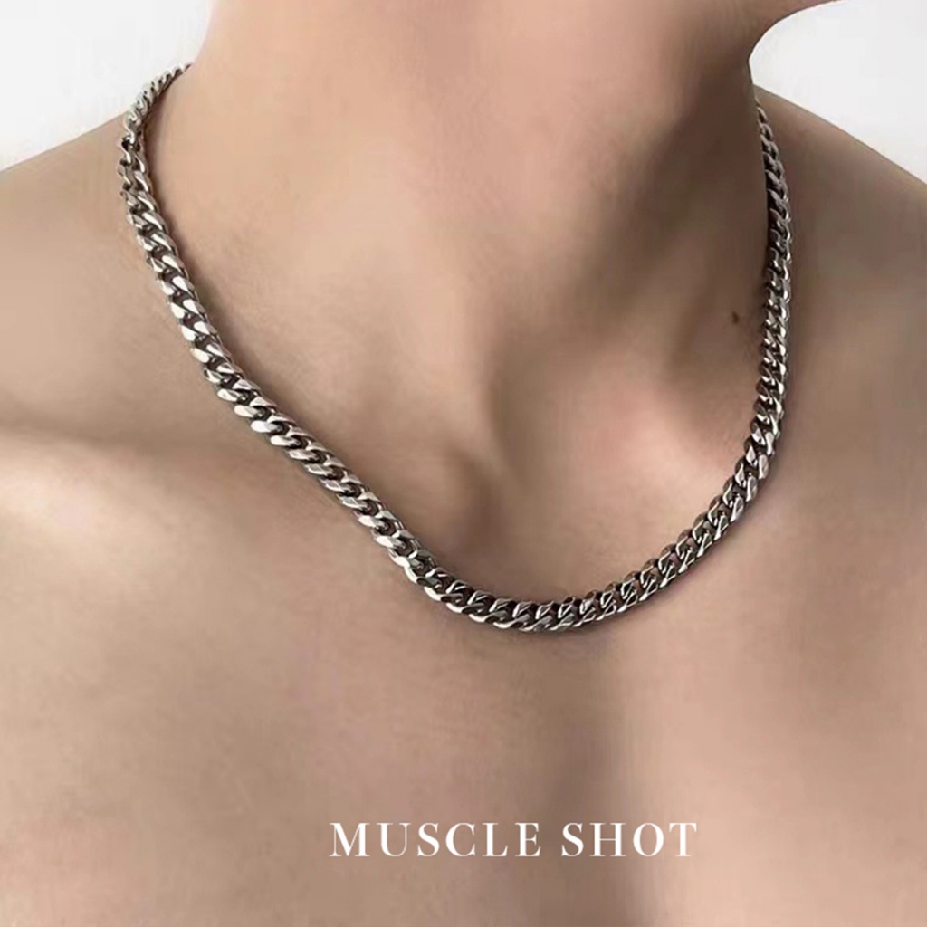 【MS】極簡鈦鋼古巴項鍊【台灣現貨】男飾品 嘻哈 鎖骨鍊 韓版 ins 銀色 粗鍊 頸鏈 健身 街頭 百搭 重金屬 穿搭長度50cmMuscle Shot 男裝專賣店